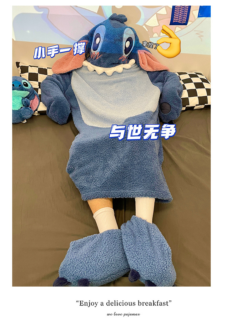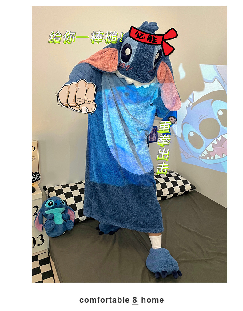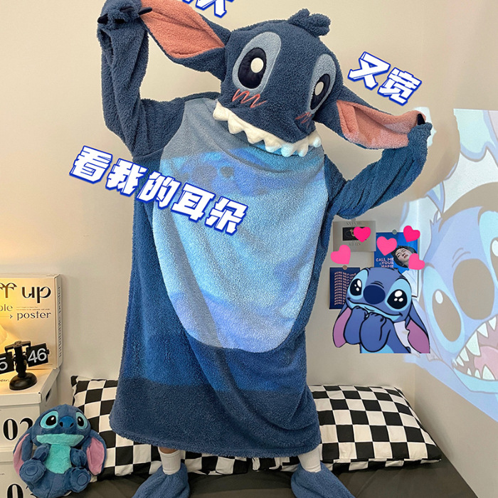 착용 가능 작은 공룡 산호 양털 잠옷 여성용 플러시 홈 의류 겨울 두꺼운 플러스 양털 잠옷 여성 가을과 겨울 롱