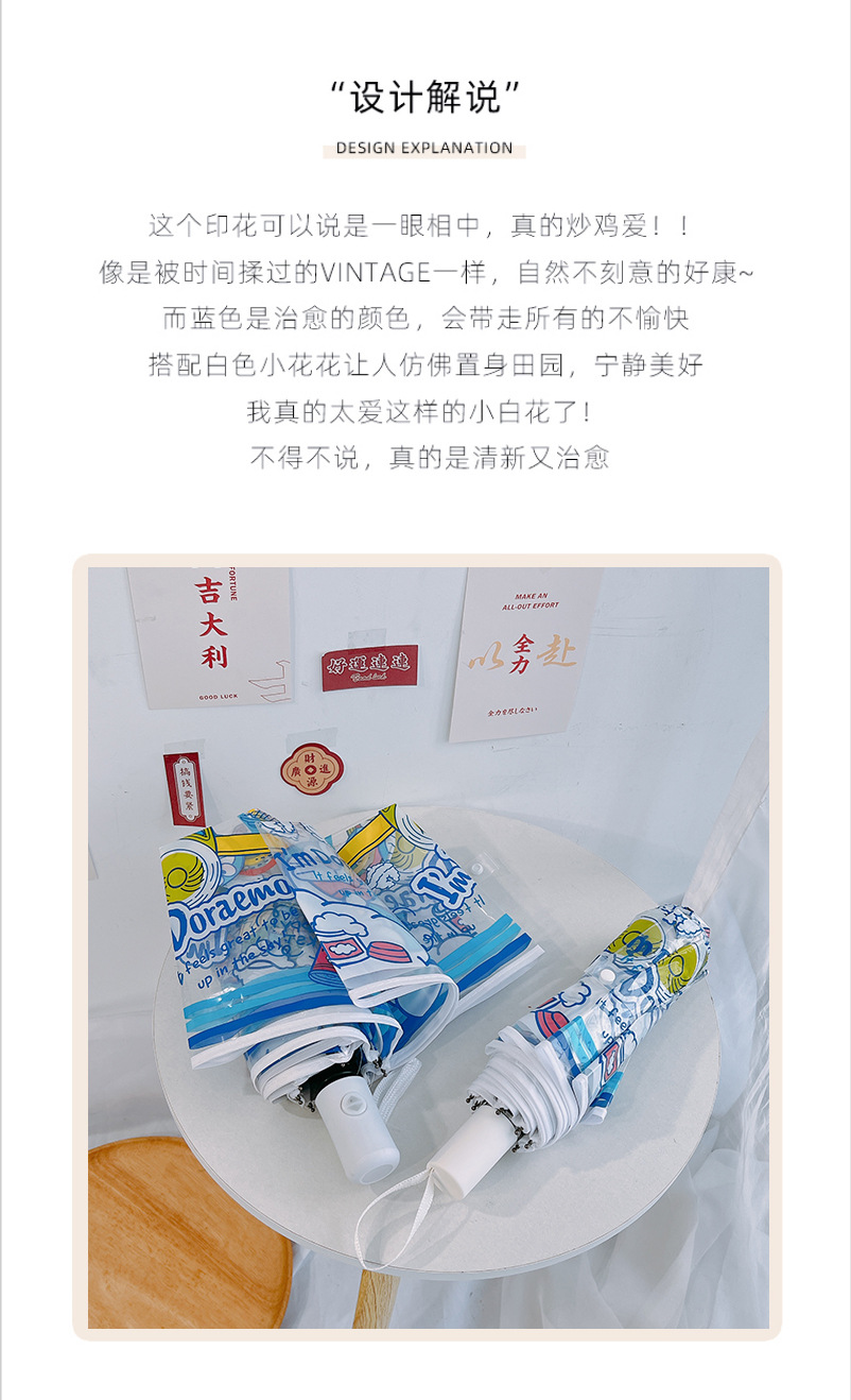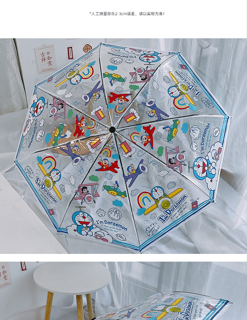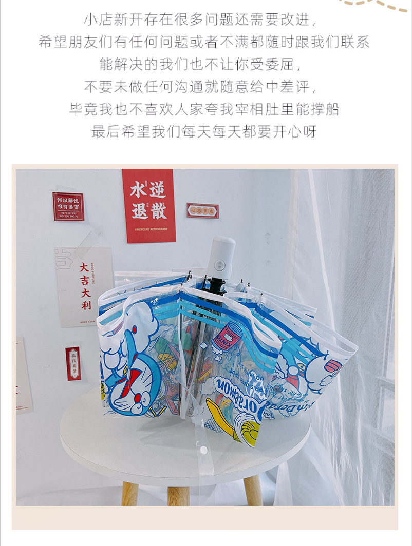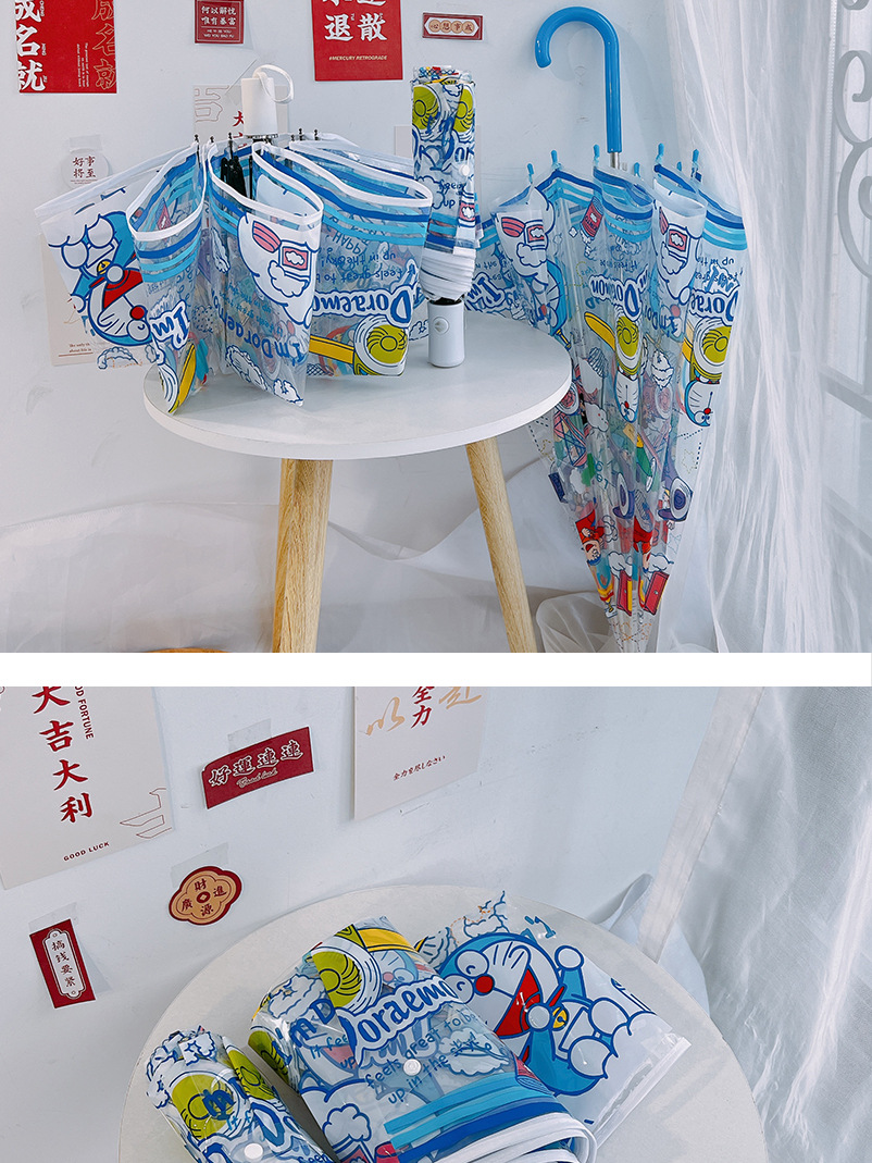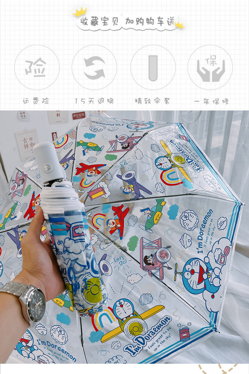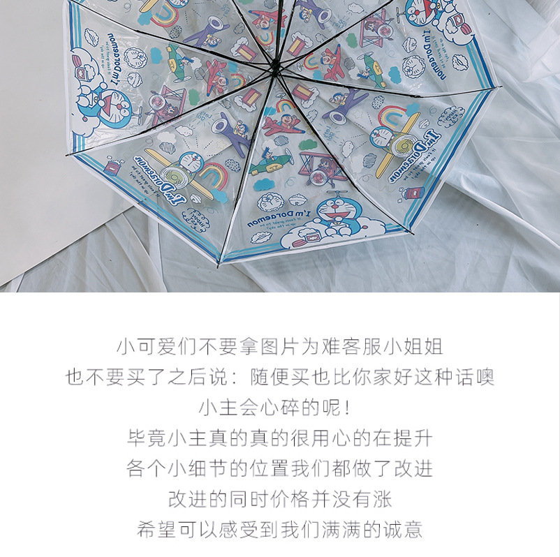 도라에몽 투명 우산 3 중 우산 완전 자동 딩당 고양이 스트레이트 핸들 우산 귀여운 접는 어린이 성인 두꺼운 우산스토어 가기