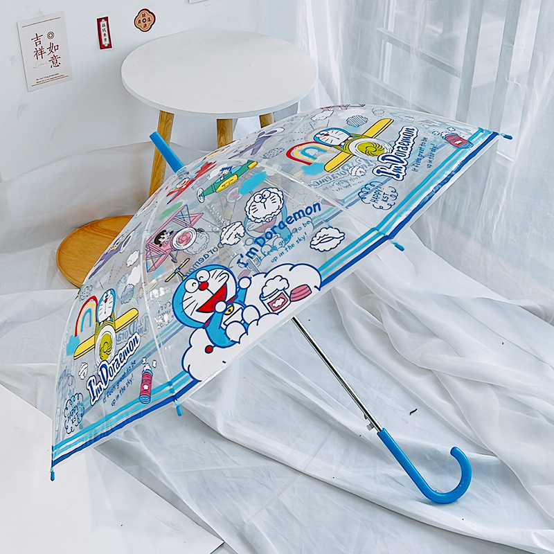도라에몽 투명 우산 3 중 우산 완전 자동 딩당 고양이 스트레이트 핸들 우산 귀여운 접는 어린이 성인 두꺼운 우산