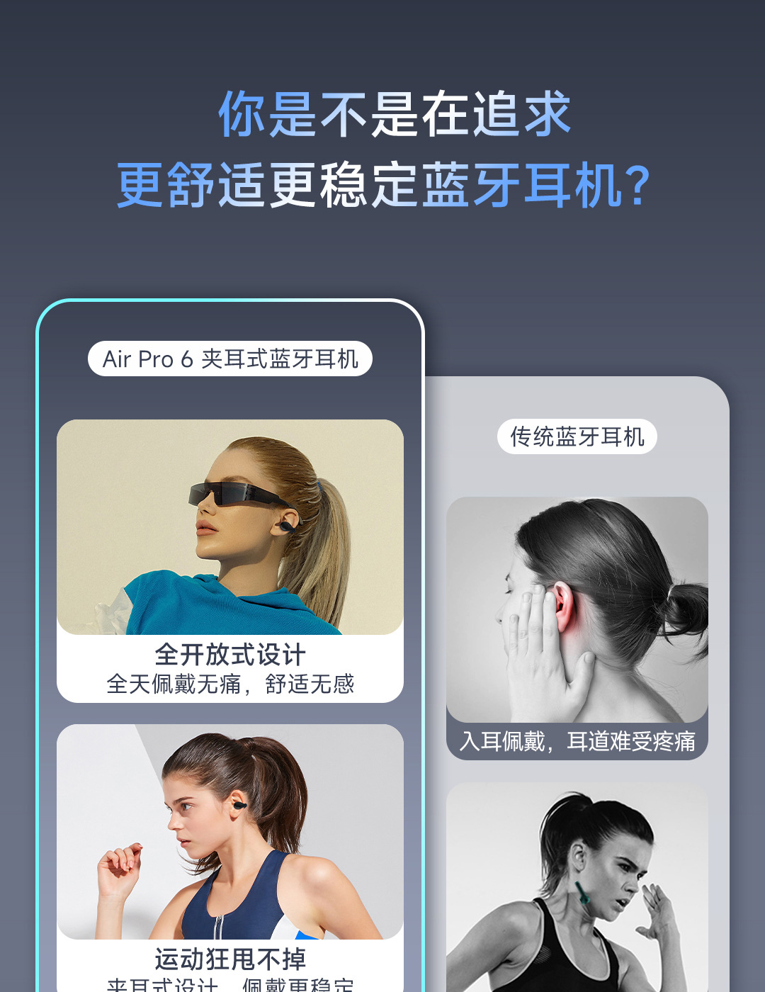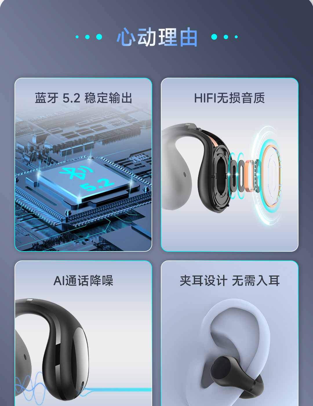 국경 간 새로운 헤드셋 블루투스 진정한 무선 블루투스 헤드셋은 귀에 들어 가지 않습니다 긴 내구성 개인 모델 소음 감소 귀 클립 유형
