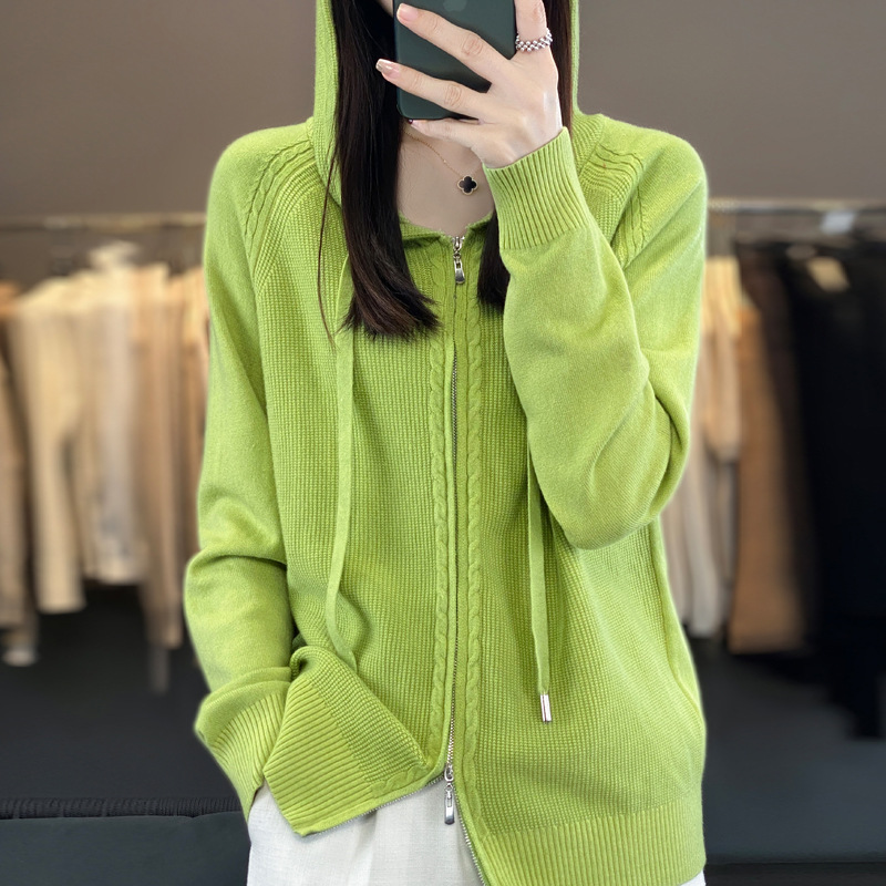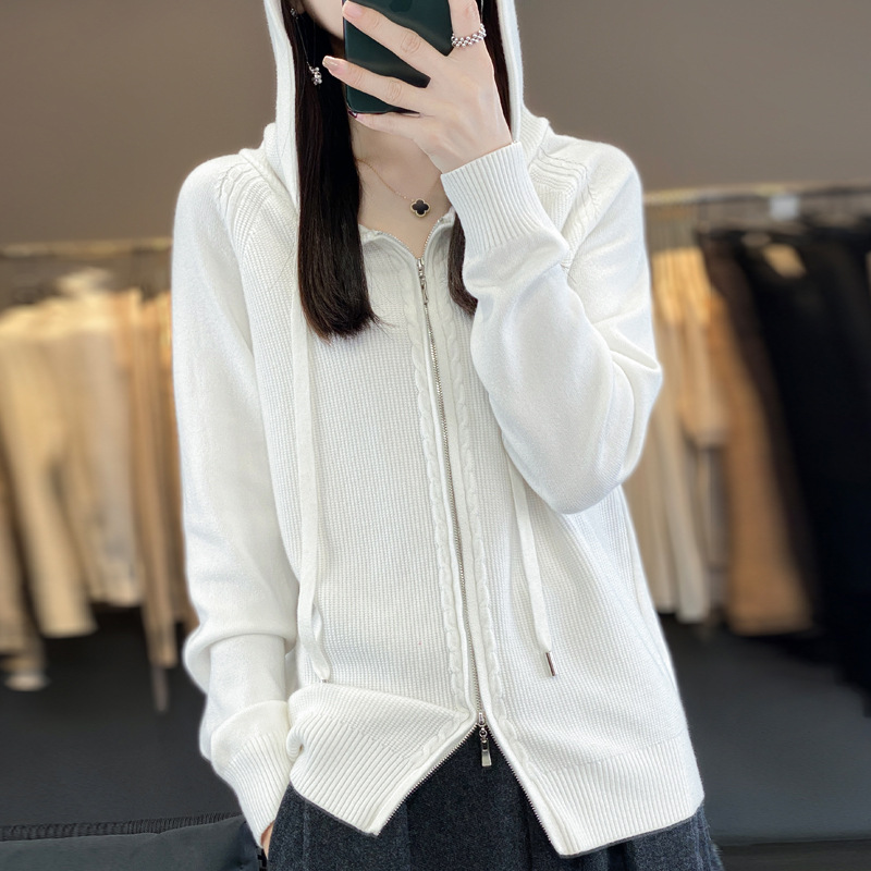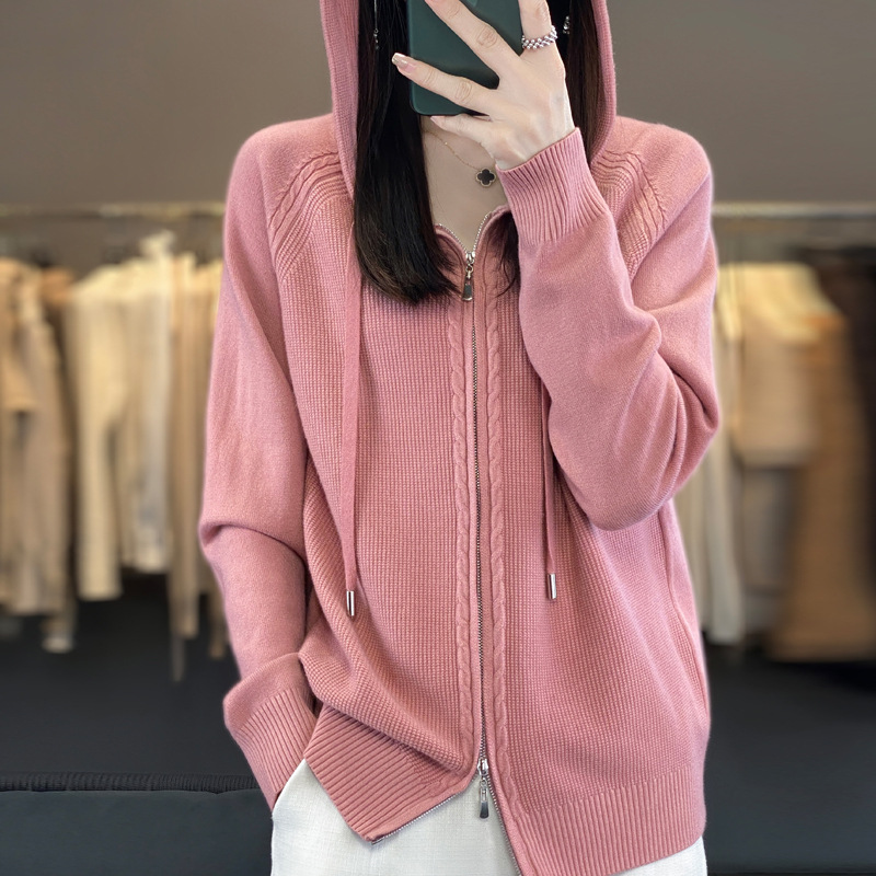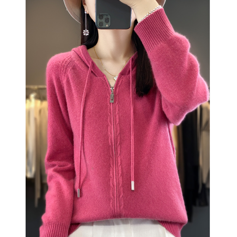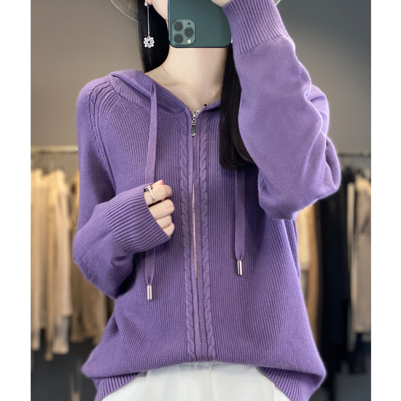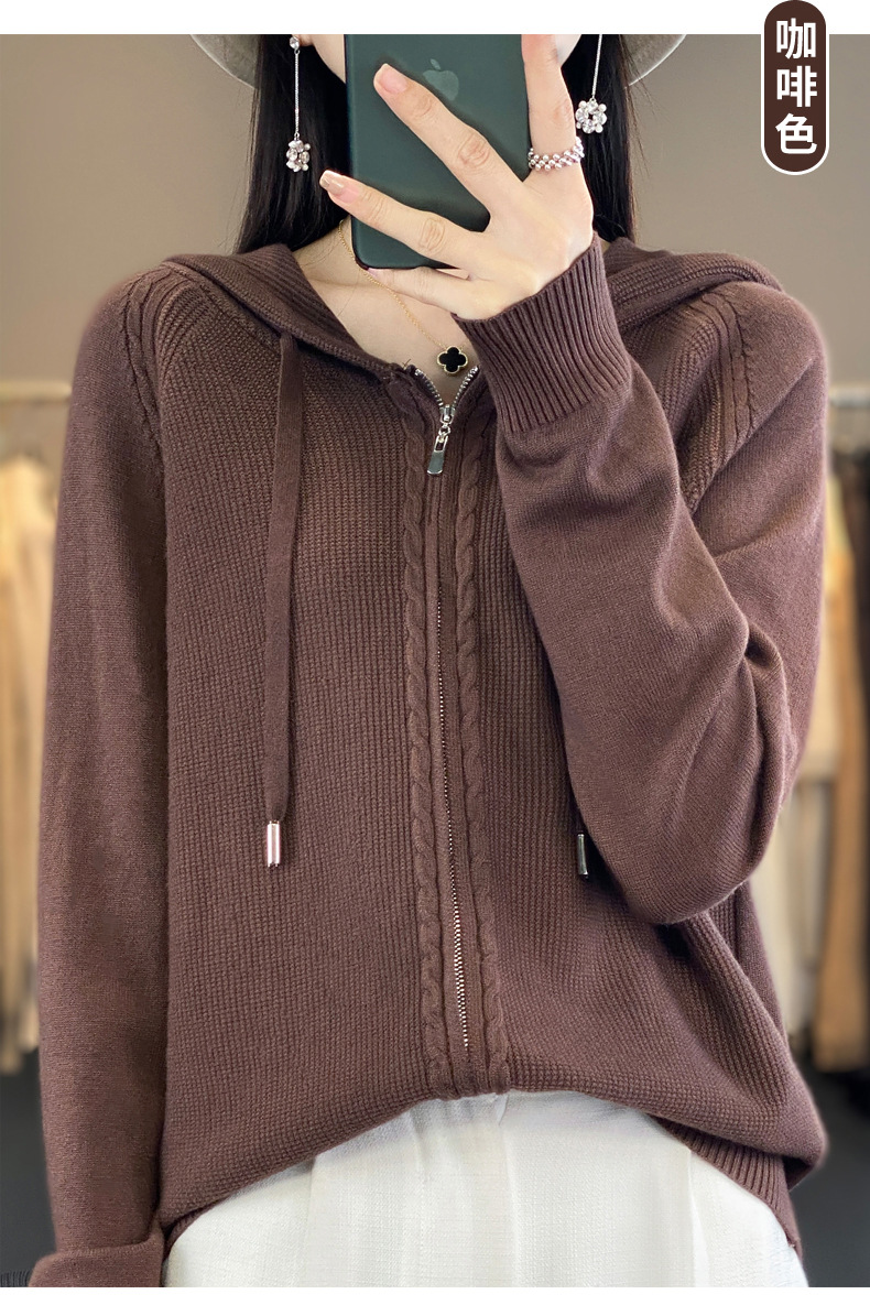 여성용 후드 지퍼 스웨터 재킷, 봄, 가을 짧은 후드티, 가을, 겨울 여성용 두꺼운 후드 니트 가디건스토어 가기