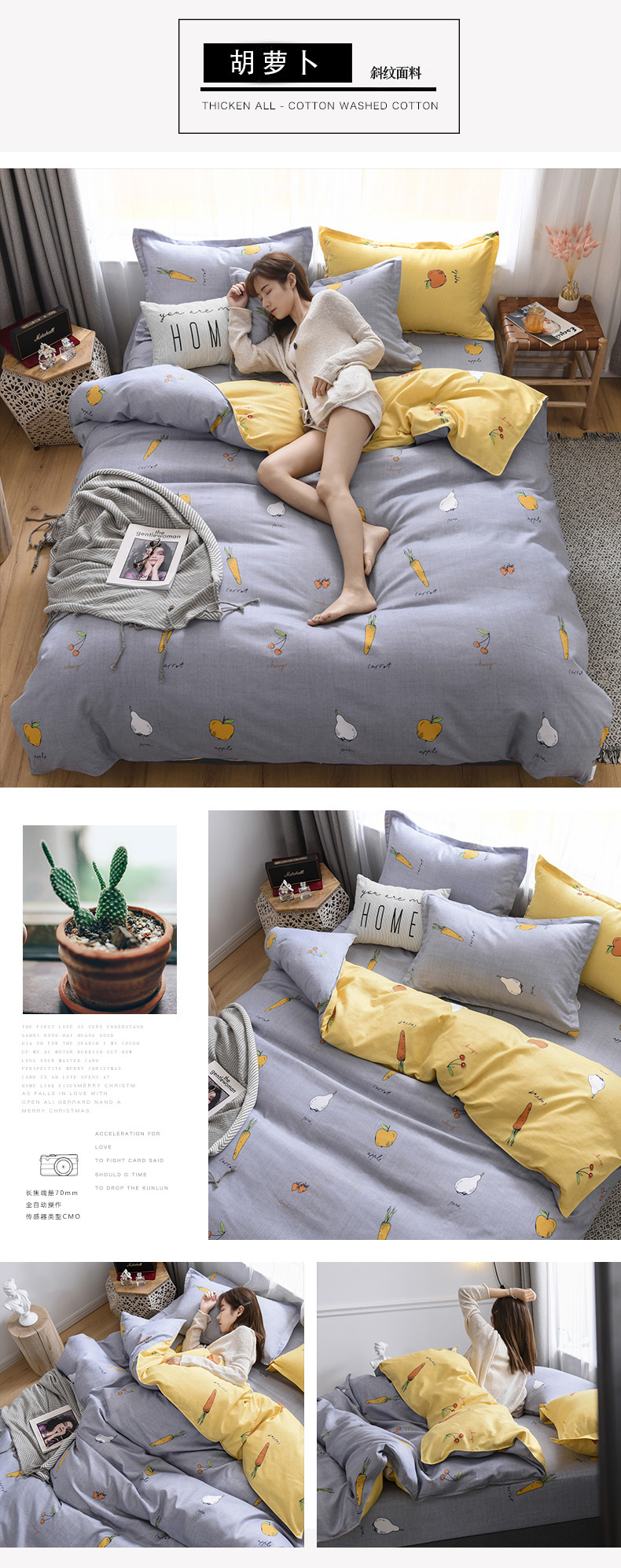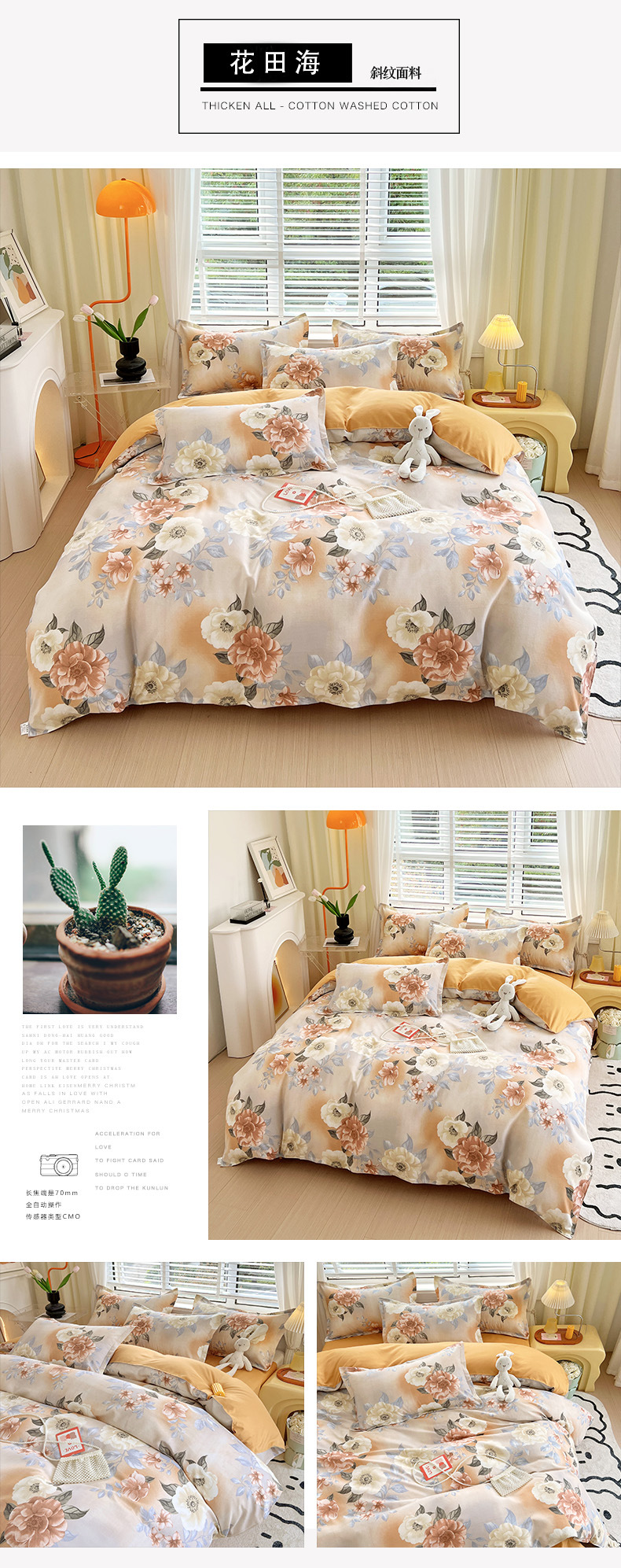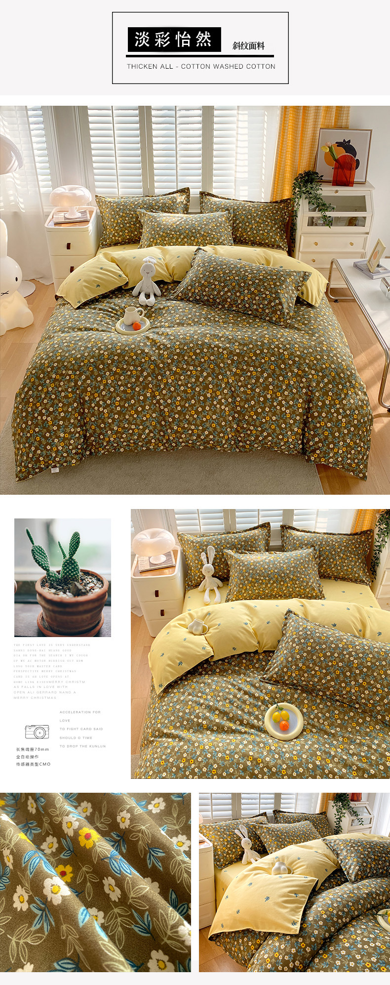 가을과 겨울 두꺼운 풀샌딩 4 종세트 피부친화 워시 코튼 3 종세트 코튼 침대 시트 이불 커버 라이브 세일 선물스토어 가기