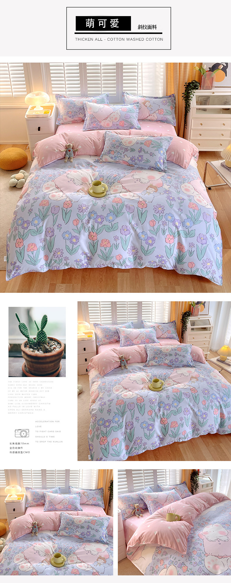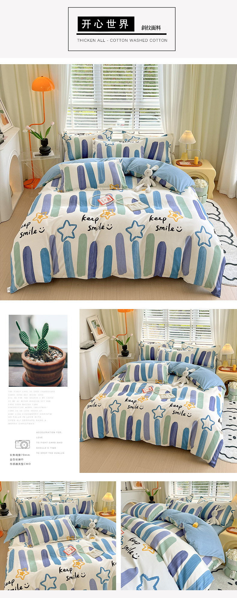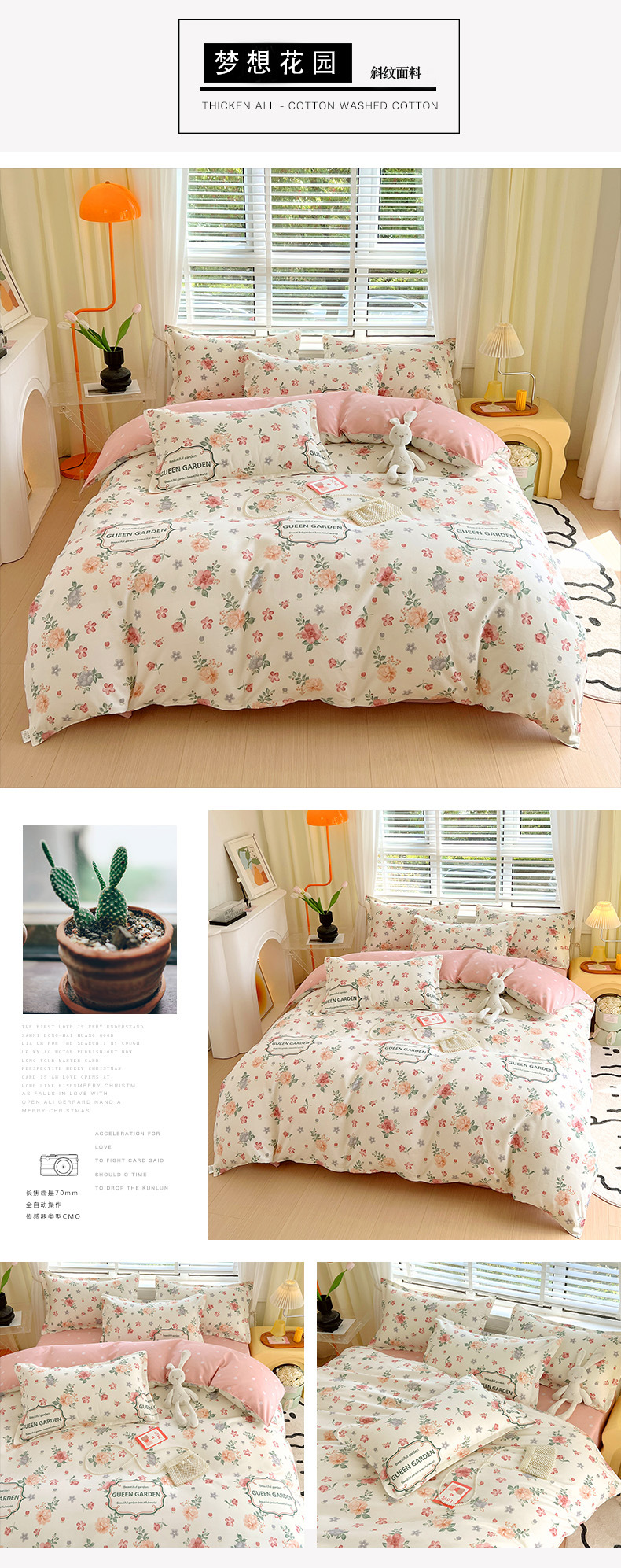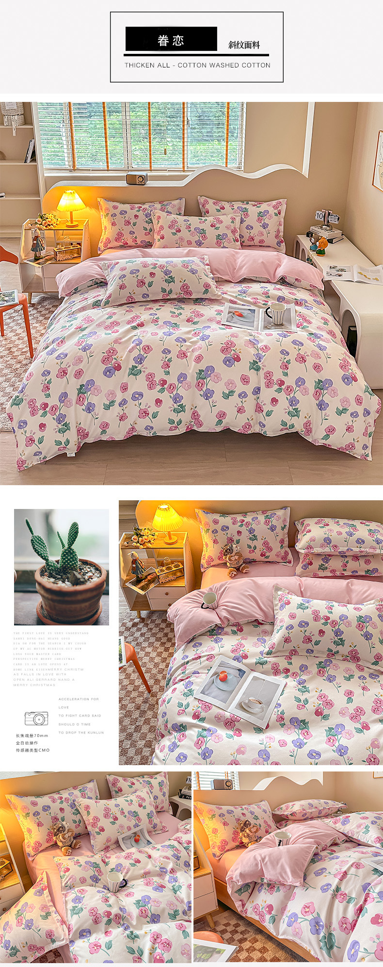 가을과 겨울 두꺼운 풀샌딩 4 종세트 피부친화 워시 코튼 3 종세트 코튼 침대 시트 이불 커버 라이브 세일 선물스토어 가기