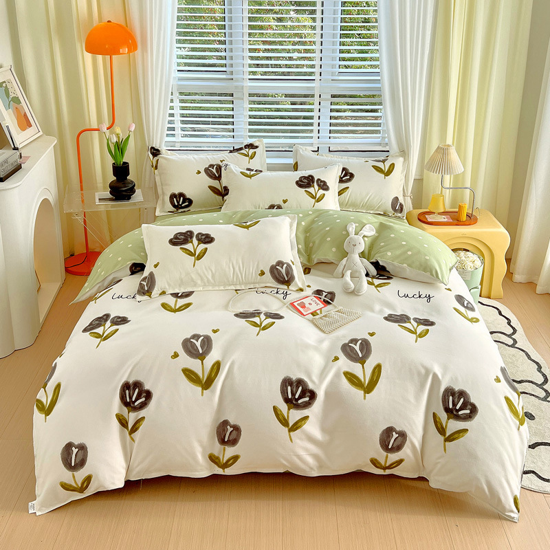 가을과 겨울 두꺼운 풀샌딩 4 종세트 피부친화 워시 코튼 3 종세트 코튼 침대 시트 이불 커버 라이브 세일 선물