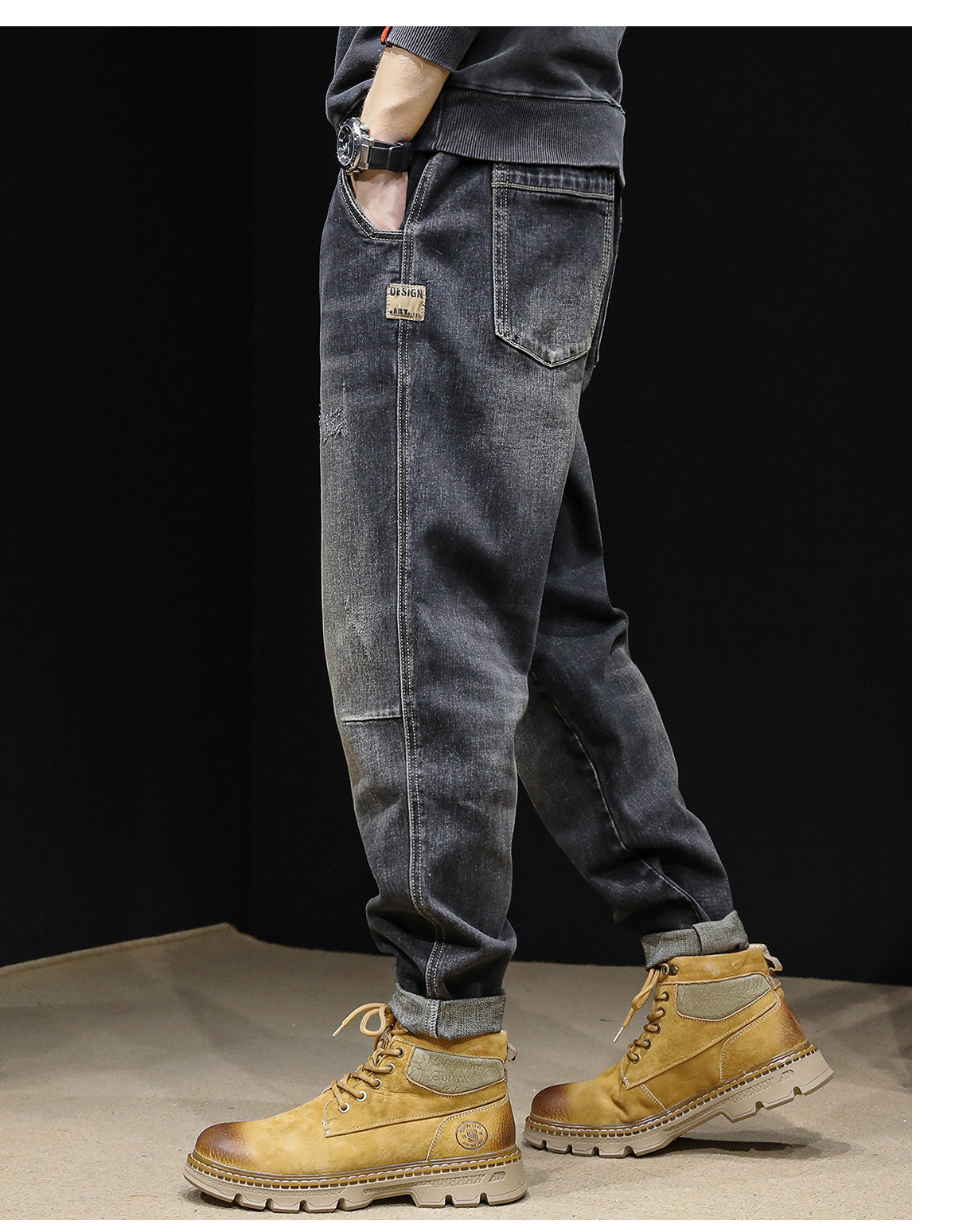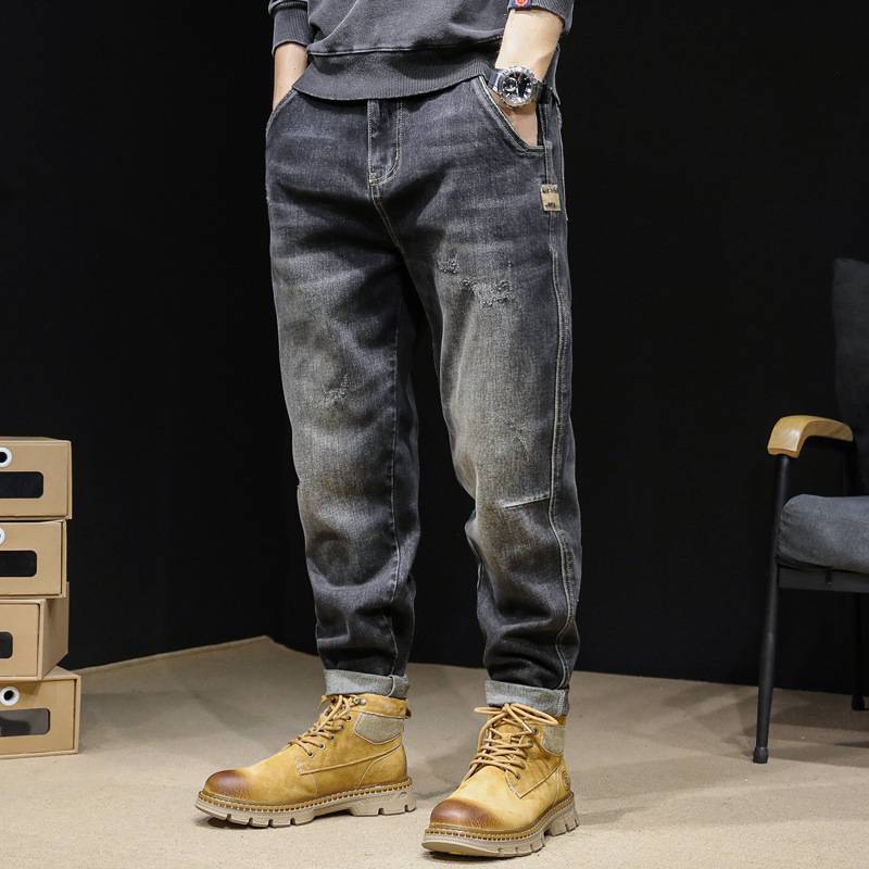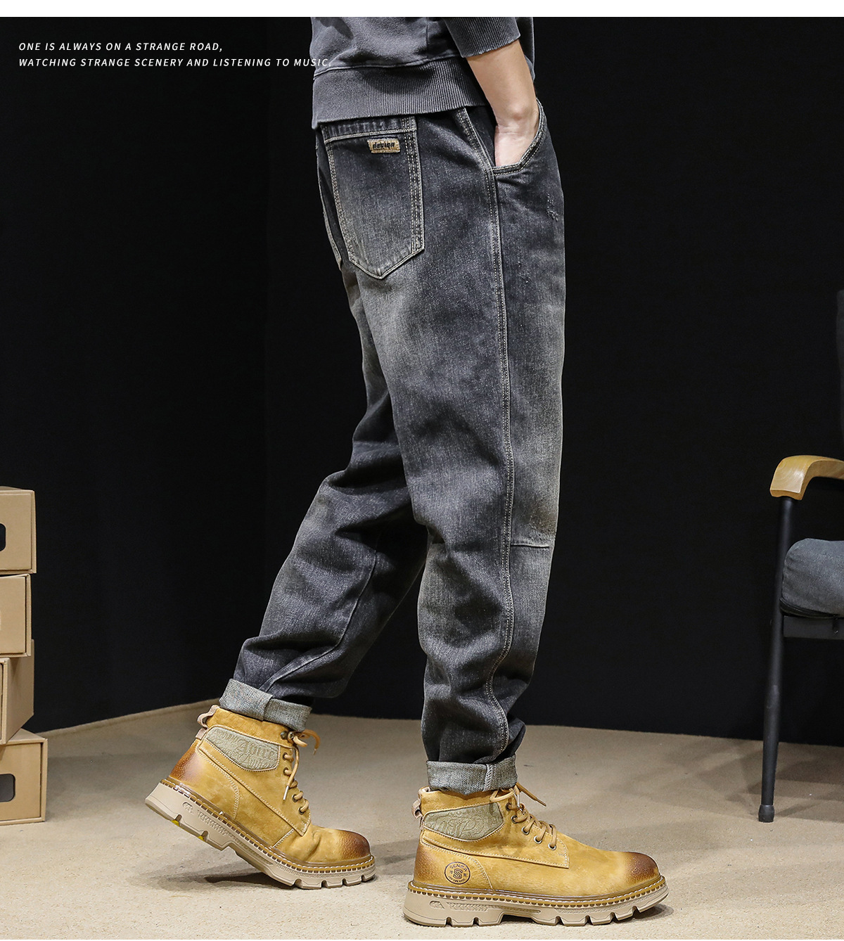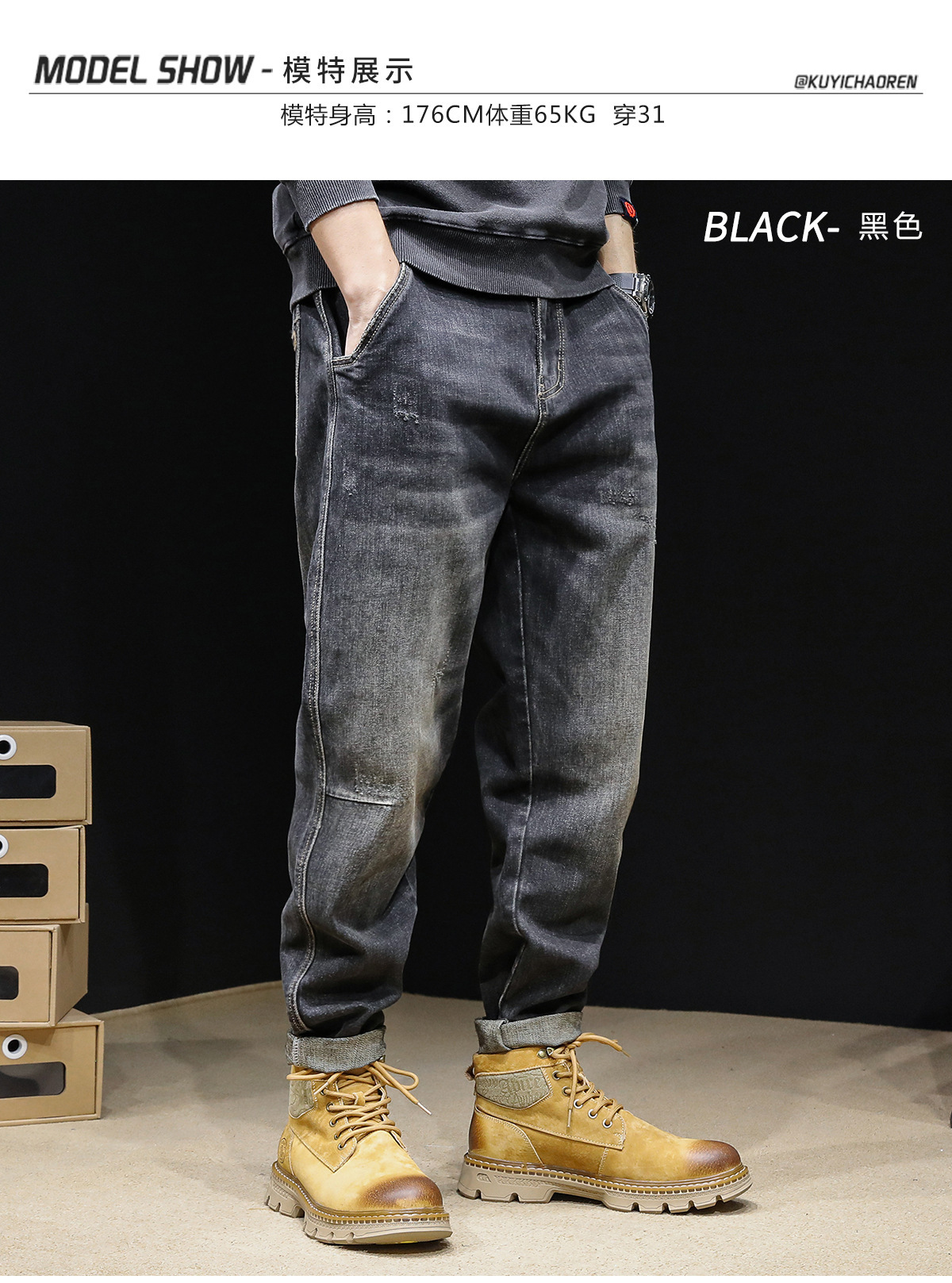 청바지 남자의 봄과 가을 스트레이트 느슨한 플러스 사이즈 남자의 스트레치 남자의 바지 2023 신상품 남자의 검은 바지 가을스토어 가기