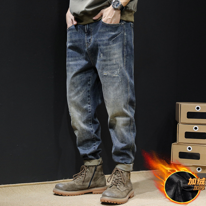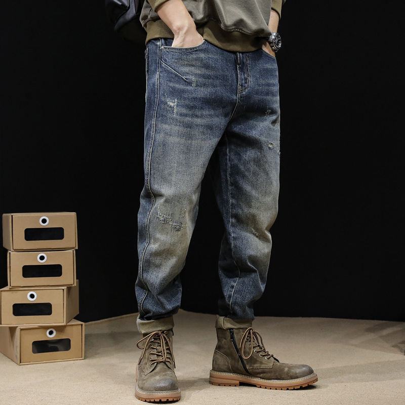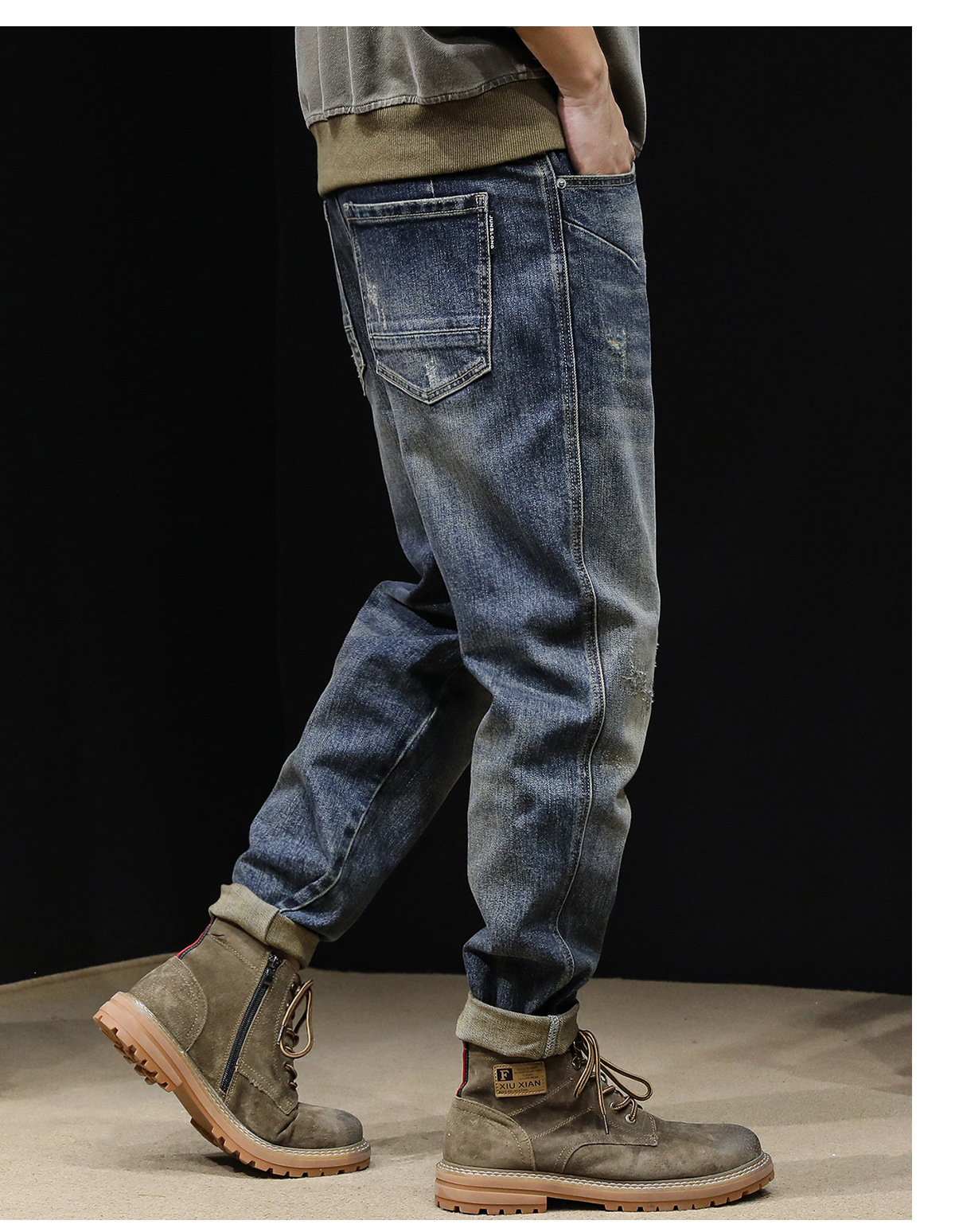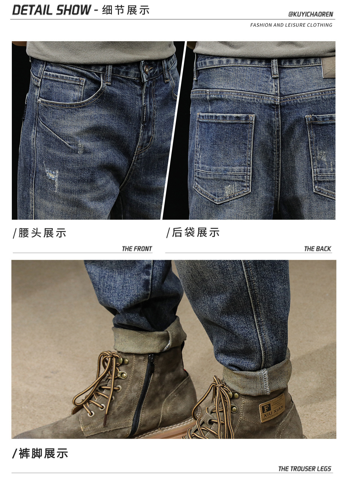 청바지 남자의 봄과 가을 스트레이트 느슨한 플러스 사이즈 남자의 스트레치 남자의 바지 2023 신상품 남자의 검은 바지 가을스토어 가기