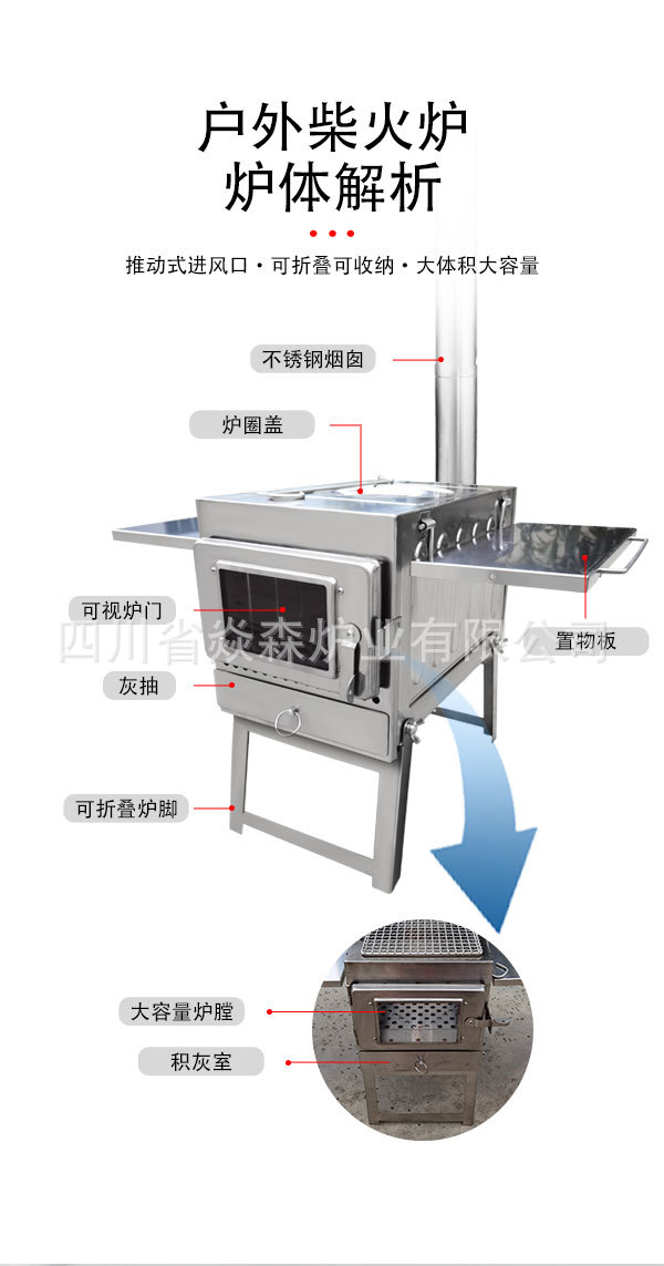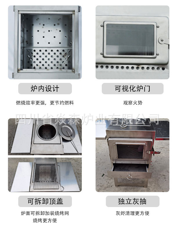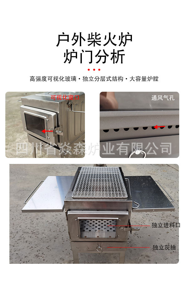 Yansen 야외 대형 스테인레스 스틸 바베큐 오븐 휴대용 야외 스토브 1 유리 창 접는 스토브 바베큐 오븐