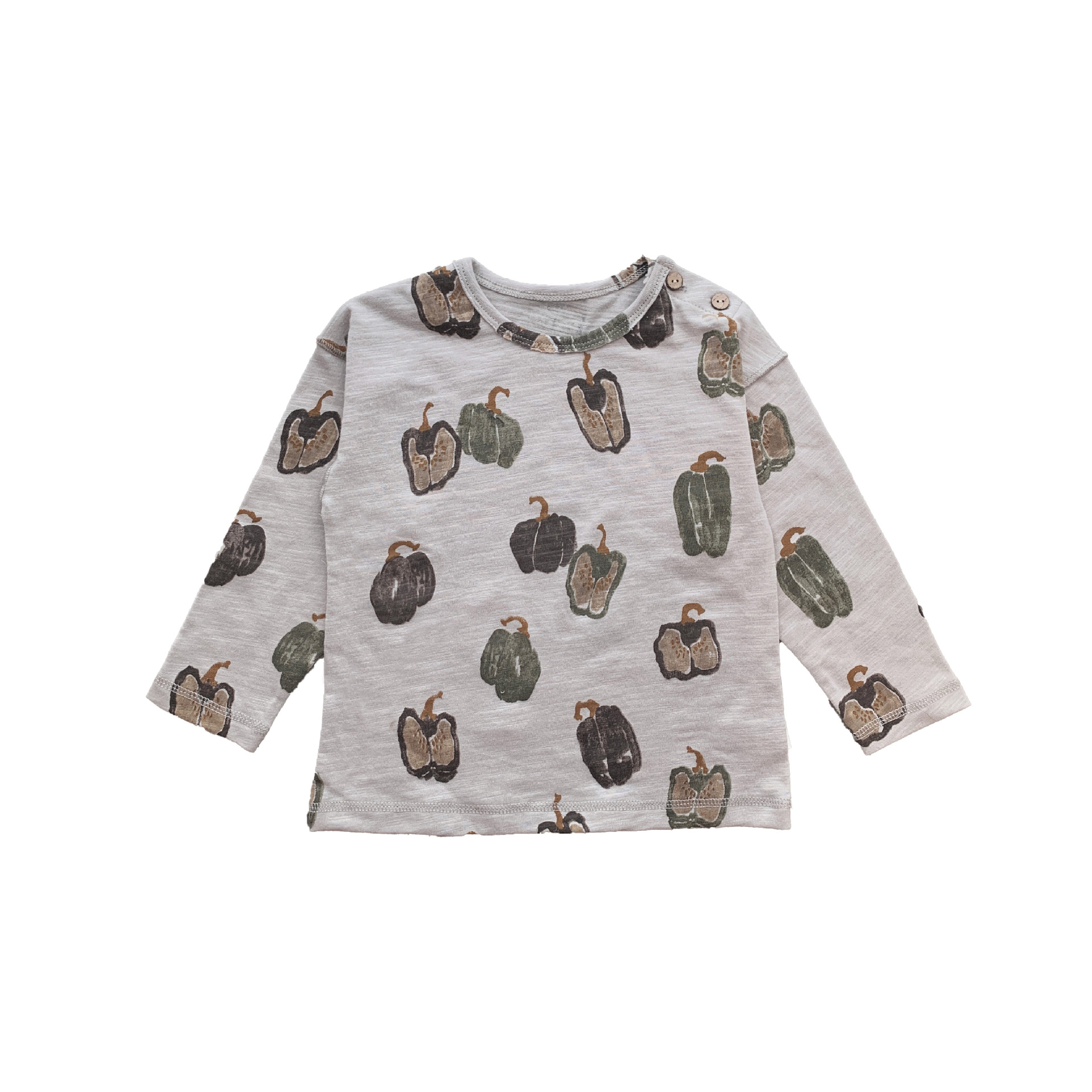 • 피망을 라이트 그레이 긴팔 티셔츠