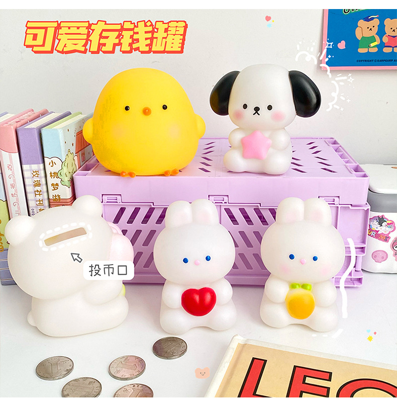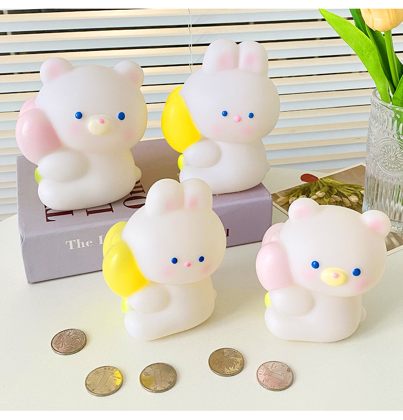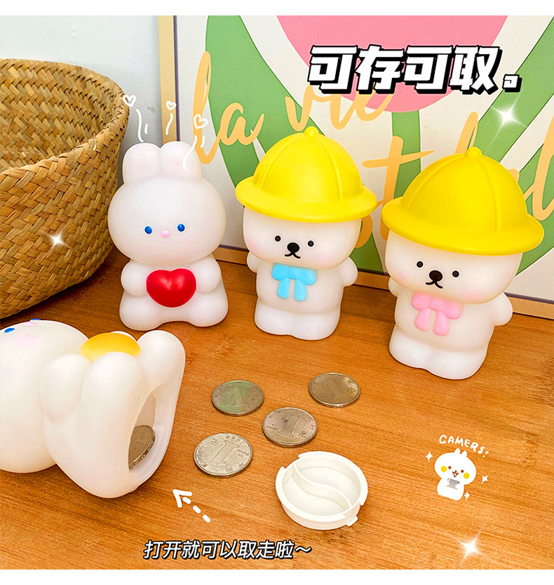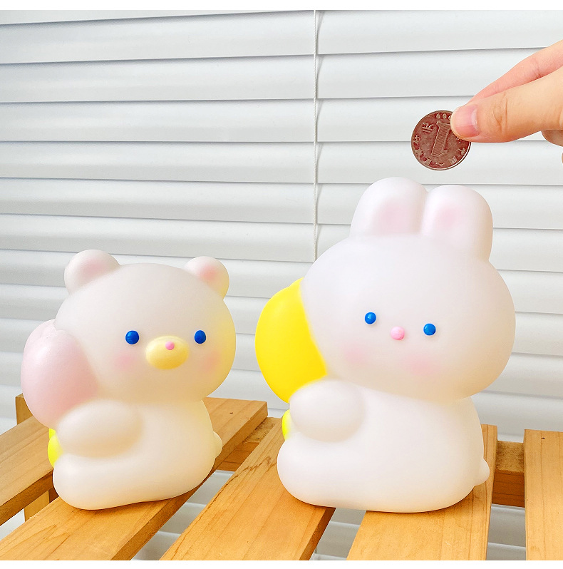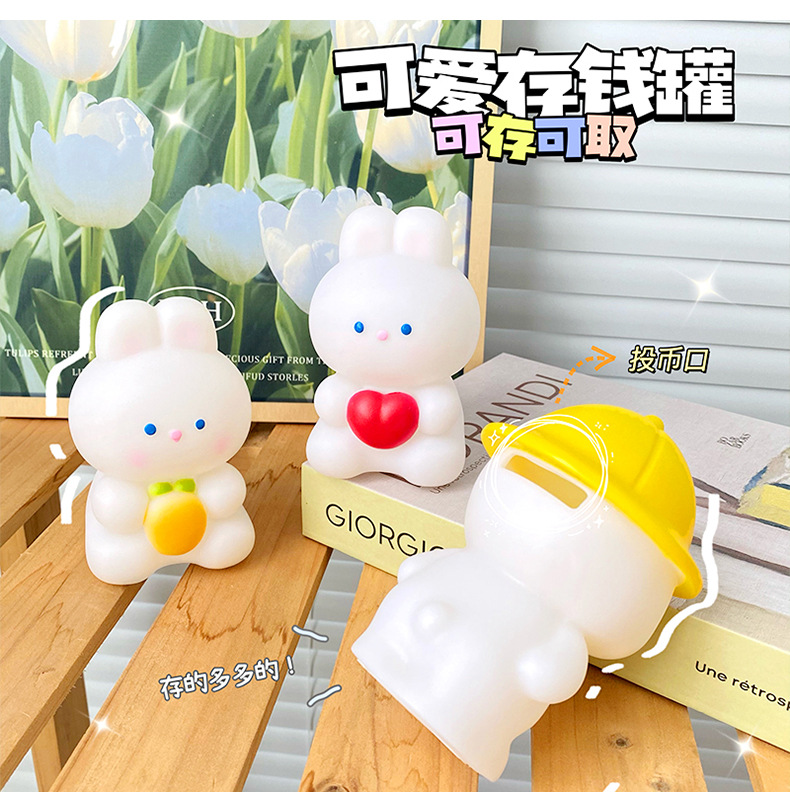 귀여운 작은 토끼 돼지 저금통 어린이 드롭 방지 작은 곰 동전 은행 돼지 저금통 인터넷 인기 소녀의 심장 돼지 저금통