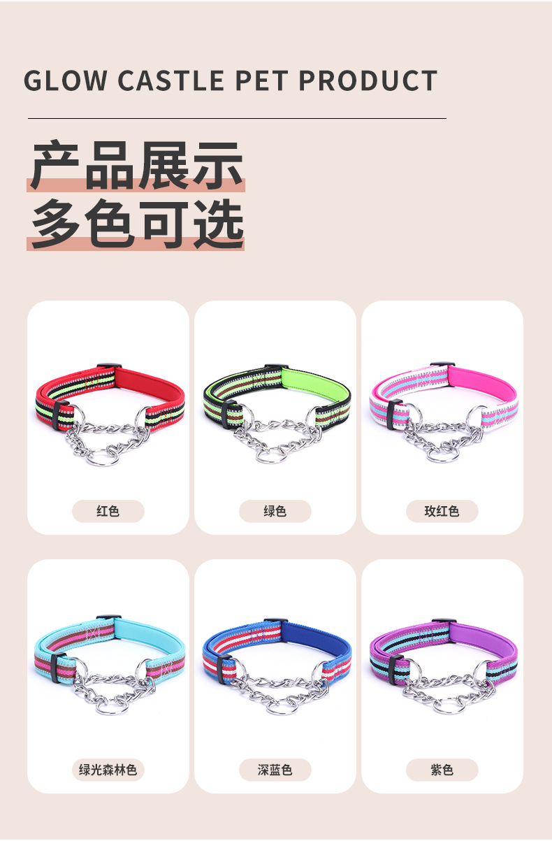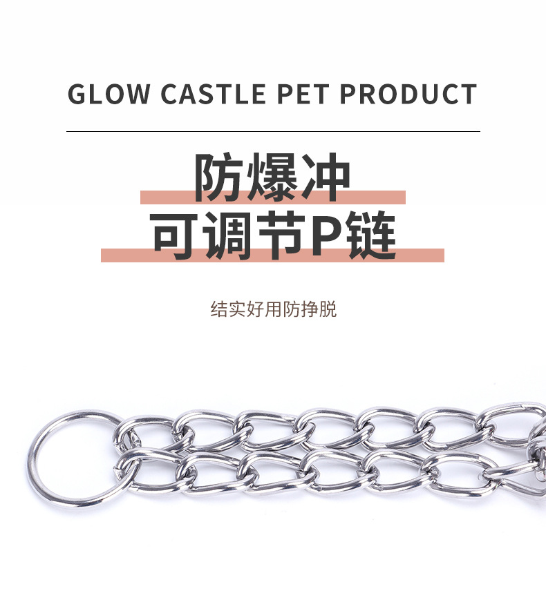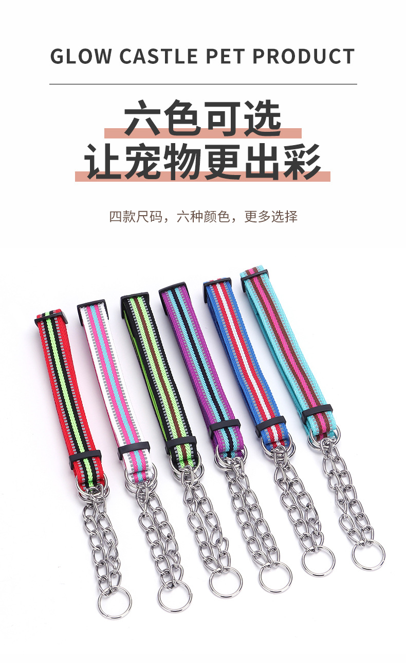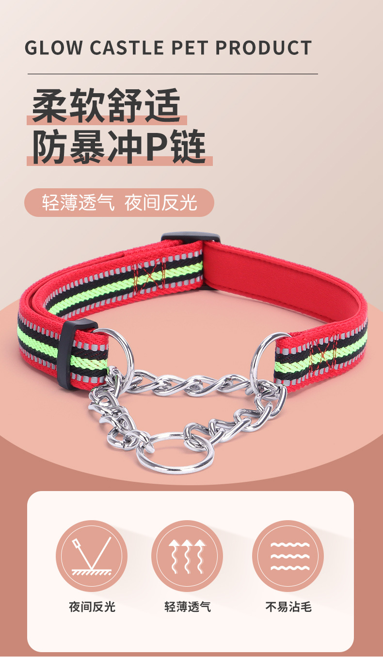 크로스 보더 애완 동물 나일론 반사 P 체인 개 로프 견인 로프 황금 머리 칼라 목 반지 뱀 체인 애완 동물 개 체인