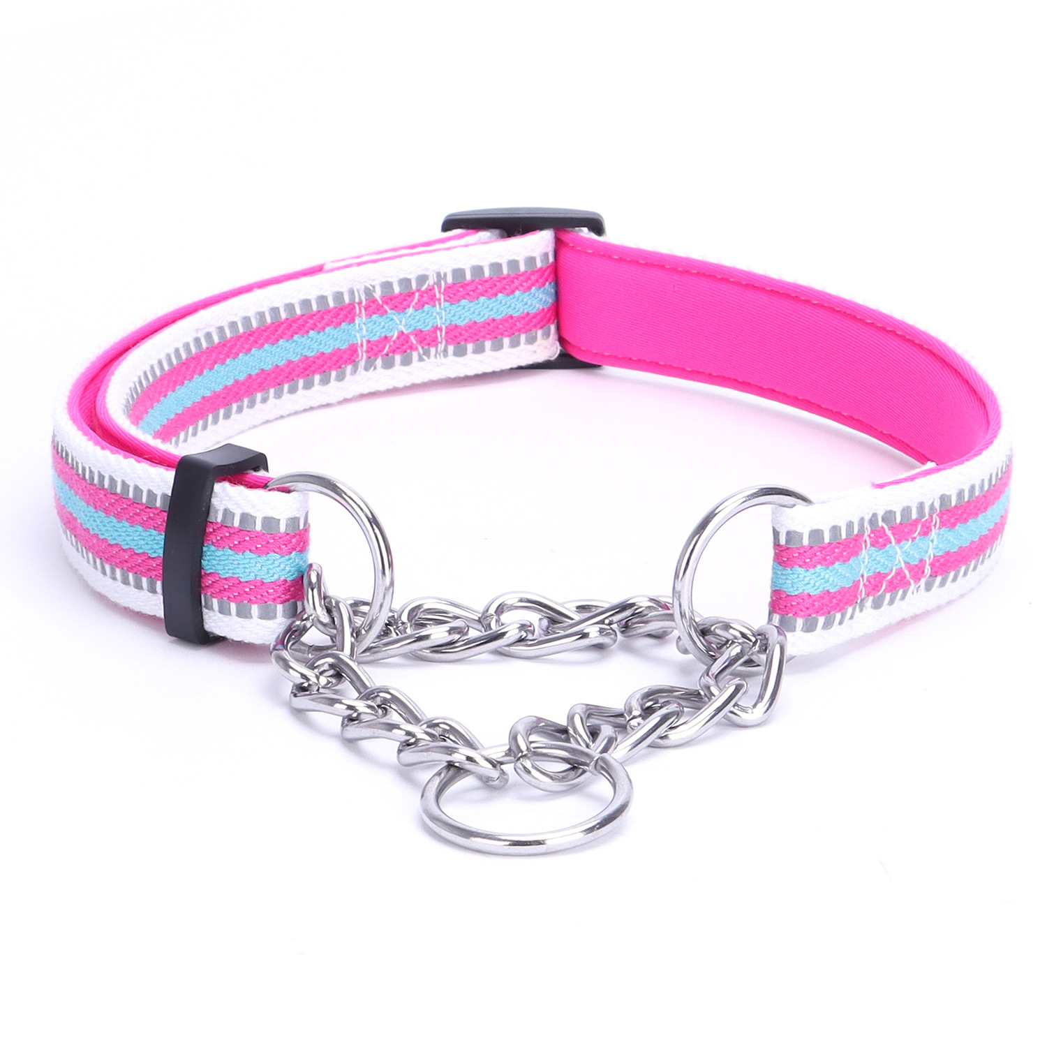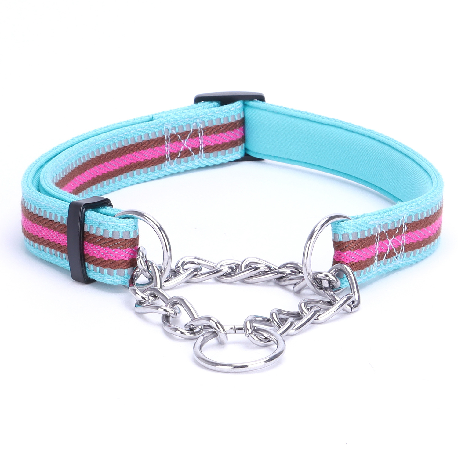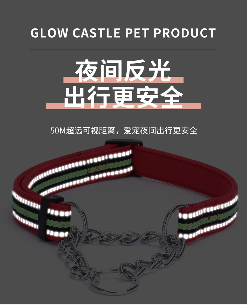 크로스 보더 애완 동물 나일론 반사 P 체인 개 로프 견인 로프 황금 머리 칼라 목 반지 뱀 체인 애완 동물 개 체인