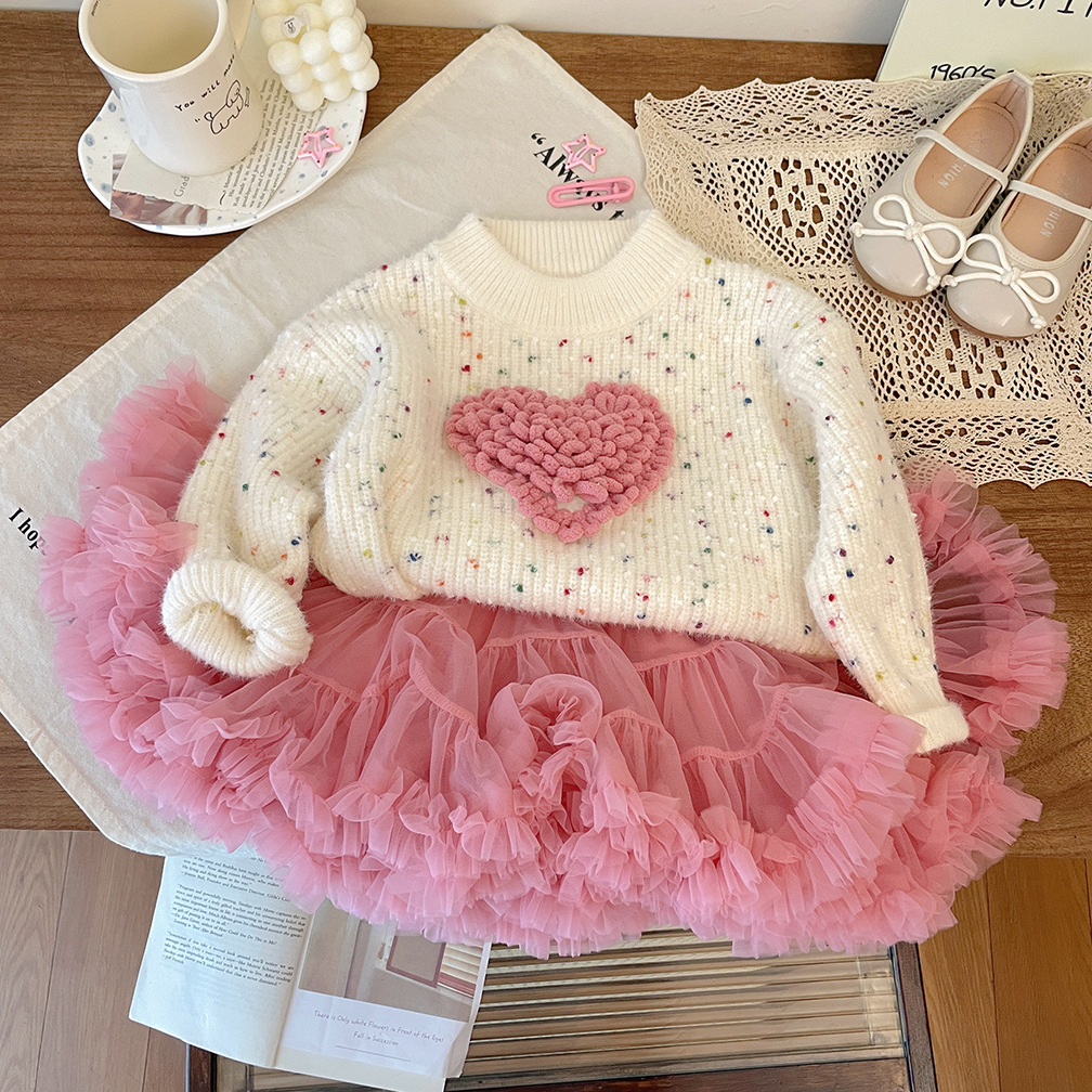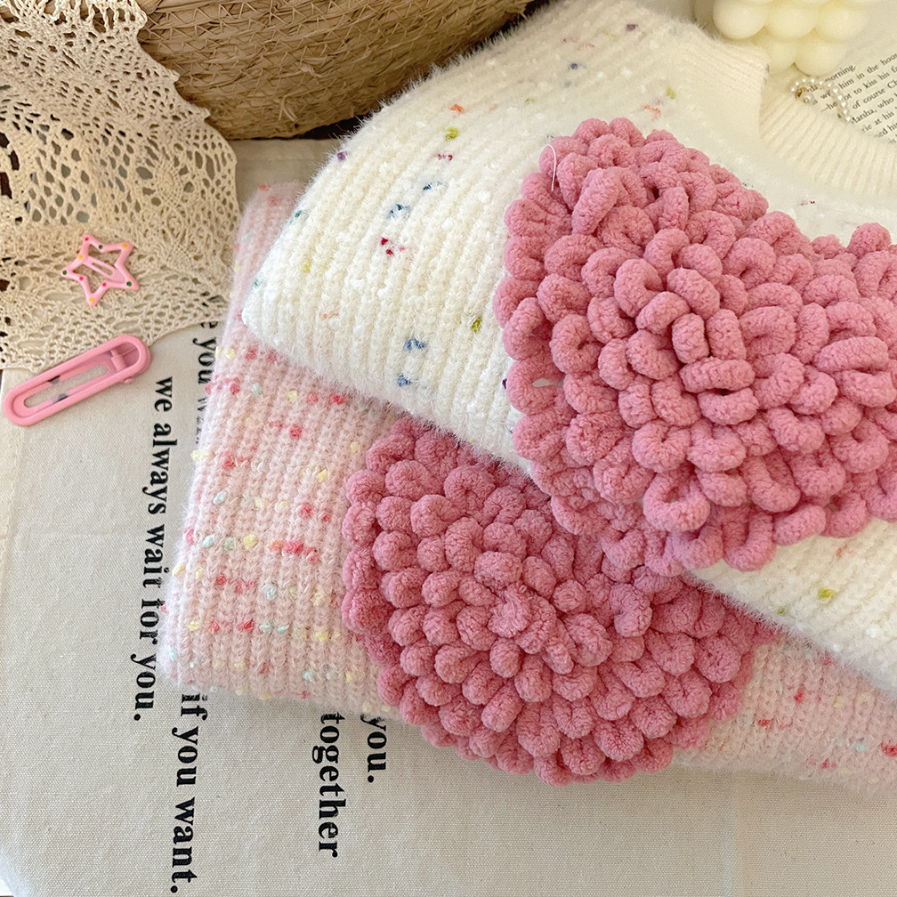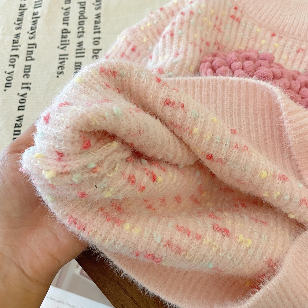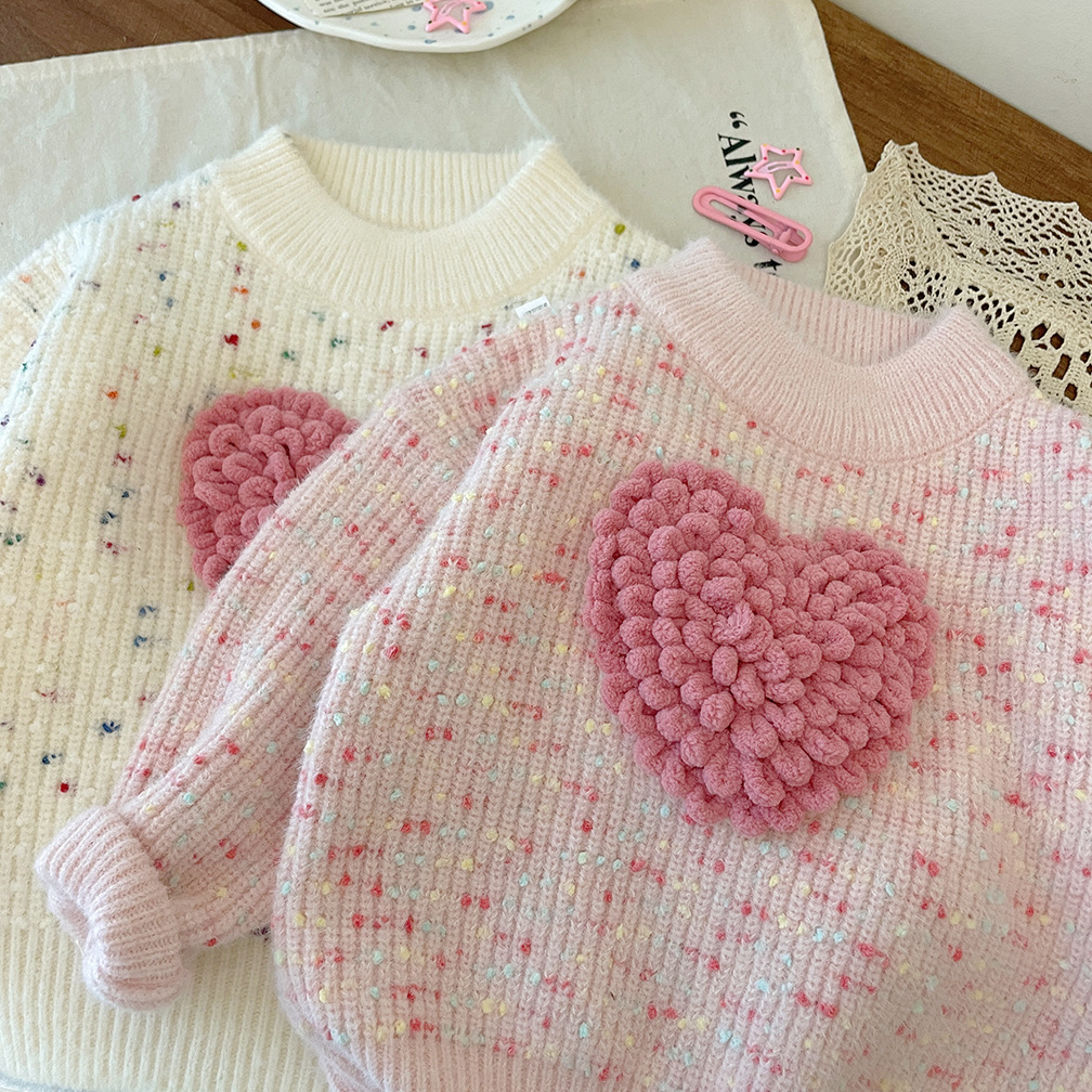 한국 아동복 2025 겨울 신작 여아 세련된 입체 모피 사랑 다채로운 니트 풀오버 두꺼운 스웨터
