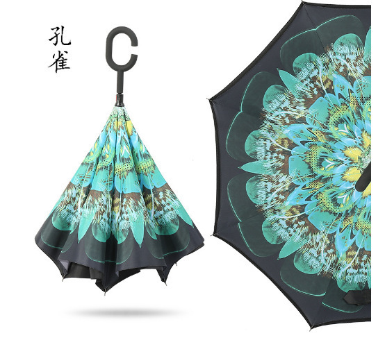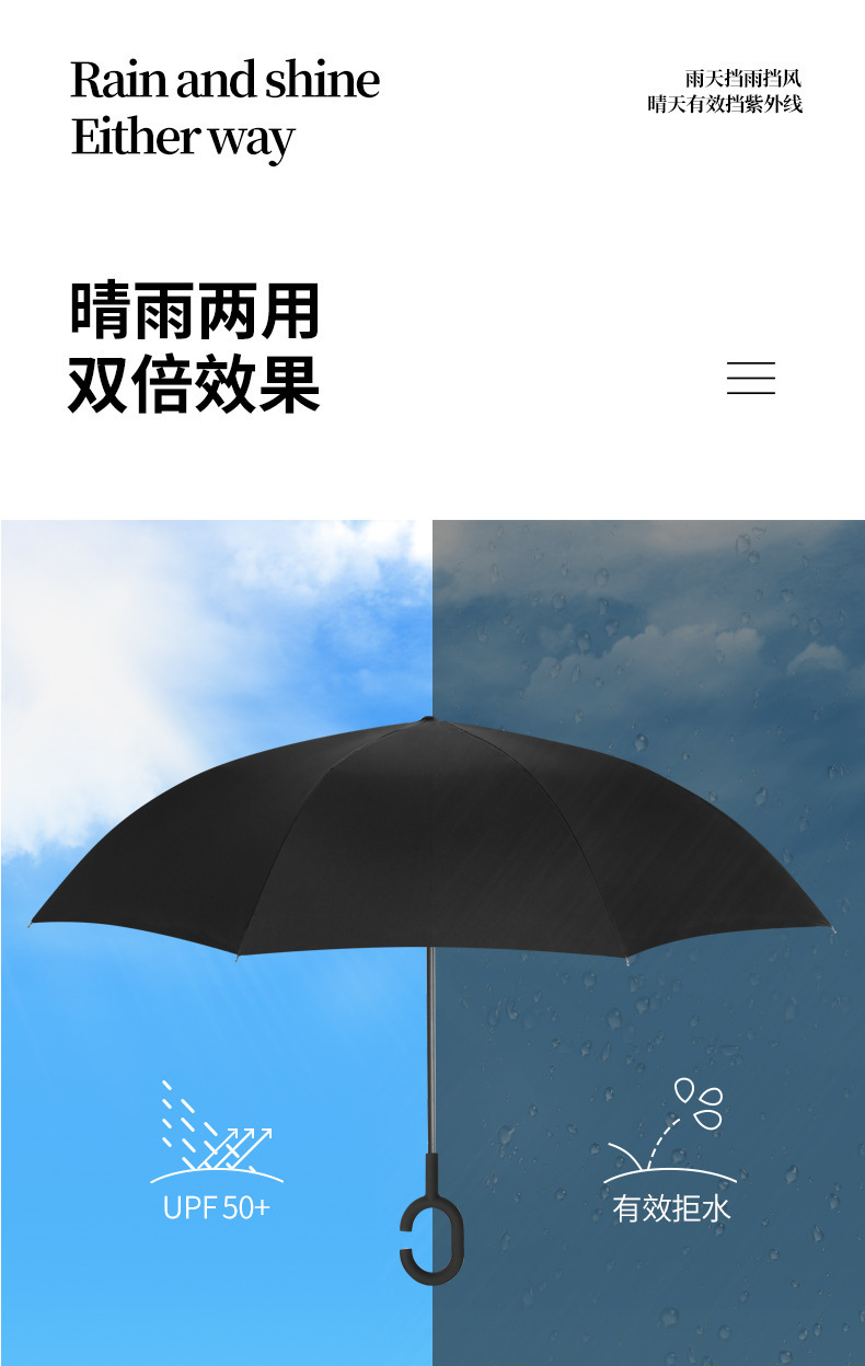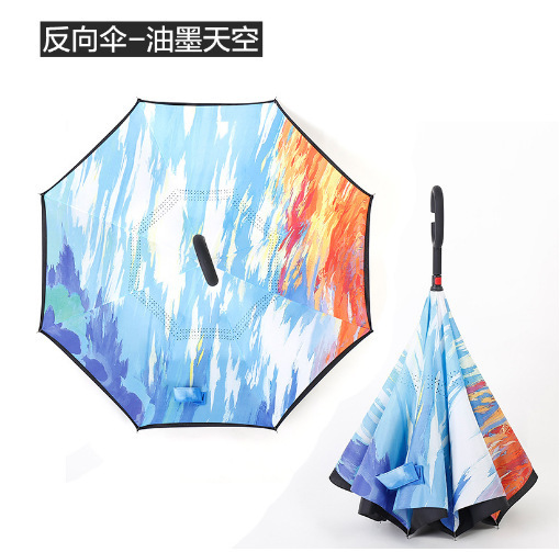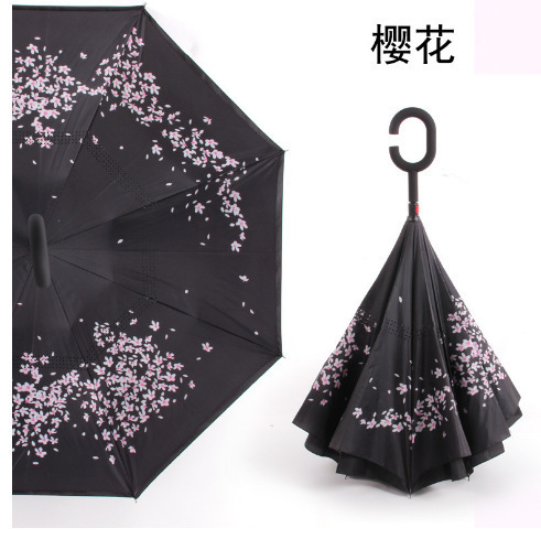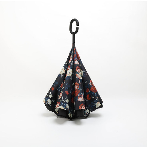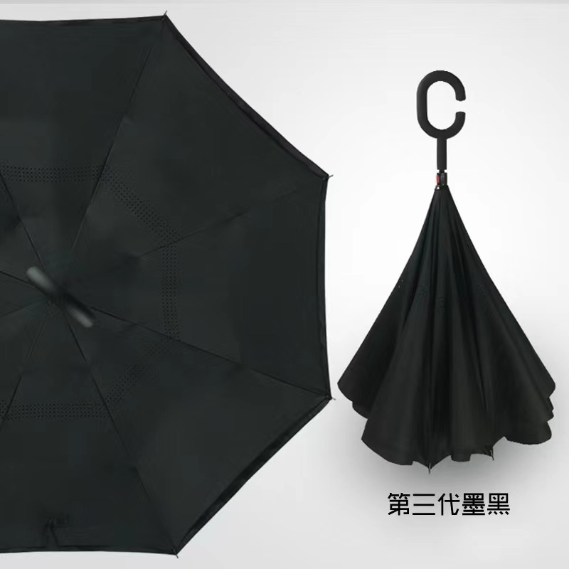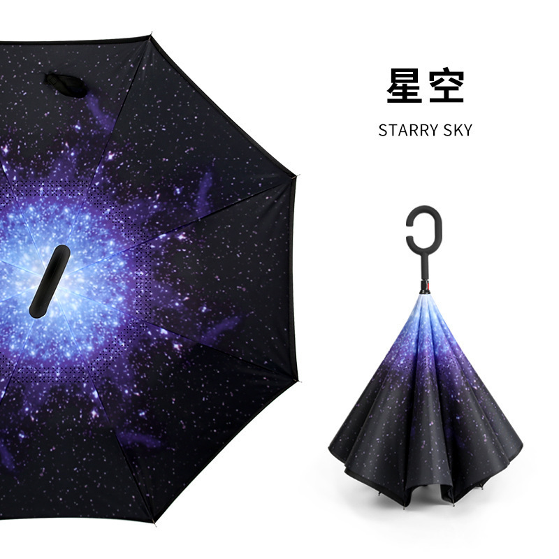 핸즈프리 C 형 2 층 우산 도매 양지 바른 비 오는 이중 목적 긴 손잡이 직선 막대 자동차 자동 역 우산 사용자 정의 패턴