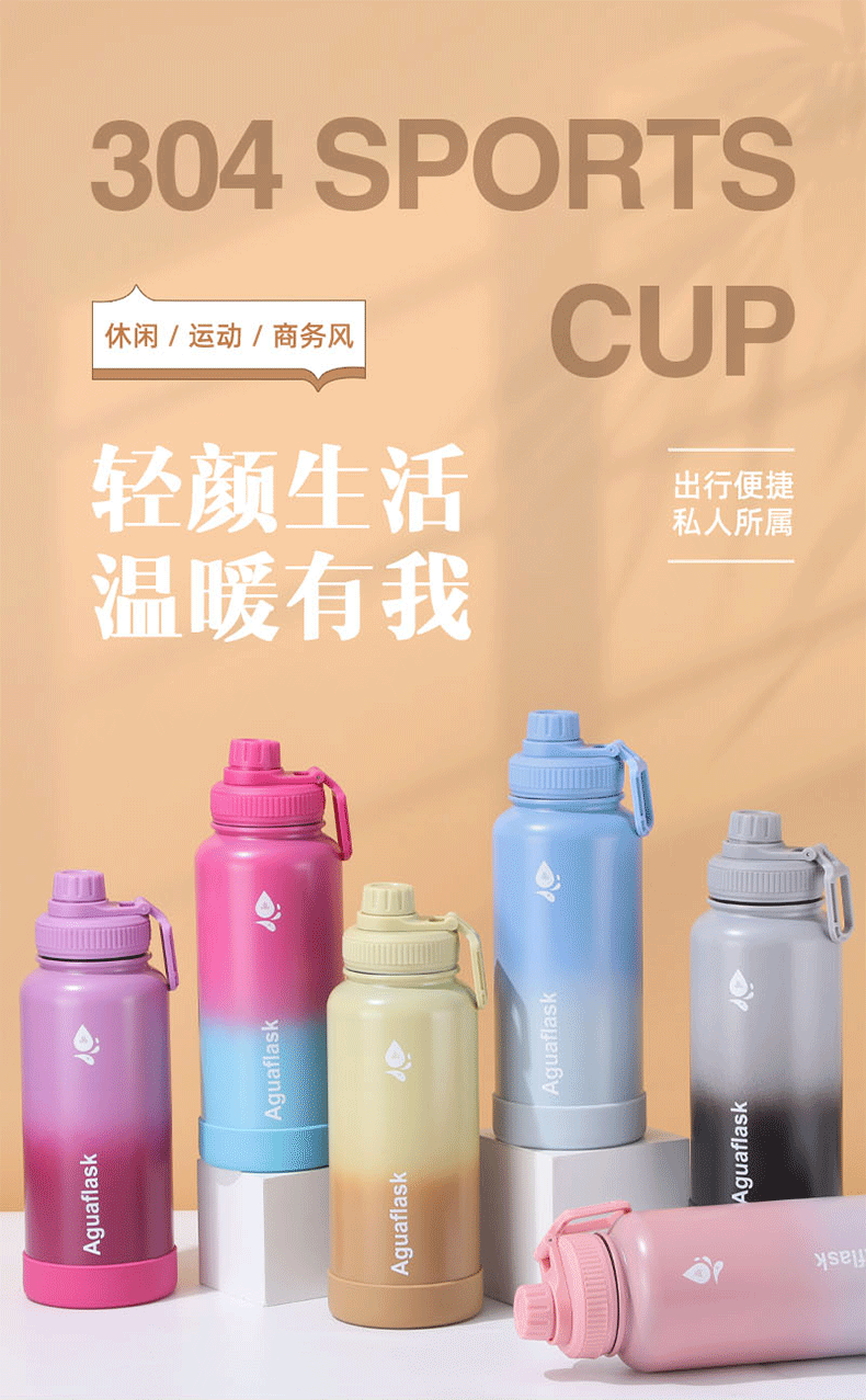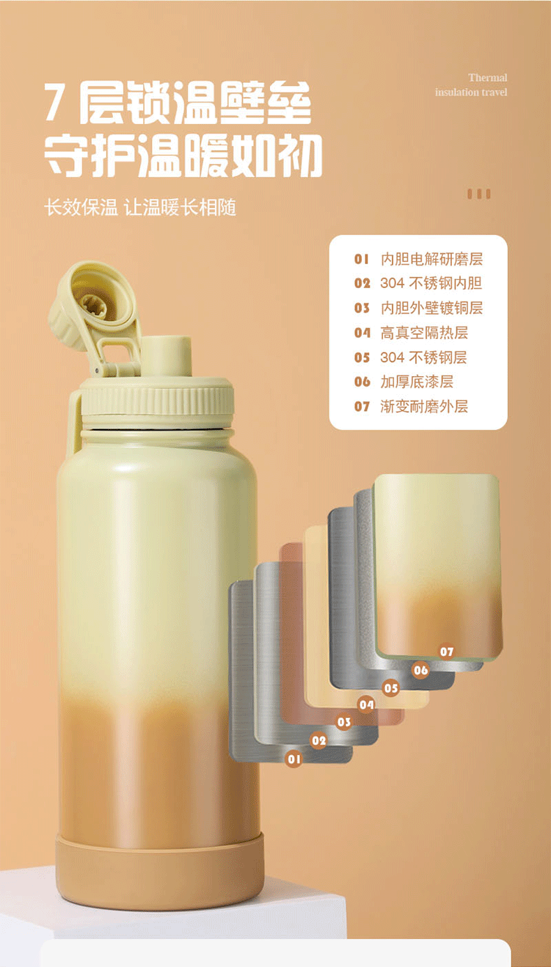 대외 무역용 304 스테인리스 보온병, 그라데이션 컬러 스페이스 컵, 야외 휴대용 대용량 보냉병 물통