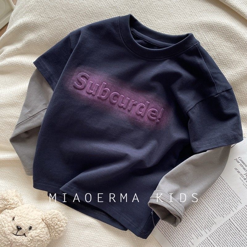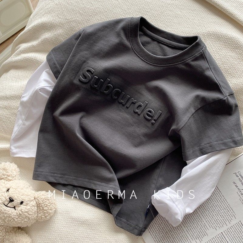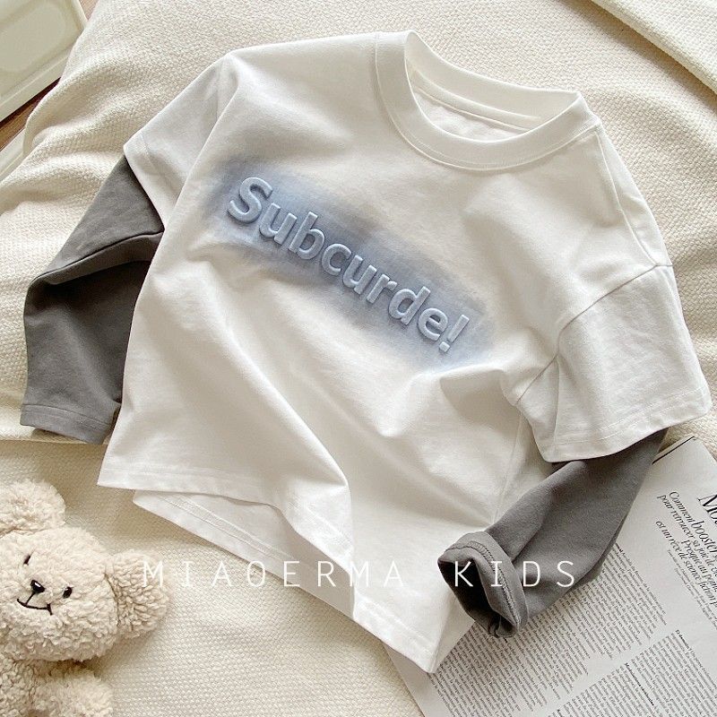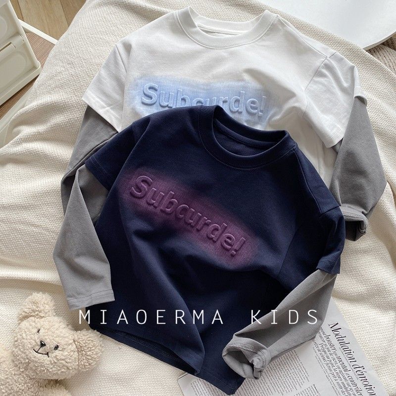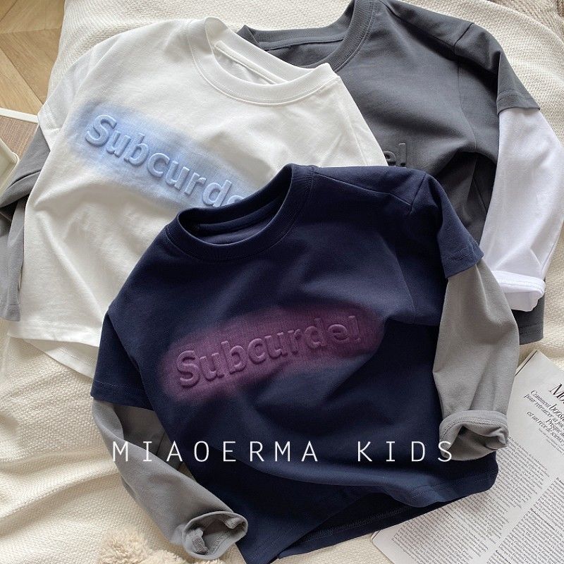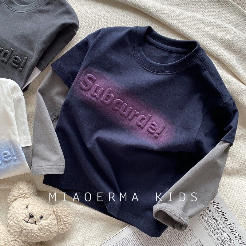 남학생 긴팔 티셔츠 2024 봄과 가을 새 어린이 가짜 투피스 티셔츠 어린이 아기 풀오버 아우터 착용베이스 셔츠스토어 가기