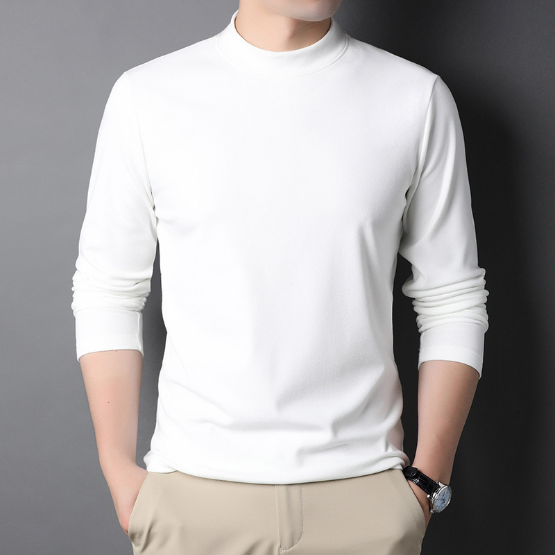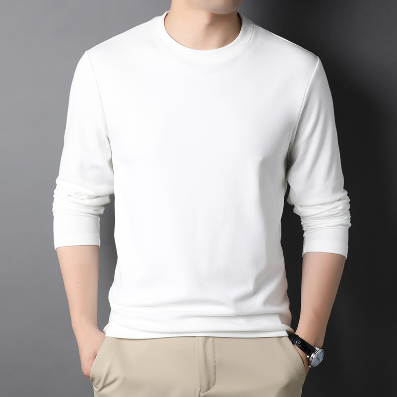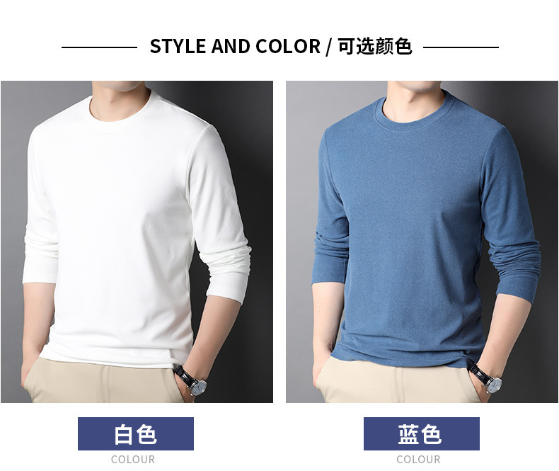 2023 가을과 겨울 새로운 양면 벨벳 스웨터 남성용 라운드 넥 청소년 단색 따뜻한 긴팔 티셔츠 남성용 기본 셔츠
