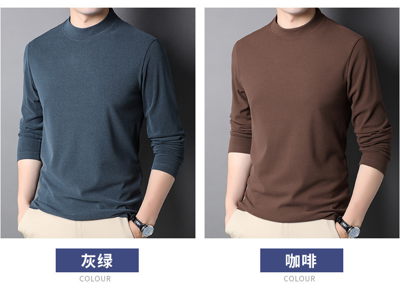 2023 가을과 겨울 새로운 양면 벨벳 스웨터 남성용 라운드 넥 청소년 단색 따뜻한 긴팔 티셔츠 남성용 기본 셔츠스토어 가기