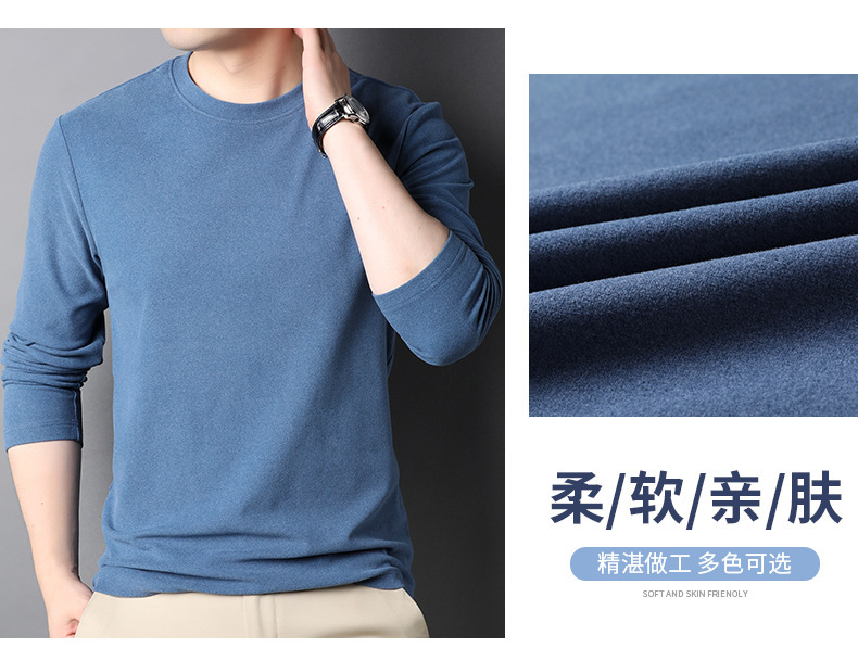 2023秋冬新款双面德绒卫衣男圆领青年纯色保暖长袖T恤男士打底衫