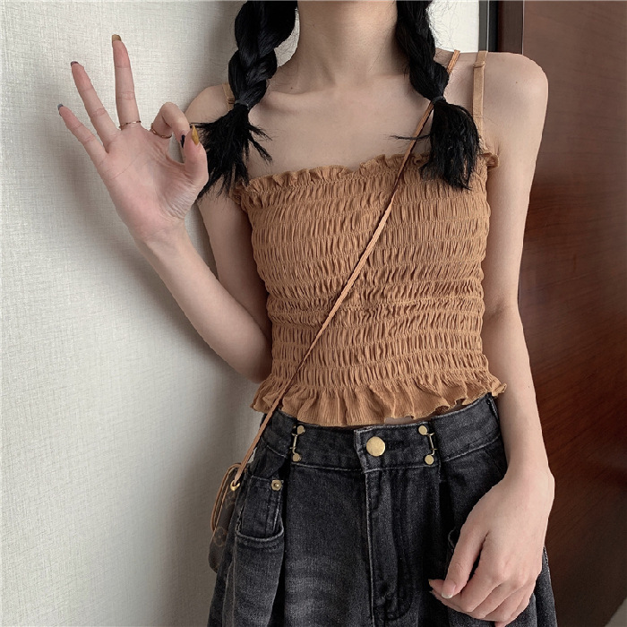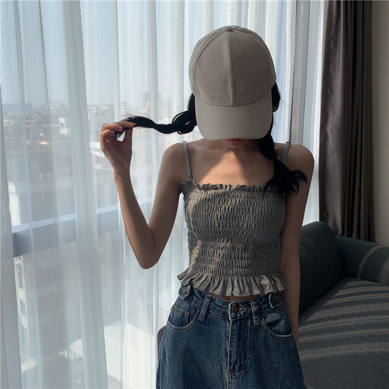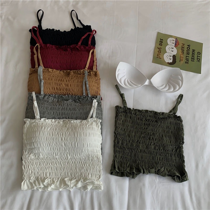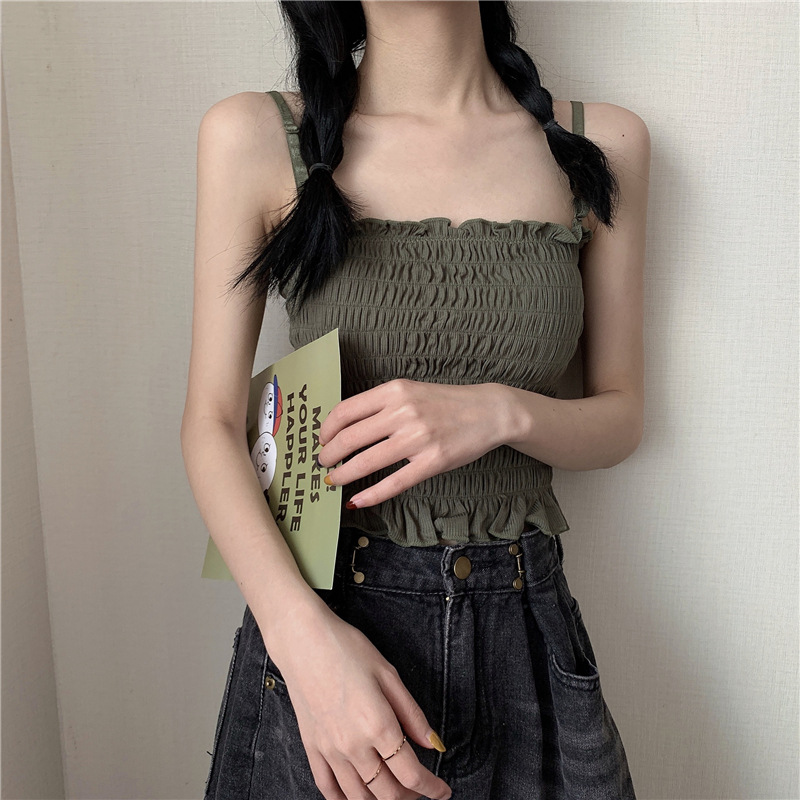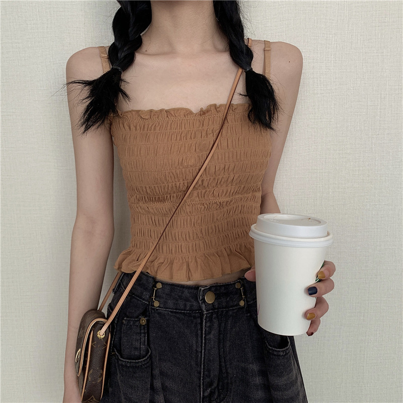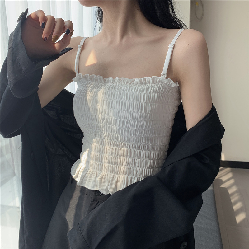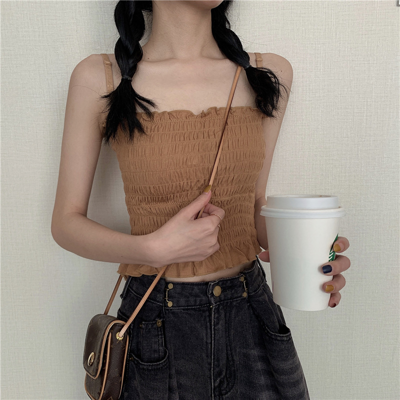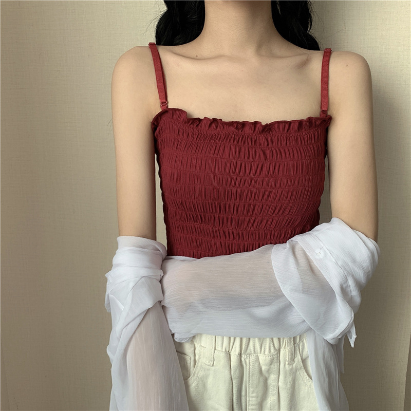 여성용 여름 얇은 주름 민소매 탑, 슬림핏, 슬리밍 효과, 등이 예쁜 이너웨어, 가볍고 통기성 좋음