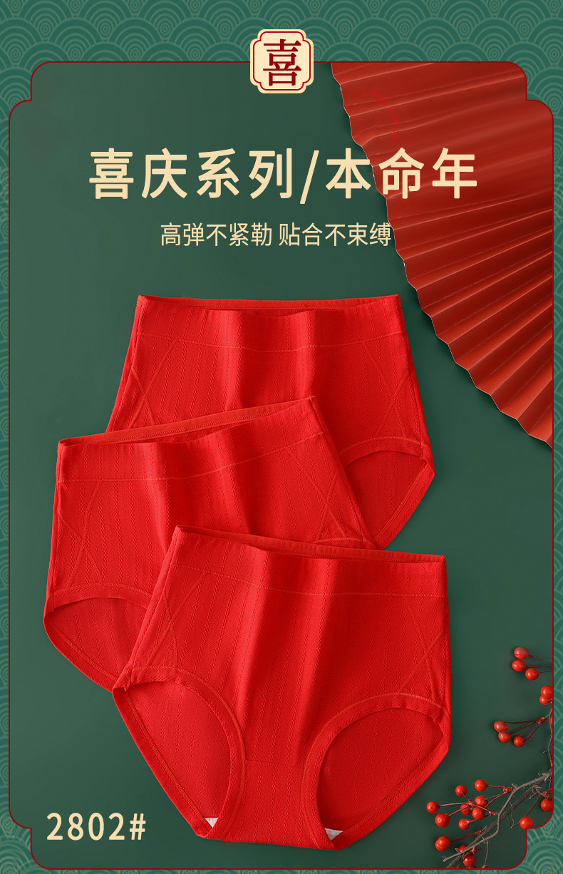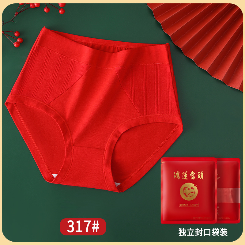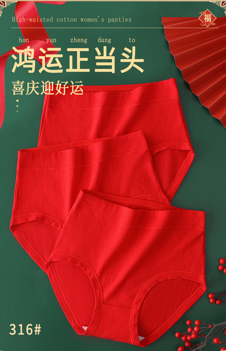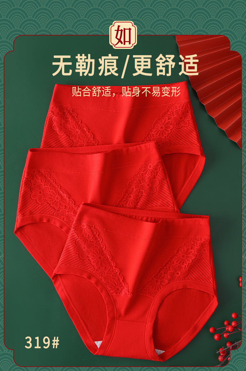 올해의 큰 빨간 속옷 여자의 면 높은 허리 용 년 축제 결혼식 플러스 사이즈 200kg 면 반바지 머리스토어 가기