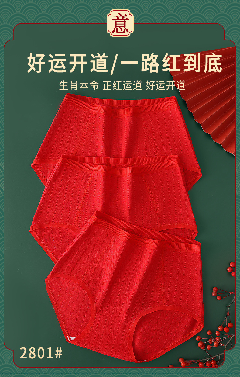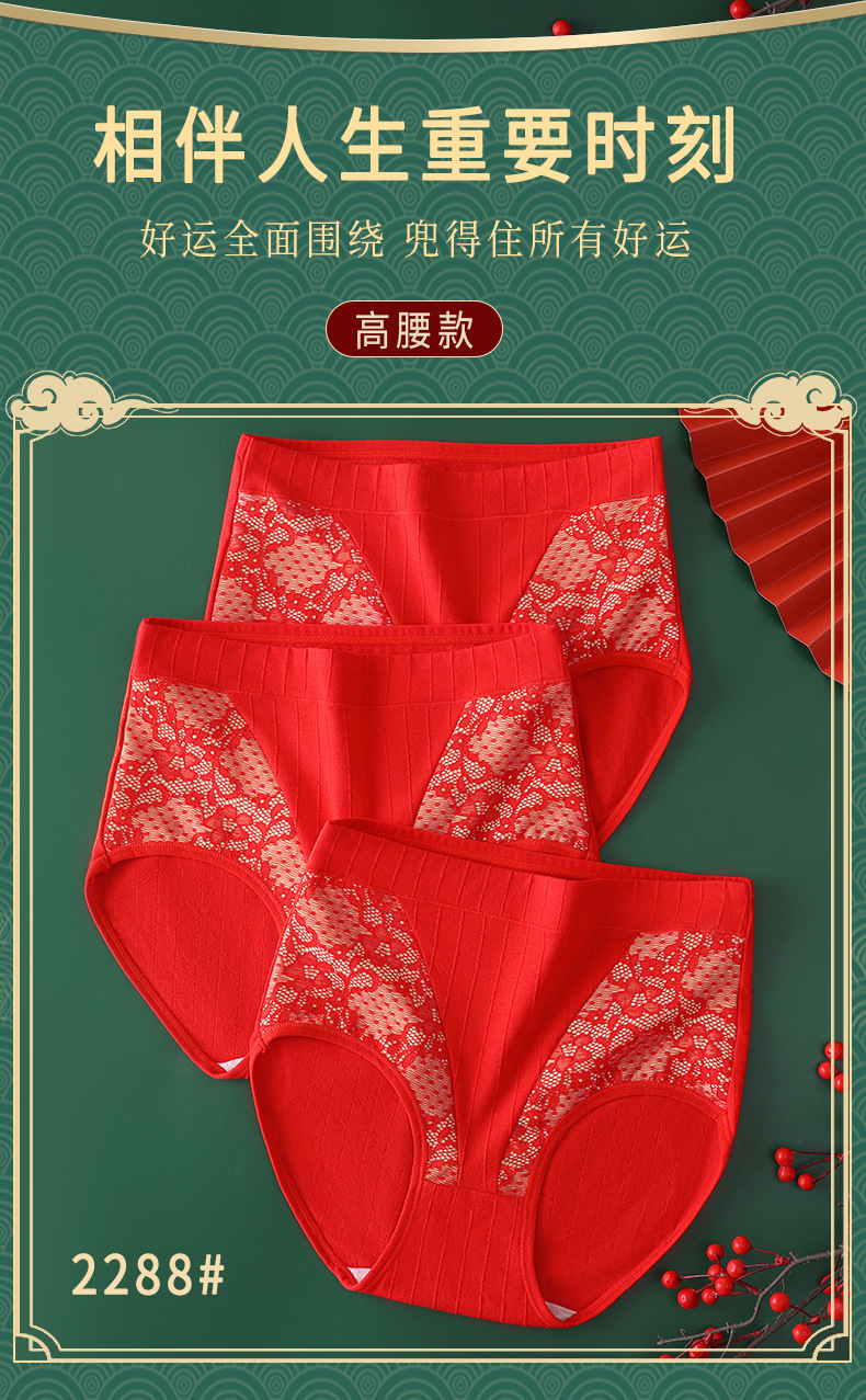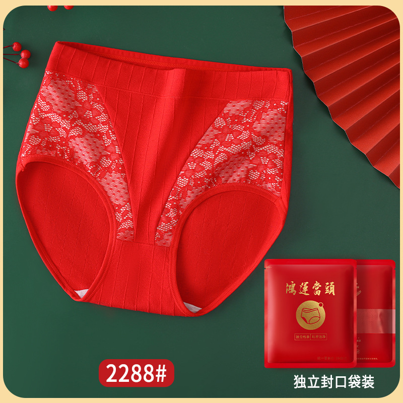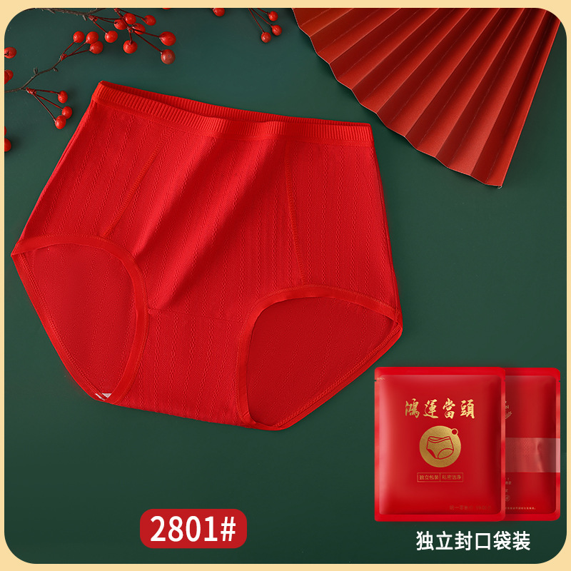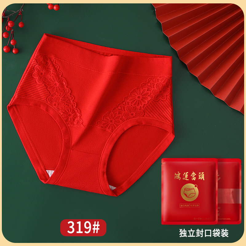 올해의 큰 빨간 속옷 여자의 면 높은 허리 용 년 축제 결혼식 플러스 사이즈 200kg 면 반바지 머리스토어 가기