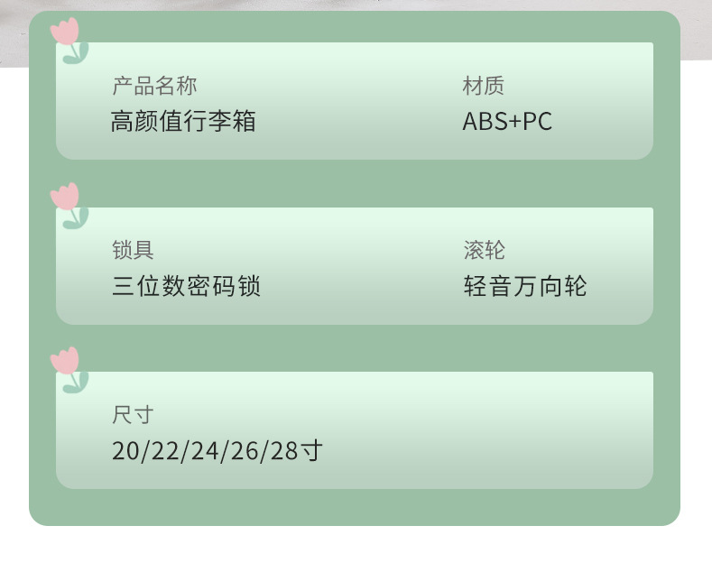 아이스크림 여행가방 24inch 바퀴 달린 여성용 여행가방 20inch 기내용 가방 경량 마카롱 색상 가방