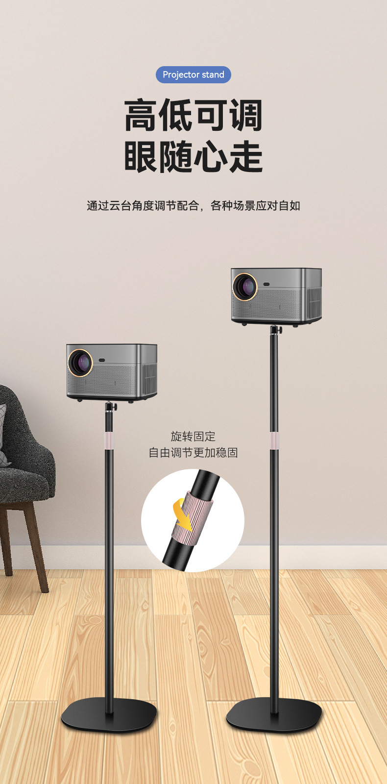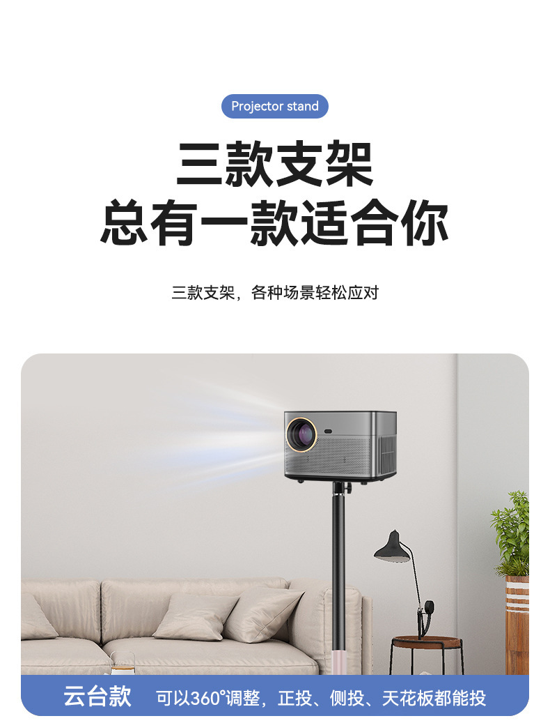 프로젝터 브래킷 침대 옆 탁상용 바닥-벽 텔레스코픽 숨겨진 삽입 솔기 펀치 없음 보관 트레이 팬/틸트 브래킷
