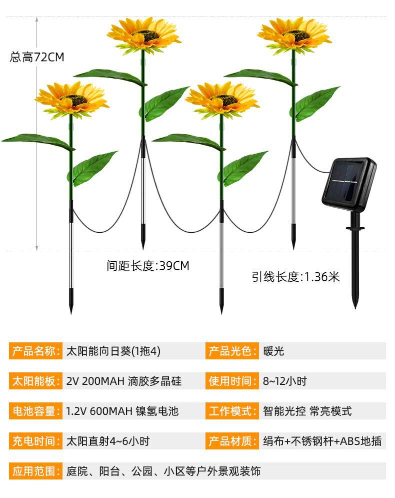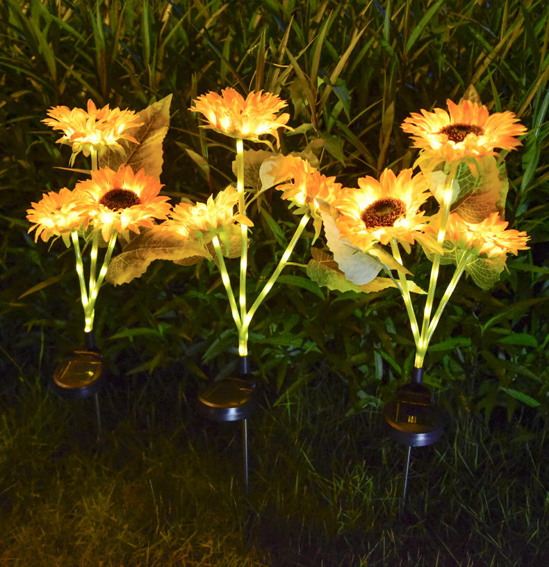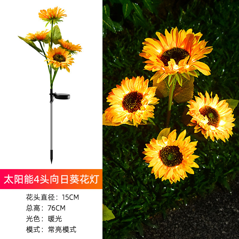 국경 간 led 태양 잔디 램프 야외 시뮬레이션 해바라기 꽃 플로어 램프 안뜰 정원 장식 조경 램프