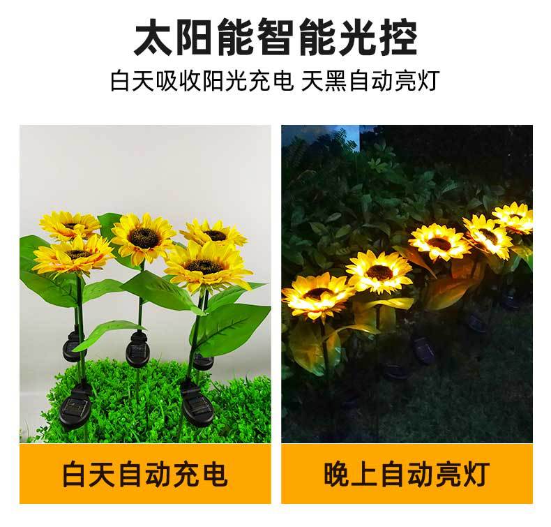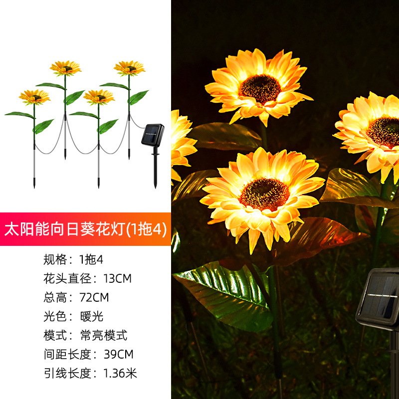 국경 간 led 태양 잔디 램프 야외 시뮬레이션 해바라기 꽃 플로어 램프 안뜰 정원 장식 조경 램프스토어 가기