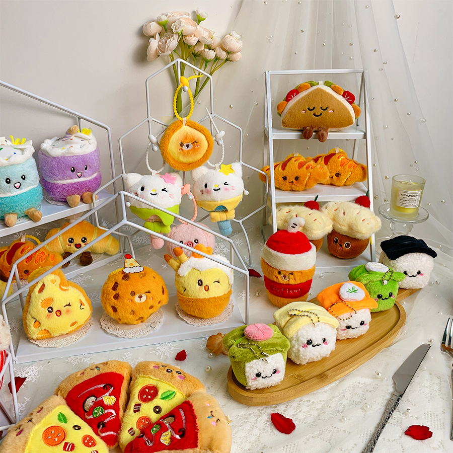 재미있는 시뮬레이션 음식 인형 플러시 펜던트 학교 활동 선물 케이크 바게트 인형 키 체인 도매스토어 가기
