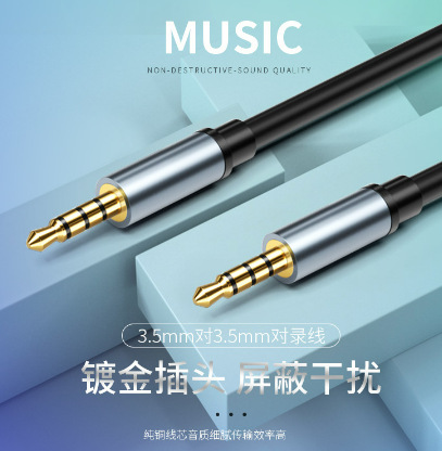 진삼딩 3.5mm 남성-남성 차량용 오디오 케이블 3단/4단 마이크 포함 컴퓨터 스피커 연결 3단/4단 랜덤