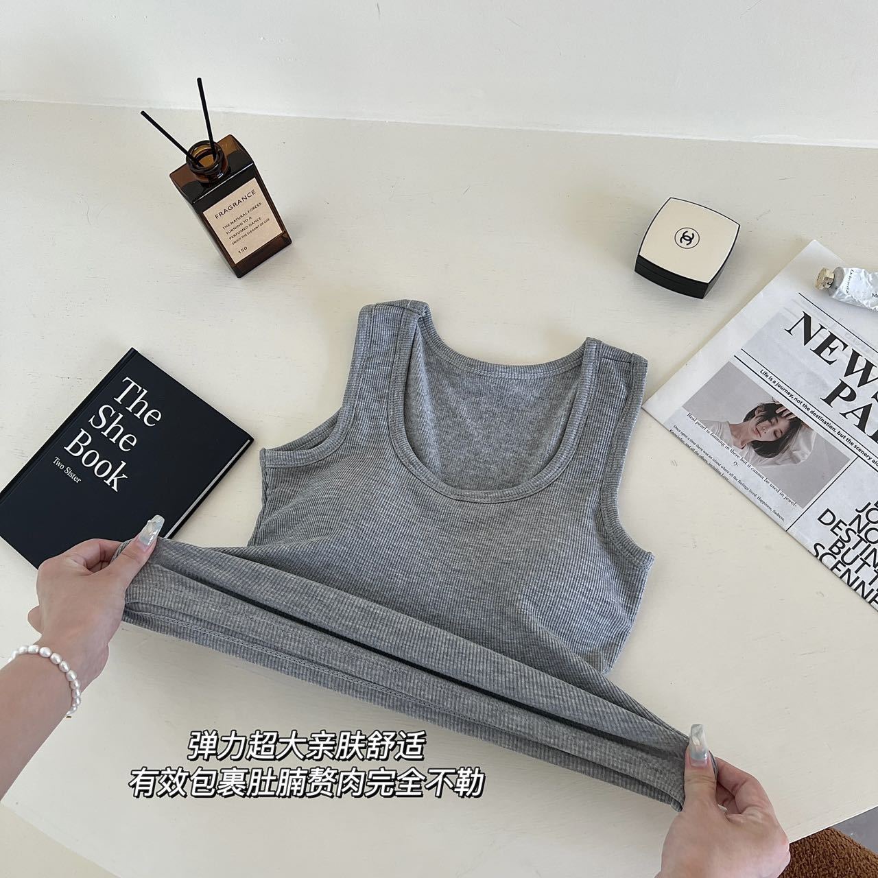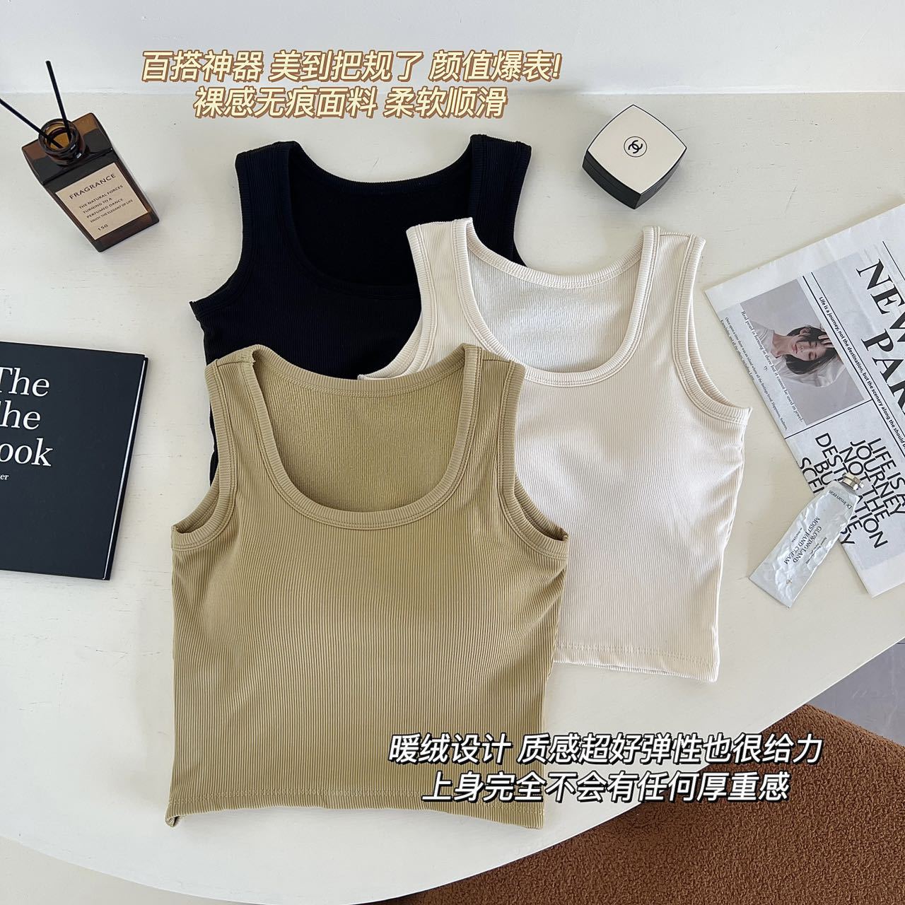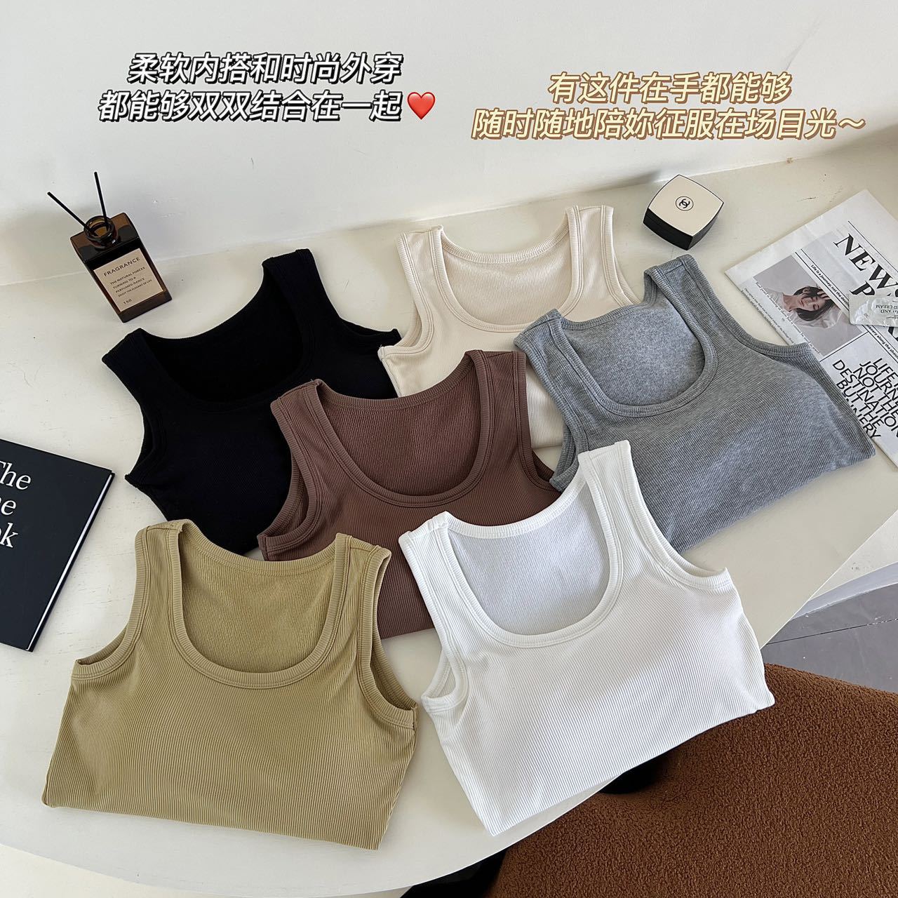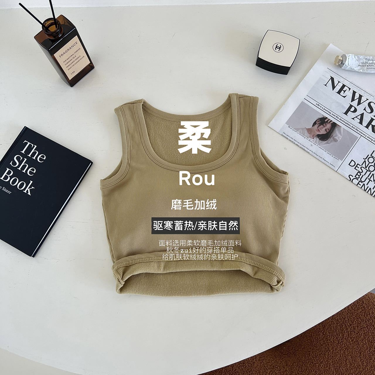가을과 겨울 새로운 샌딩 I 자형 슬링 스몰 조끼 여성용 벨트 가슴 패드 통합 컵 내부 착용 겉옷 슬림핏 웜 탑 착용스토어 가기