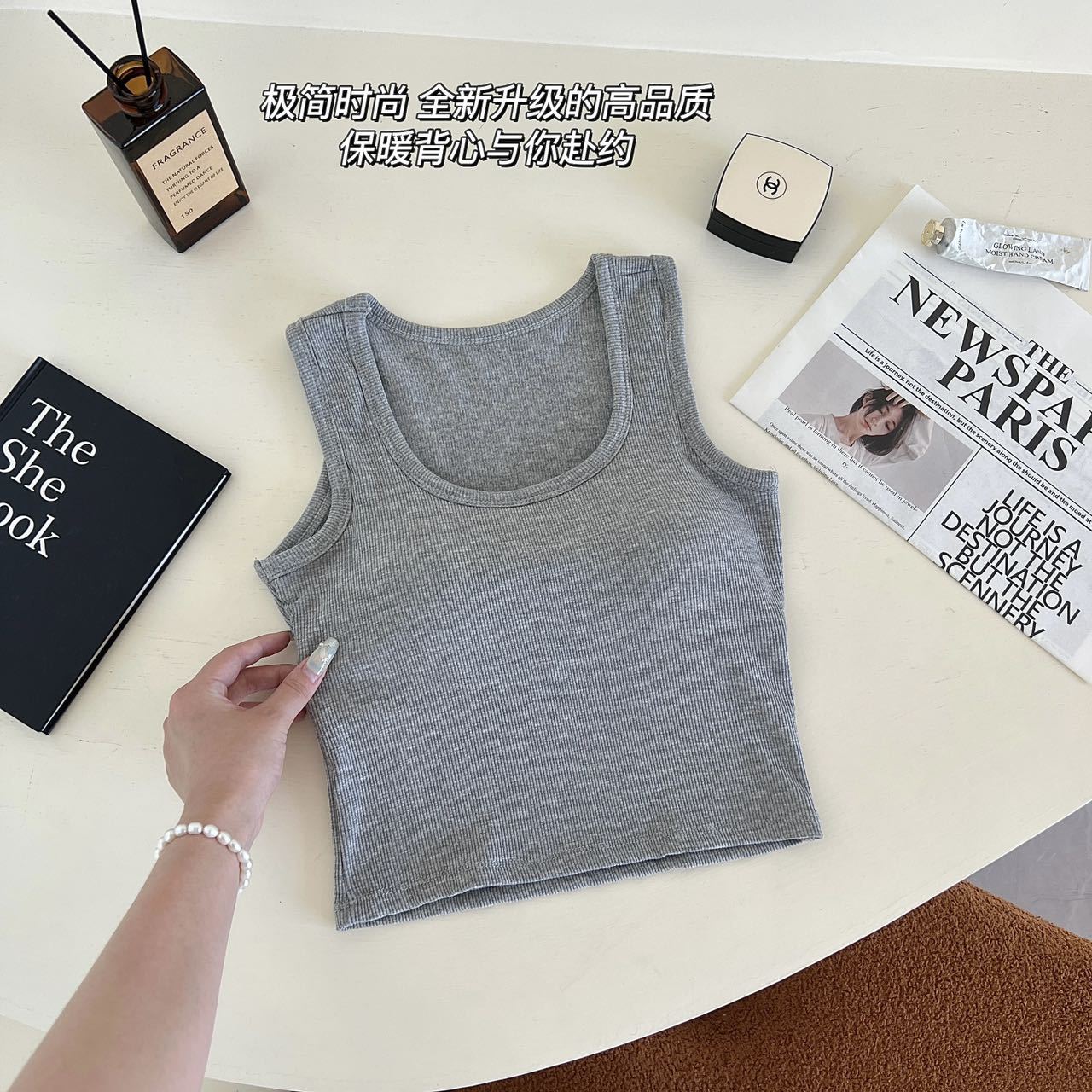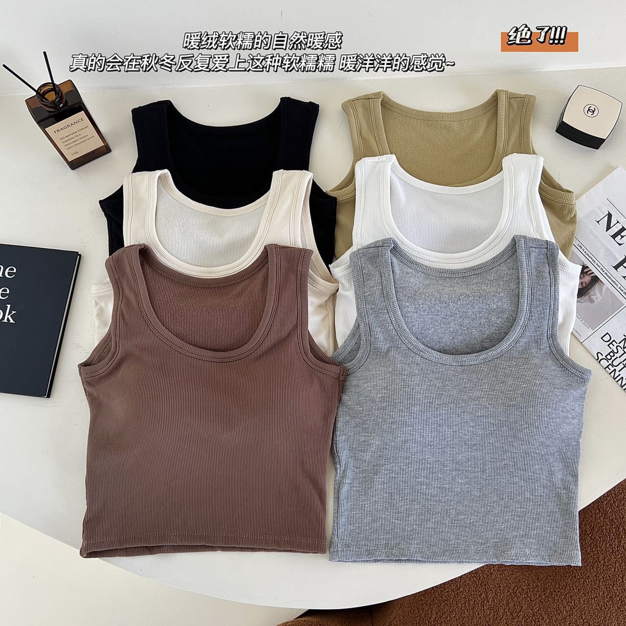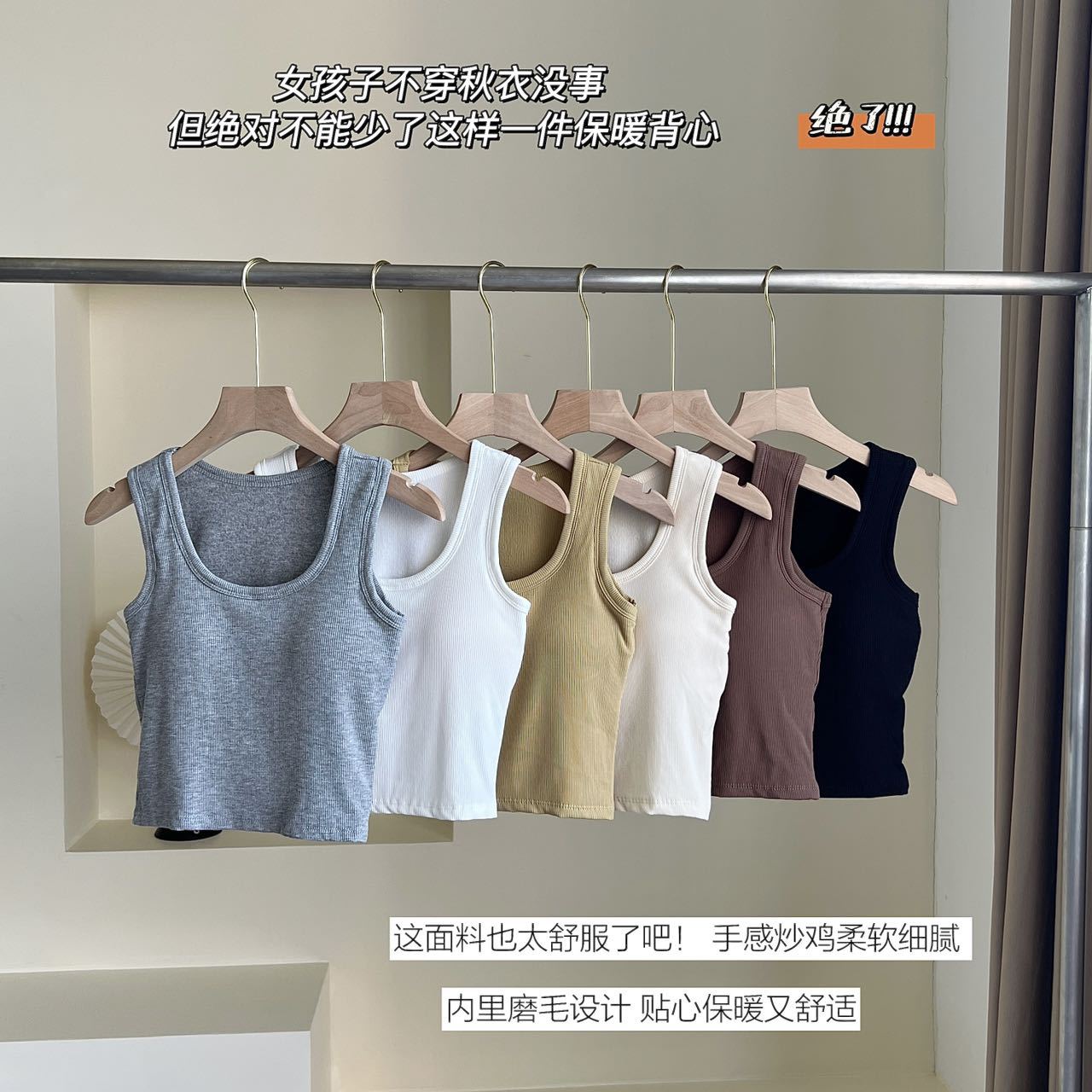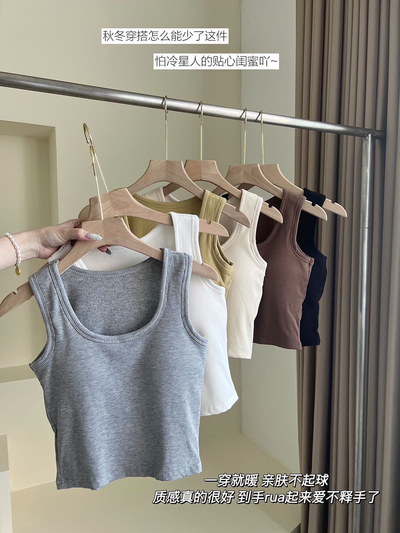 가을과 겨울 새로운 샌딩 I 자형 슬링 스몰 조끼 여성용 벨트 가슴 패드 통합 컵 내부 착용 겉옷 슬림핏 웜 탑 착용스토어 가기