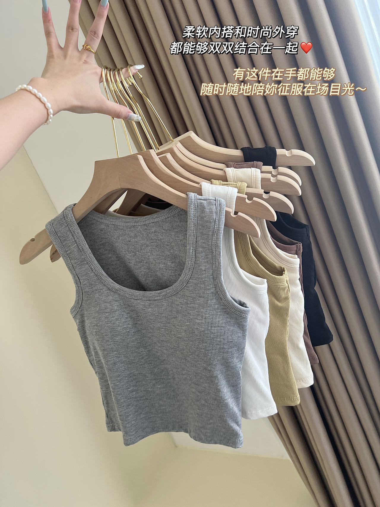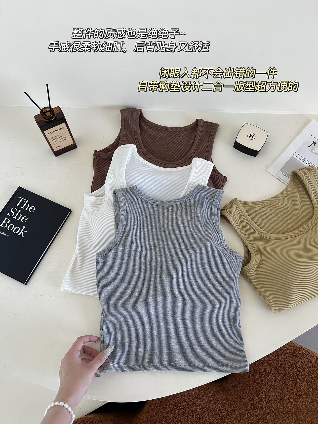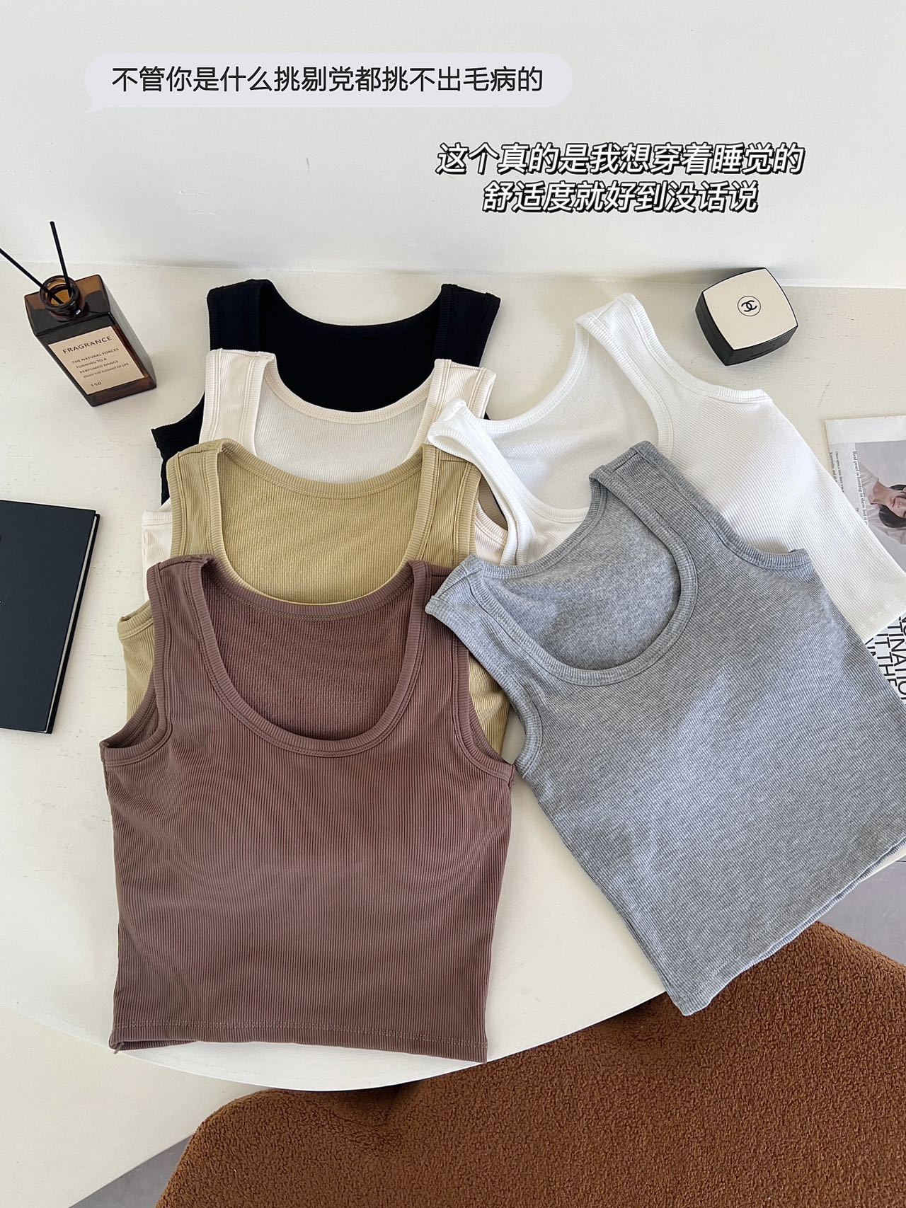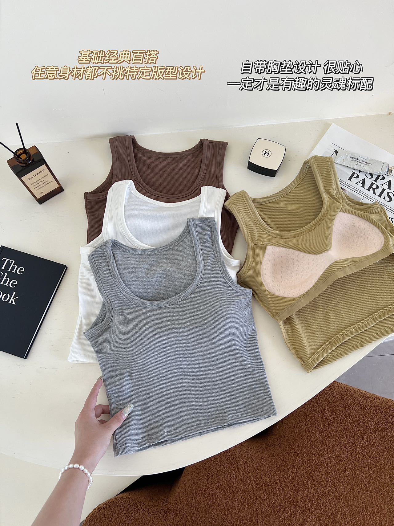 가을과 겨울 새로운 샌딩 I 자형 슬링 스몰 조끼 여성용 벨트 가슴 패드 통합 컵 내부 착용 겉옷 슬림핏 웜 탑 착용스토어 가기