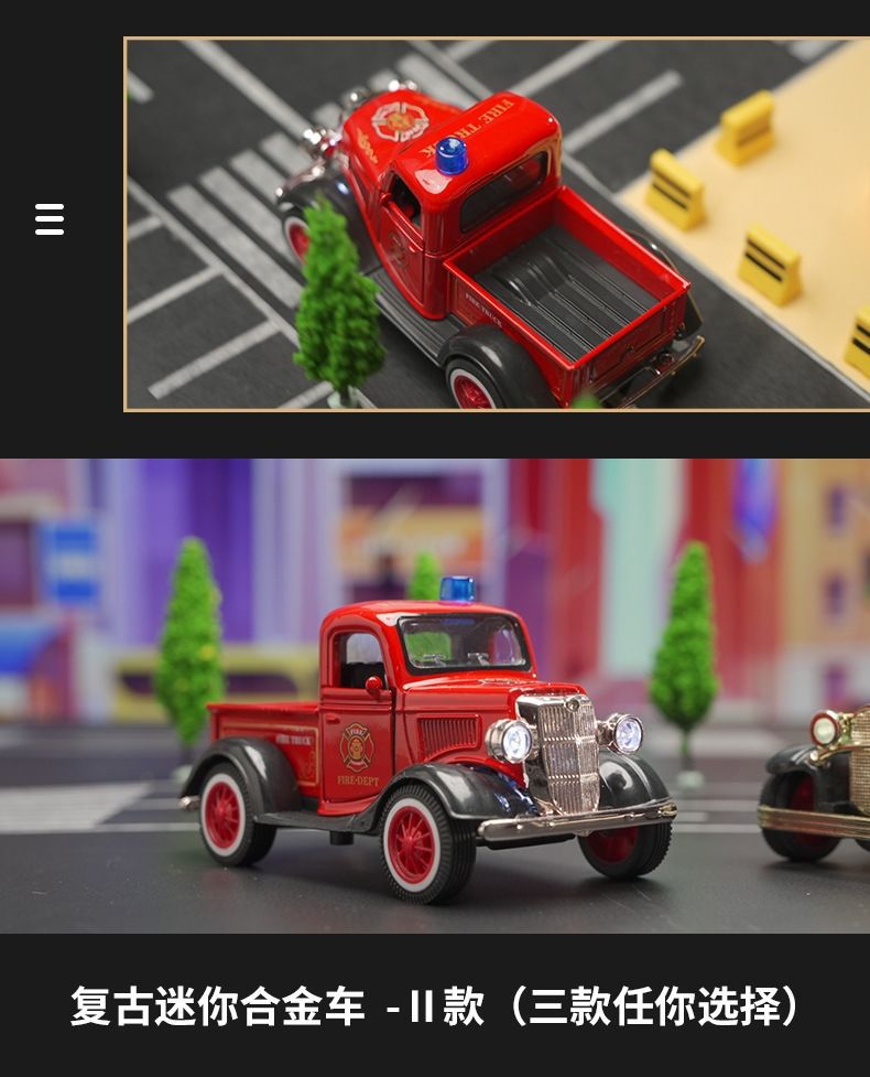 레트로 도시 소방차 시뮬레이션 음향 광학 Huili 합금 자동차 모델 소년의 생일 선물 장난감 국경 간 뜨거운 판매