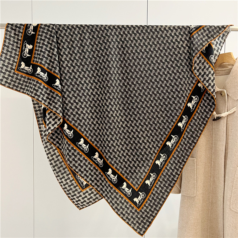 실크 울 스카프 여성의 가을과 겨울 아크 드 개선문 캐리지 라이트 럭셔리 실크 헤어 대형 스퀘어 따뜻한 모든 매치 대형 숄