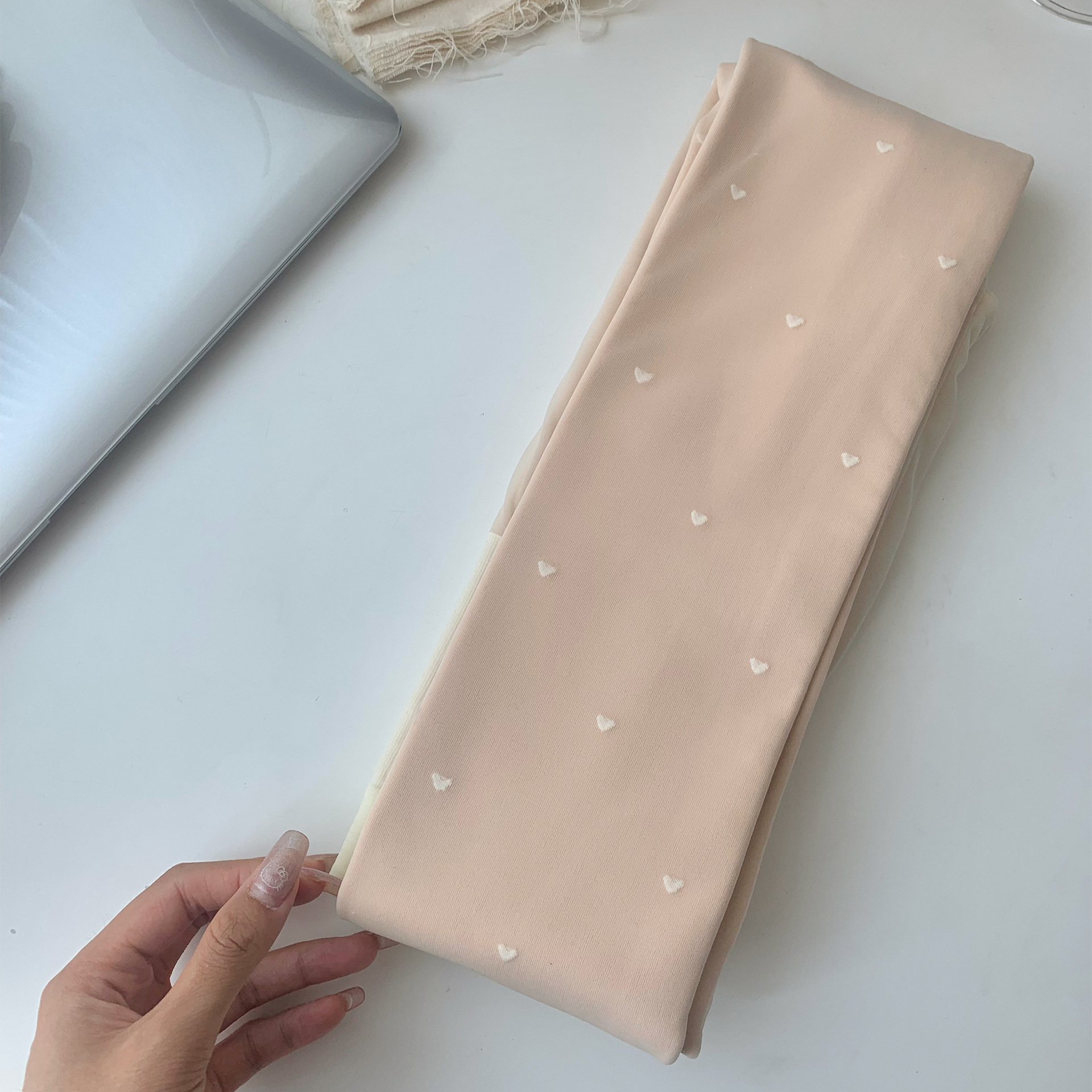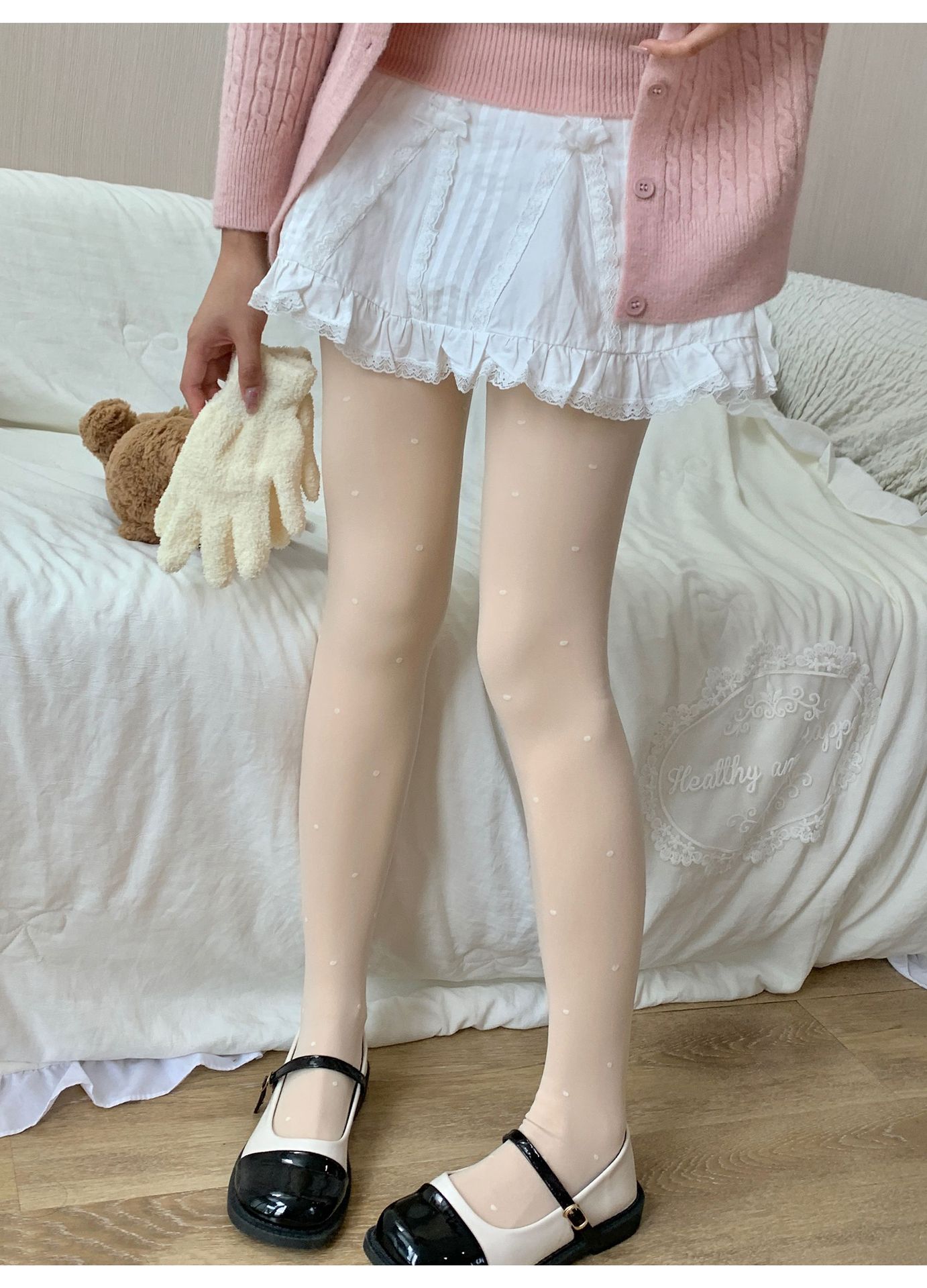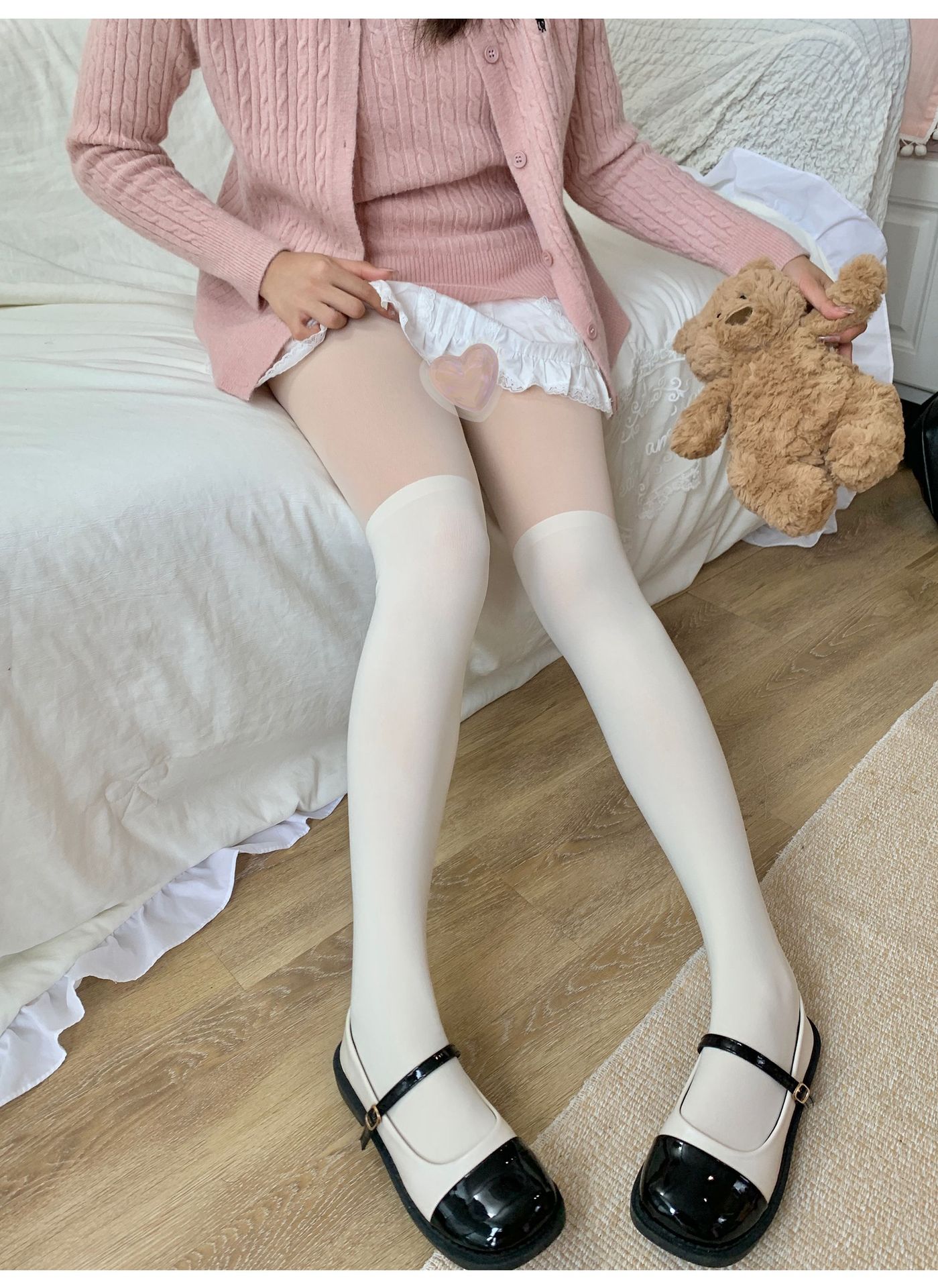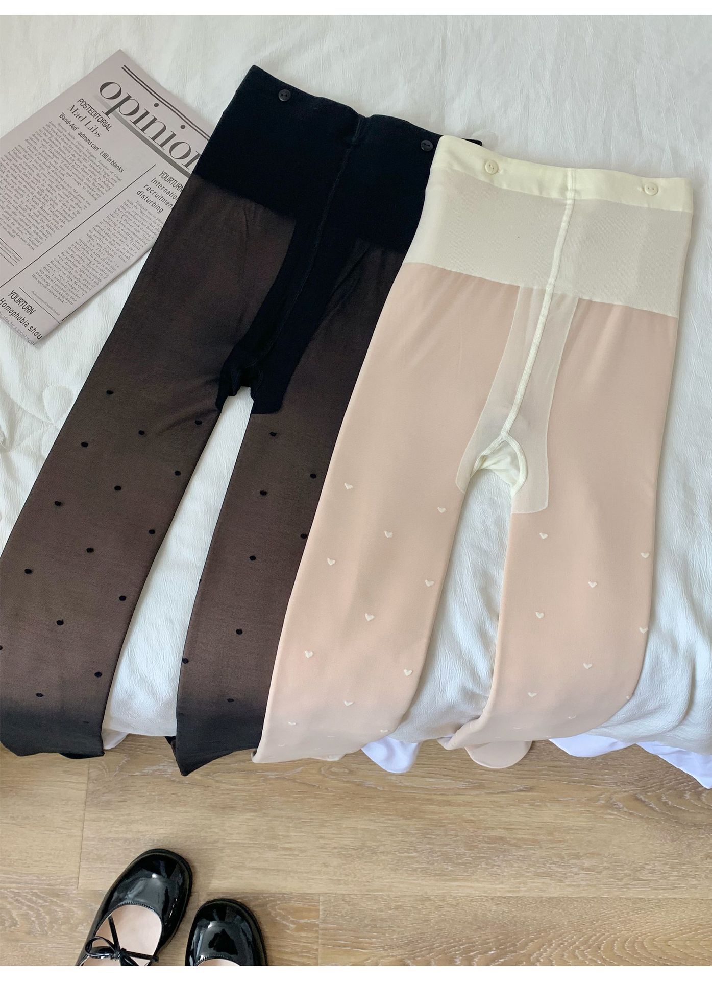 가을과 겨울에 여성을위한 맨다리 유물 가짜 고기 알몸 센스 더블 레이어 기모 크림 화이트 사랑 도트 현실적인 기본 팬티 스타킹스토어 가기