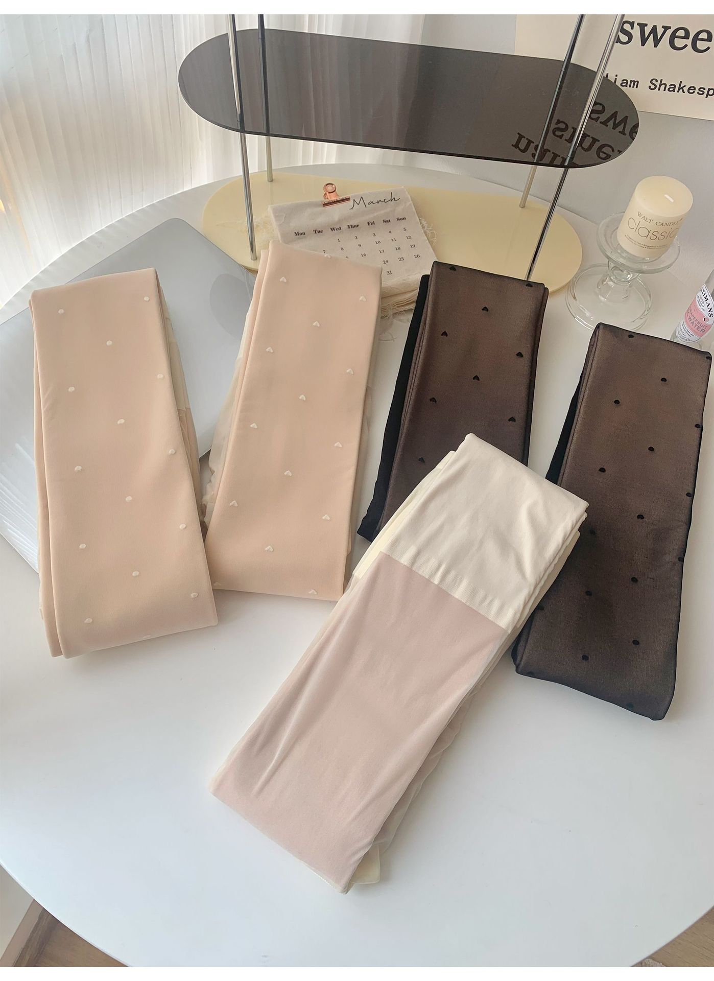 가을과 겨울에 여성을위한 맨다리 유물 가짜 고기 알몸 센스 더블 레이어 기모 크림 화이트 사랑 도트 현실적인 기본 팬티 스타킹