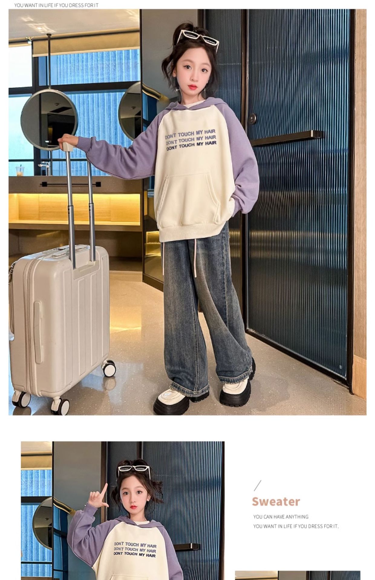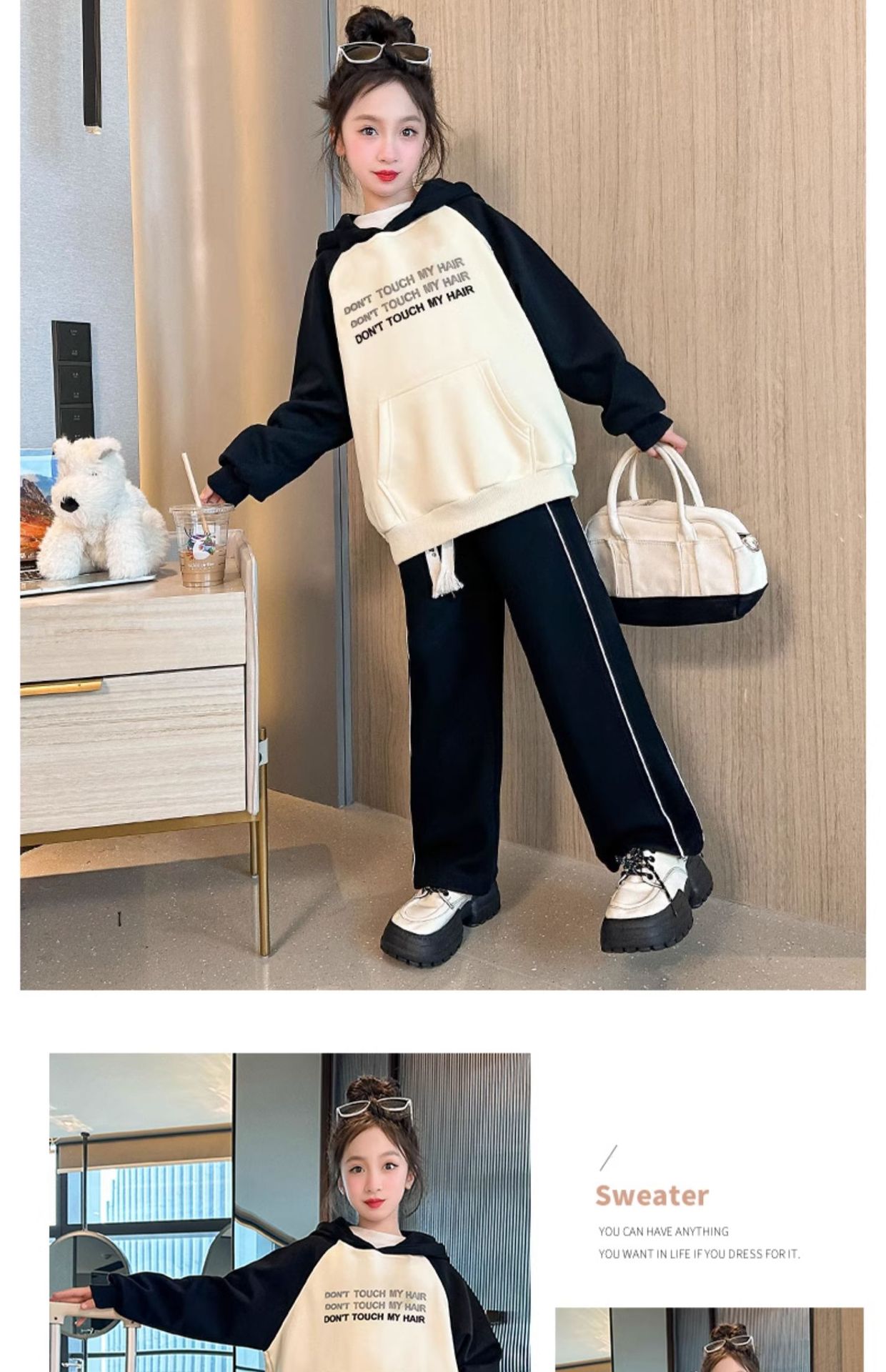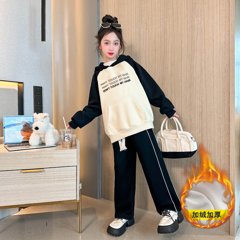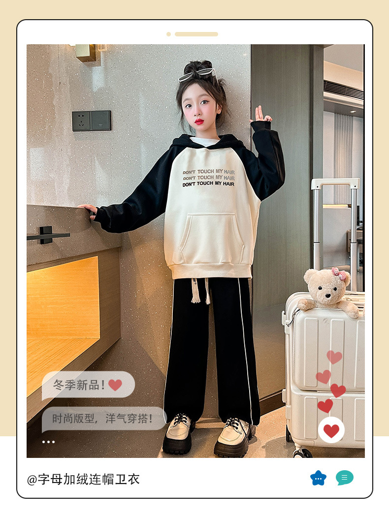 여아 기모 스웨터 통합 벨벳 겨울 2023 새로운 스타일 어린이 가을 원피스 여아 가을과 겨울 후드 탑스토어 가기