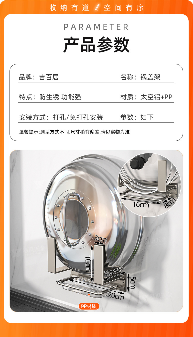 공장 공급 주방 벽걸이 펀치 프리 도마 랙 냄비 뚜껑 랙 벽 도마 커터 보드 범용 플레이서