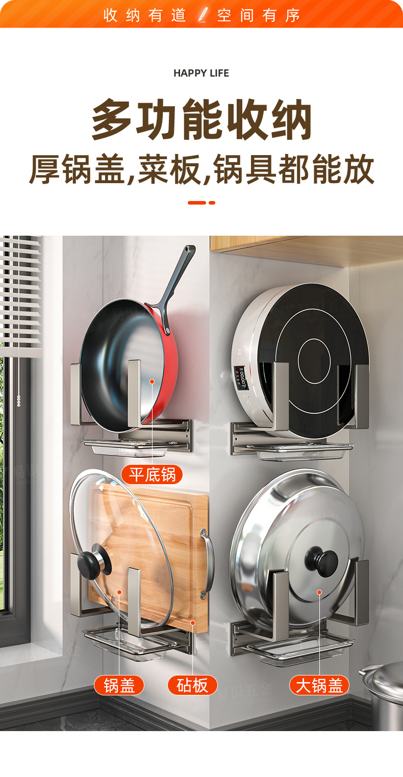 공장 공급 주방 벽걸이 펀치 프리 도마 랙 냄비 뚜껑 랙 벽 도마 커터 보드 범용 플레이서스토어 가기