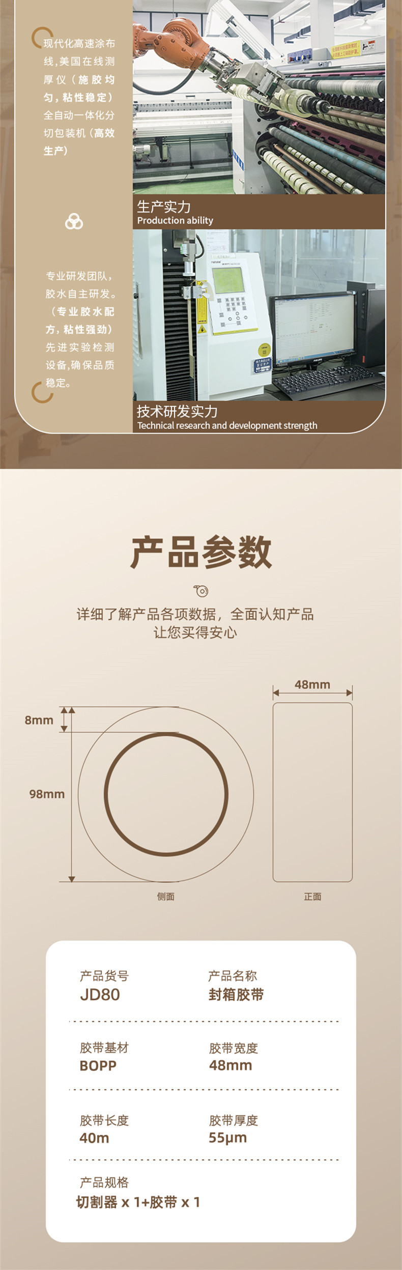 • JD80 [48mm * 40m * 55μm] 롤/실린더 + 커터 1 개