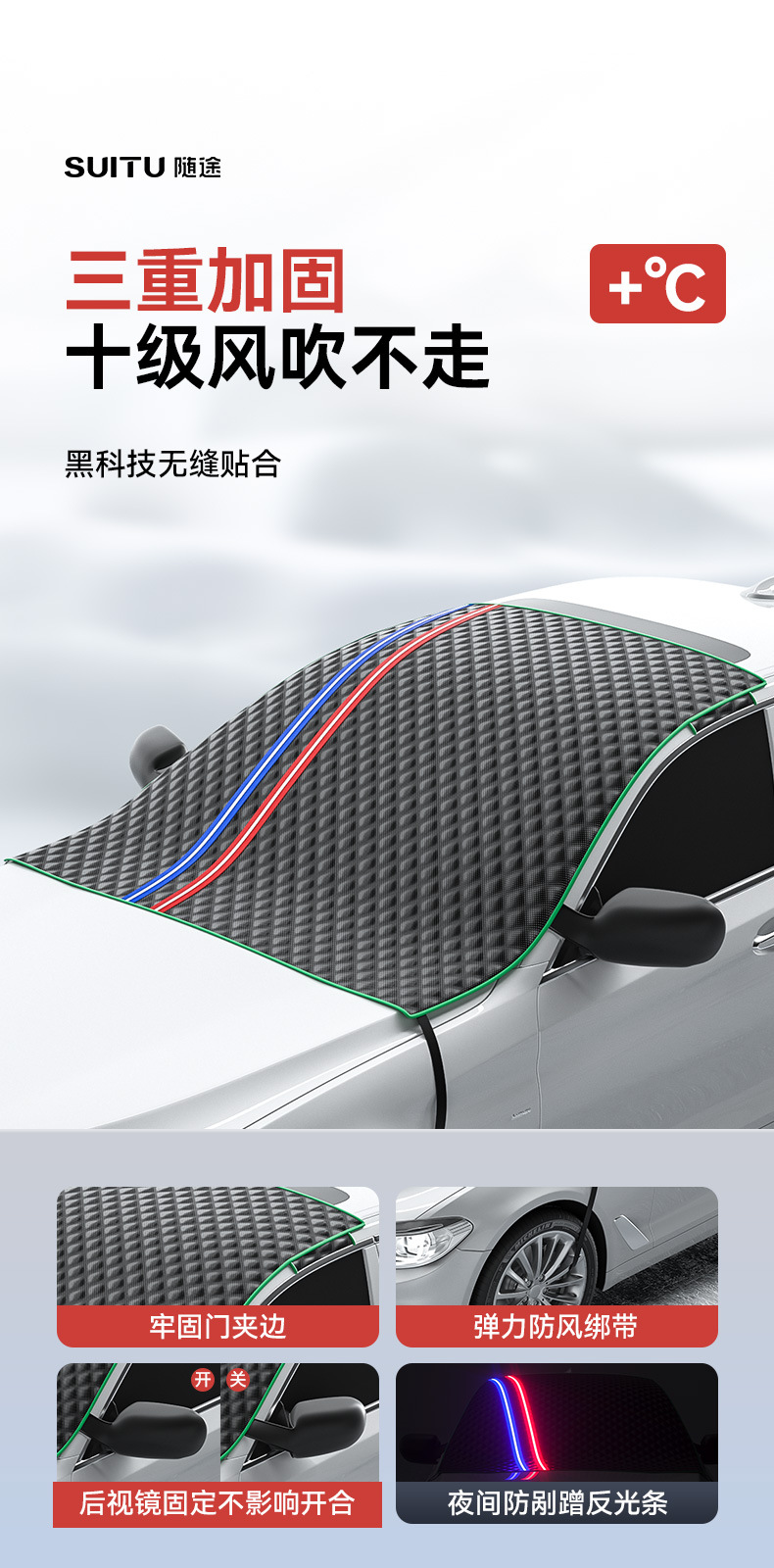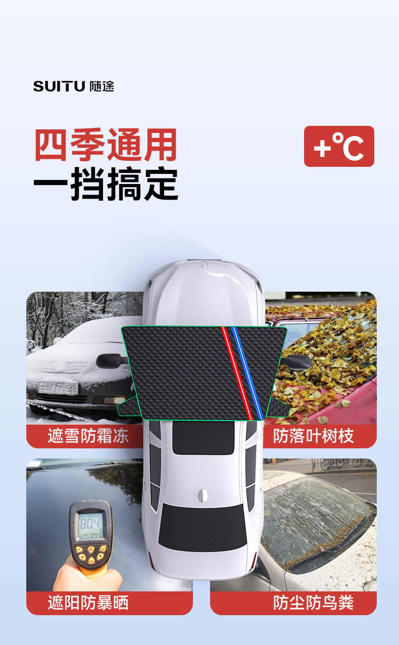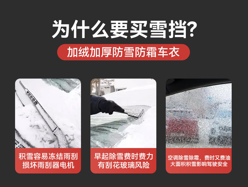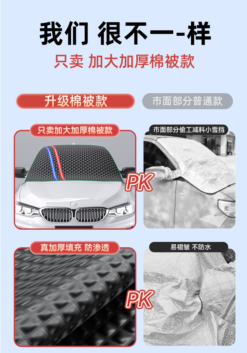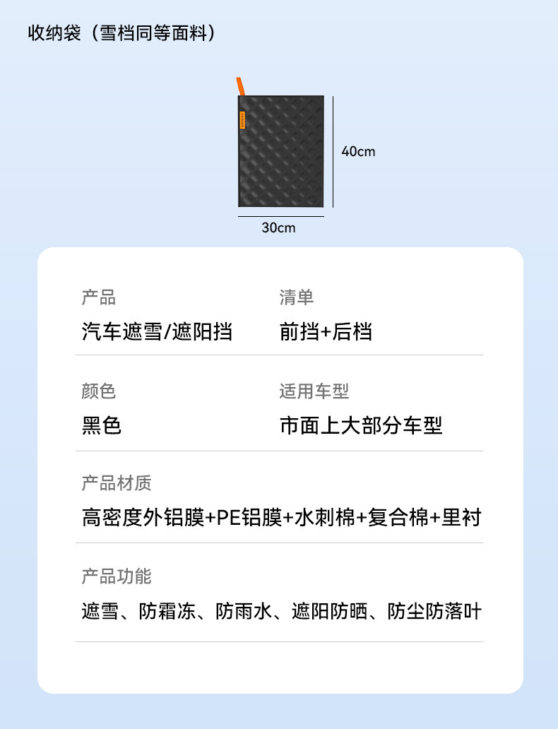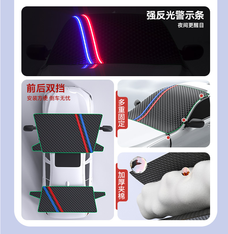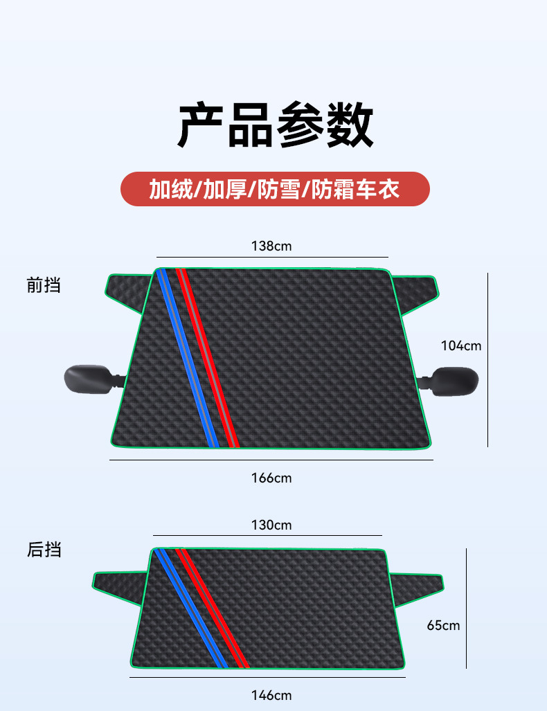 【产品名称】:通用型冬季雪挡防雪防霜汽车前挡玻璃遮阳挡防晒半车衣车罩