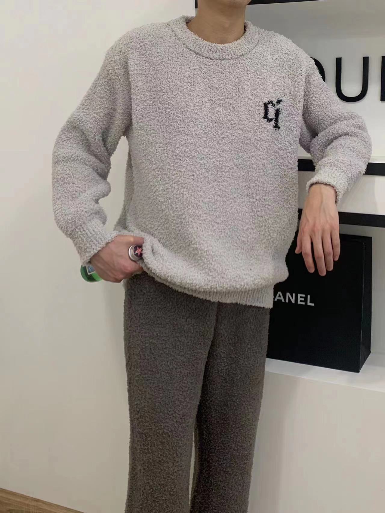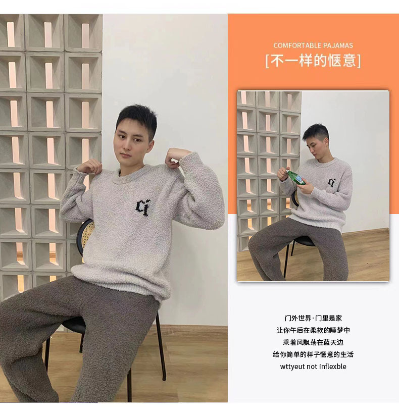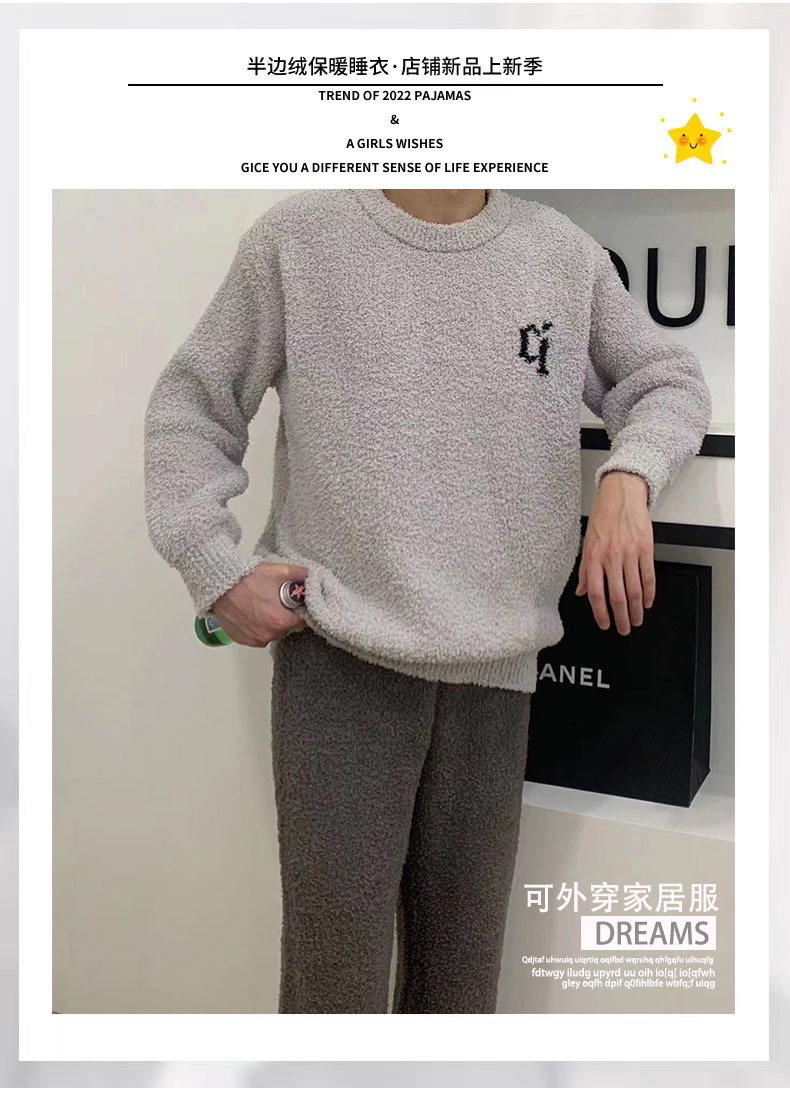 하프 사이드 벨벳 남성 커플 홈 의류 가을과 겨울 따뜻한 두꺼운 홈 의류 잠옷 잠옷 2 종 세트스토어 가기