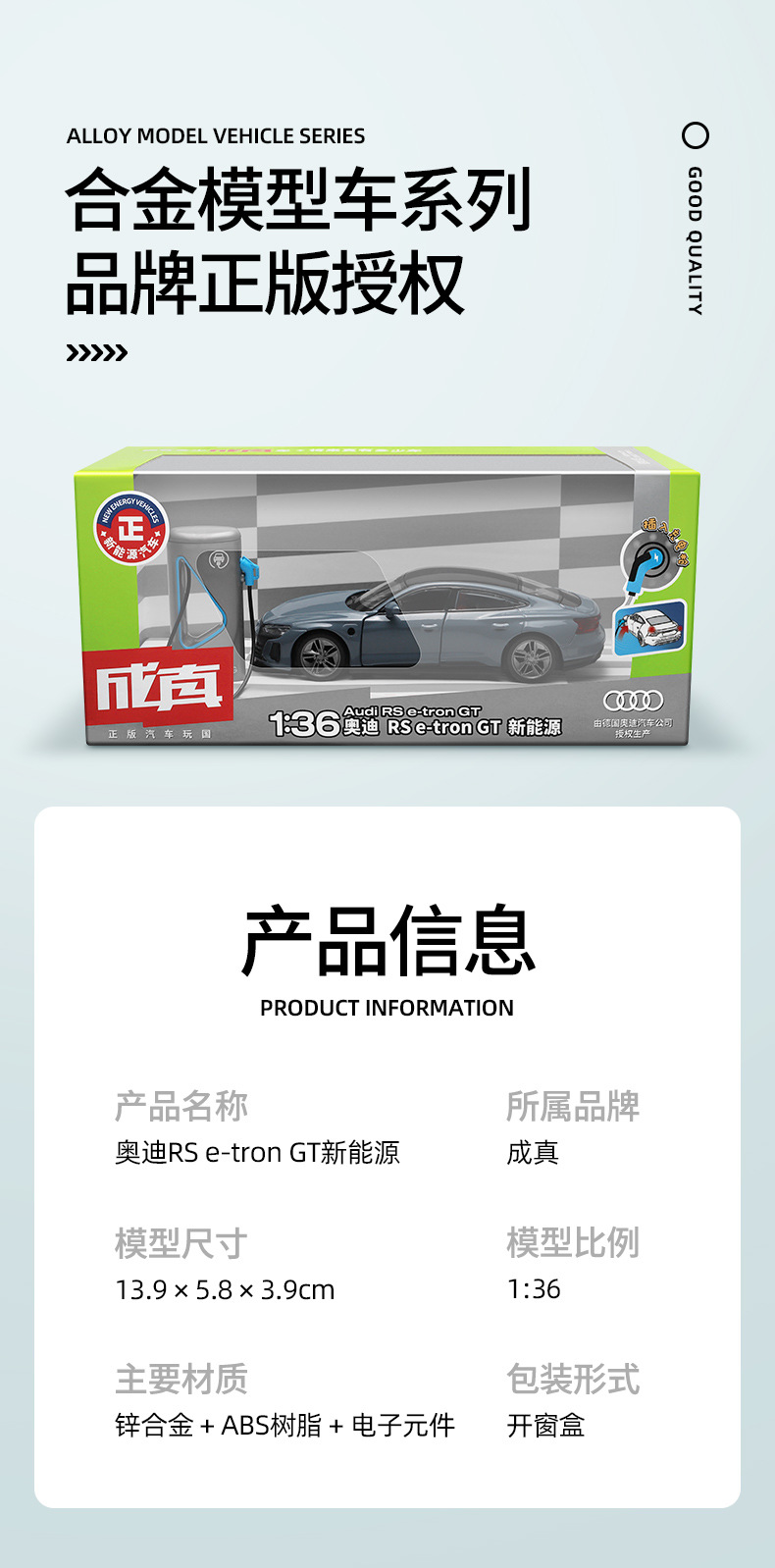 카이퍼 리얼 1-36 아우디 RS e-tron GT 새로운 에너지 합금 자동차 모델 음향 광학 전력 충전스토어 가기