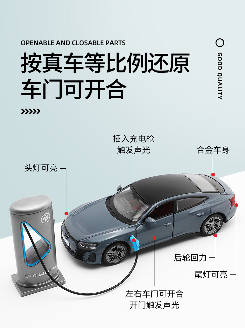 카이퍼 리얼 1-36 아우디 RS e-tron GT 새로운 에너지 합금 자동차 모델 음향 광학 전력 충전