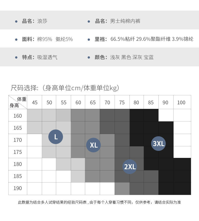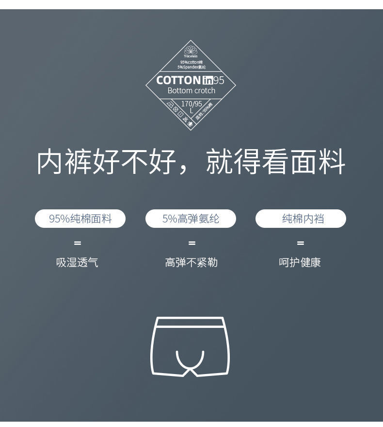 랑샤 남성용 신축성 사각팬티, 편안한 입체 재단, 항균 이중 레이어 안감, 피부 친화적인 순면 가랑이