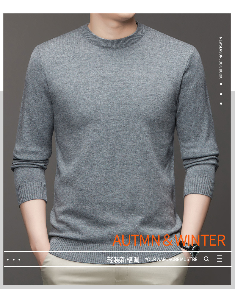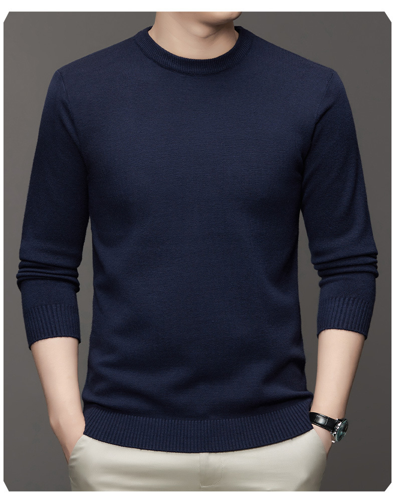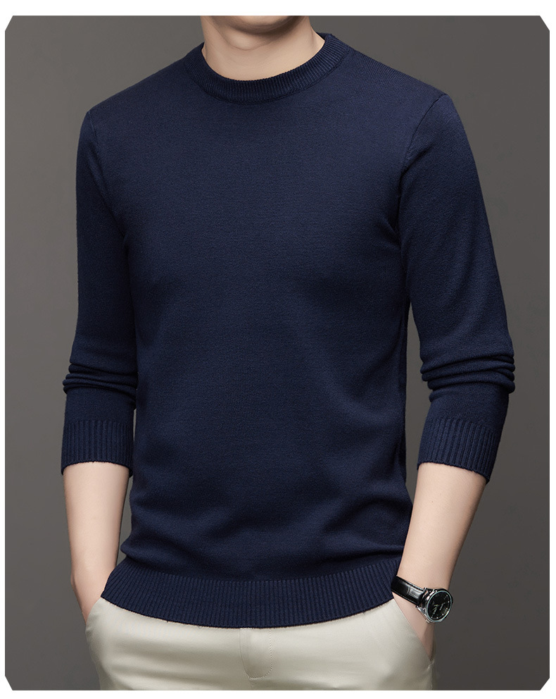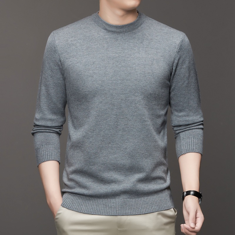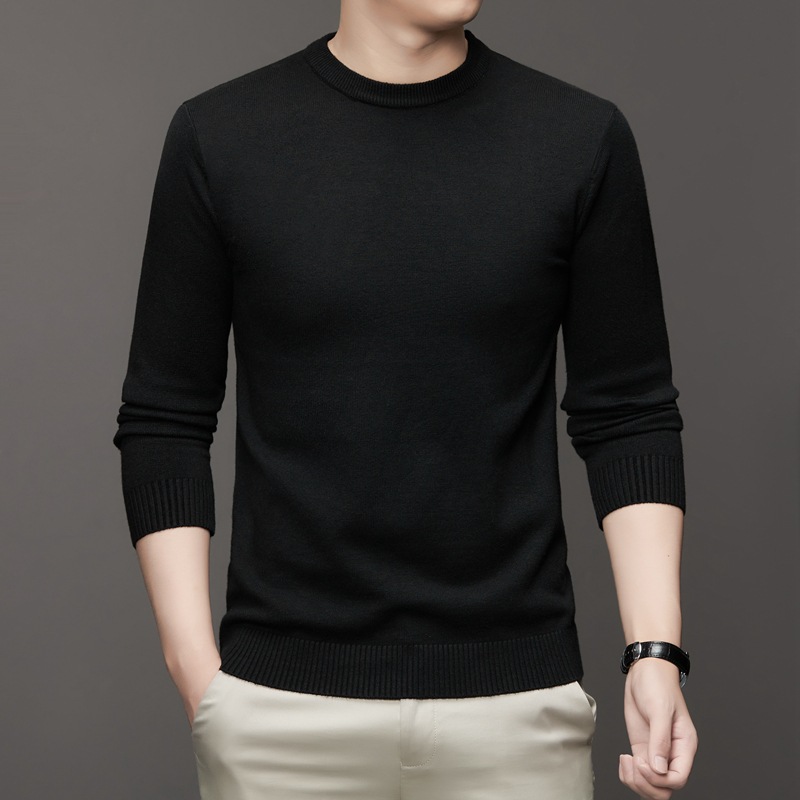 안티 필링 코어 원사 스웨터 남성용 겨울 새로운 솔리드 컬러 라운드 넥 따뜻한 니트 슬림 핏 베이스 셔츠 남성복스토어 가기
