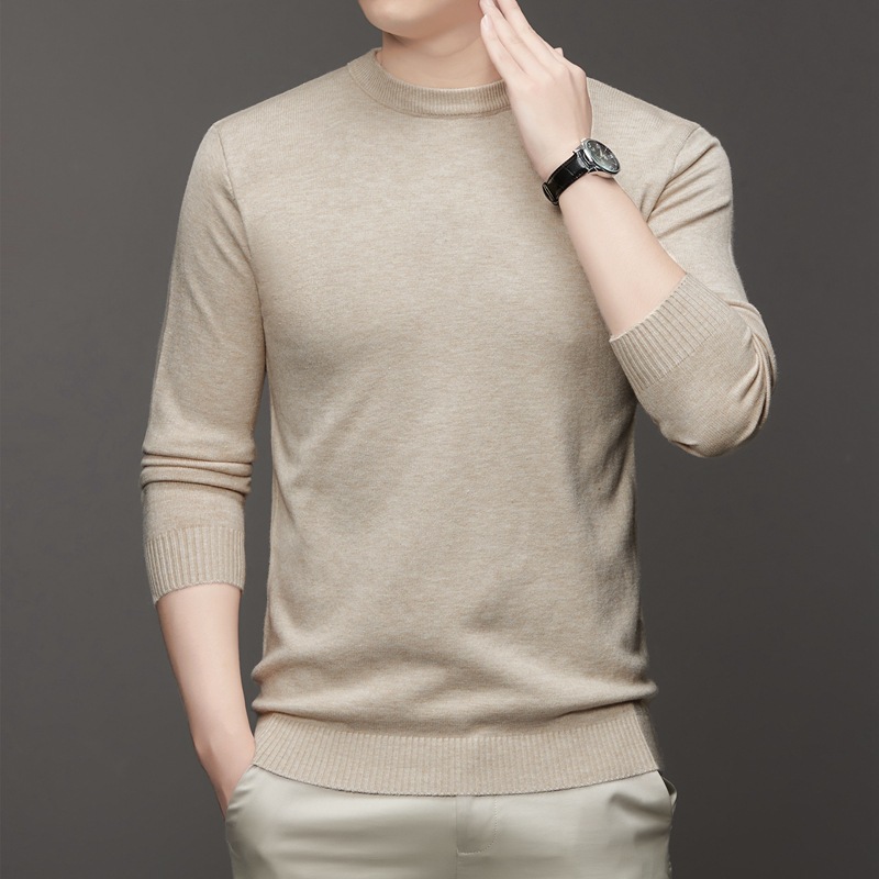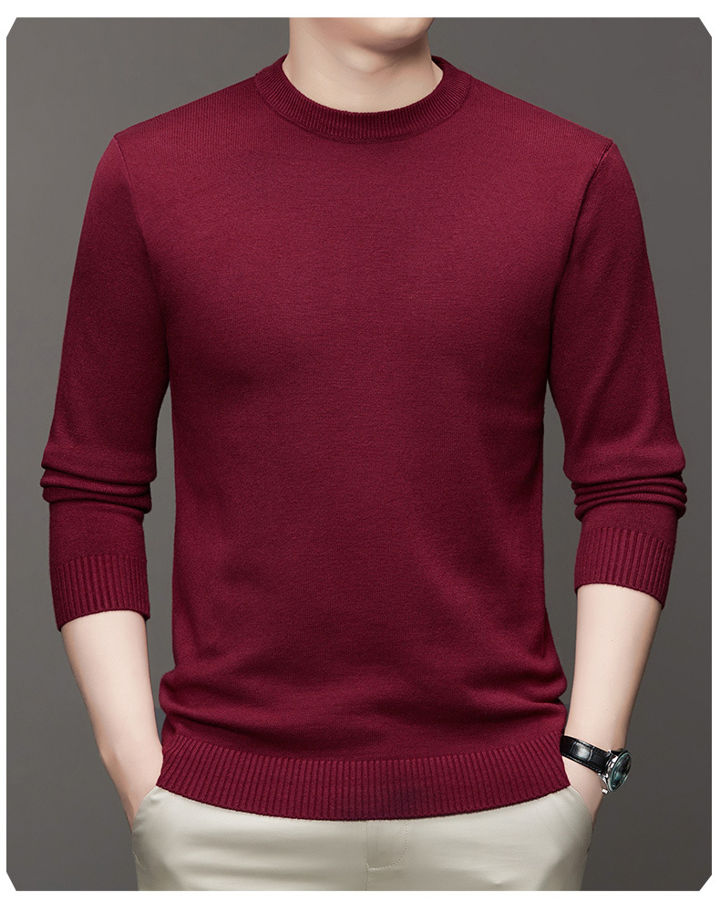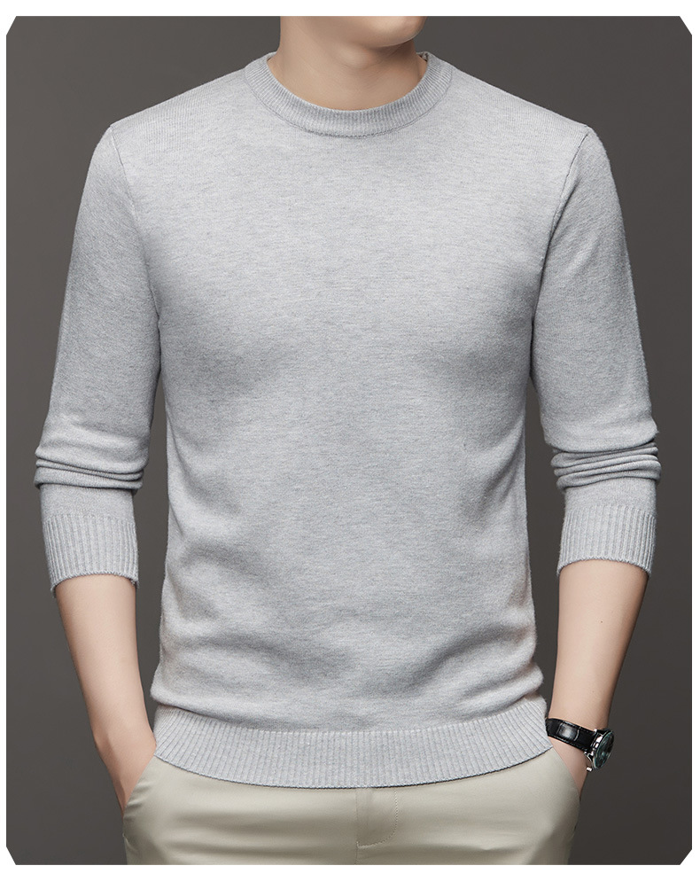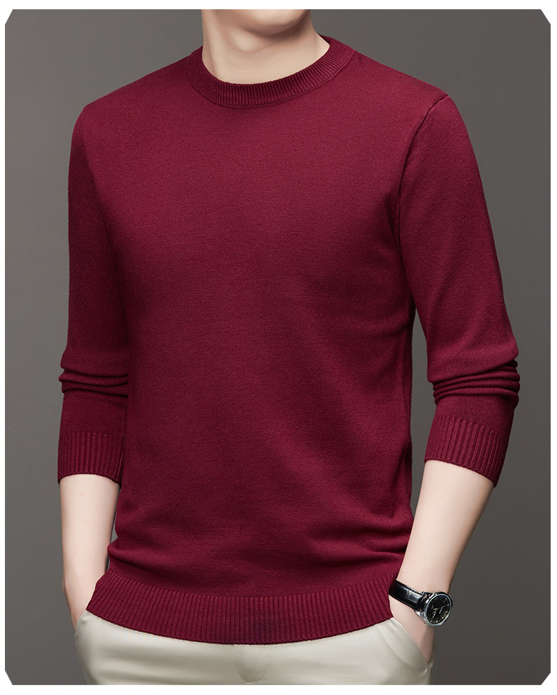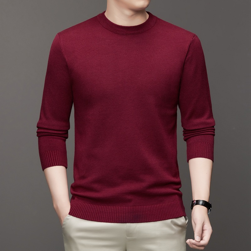 안티 필링 코어 원사 스웨터 남성용 겨울 새로운 솔리드 컬러 라운드 넥 따뜻한 니트 슬림 핏 베이스 셔츠 남성복스토어 가기