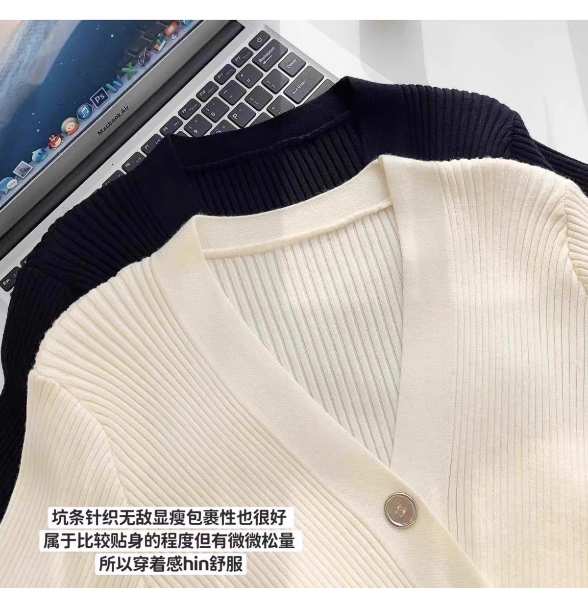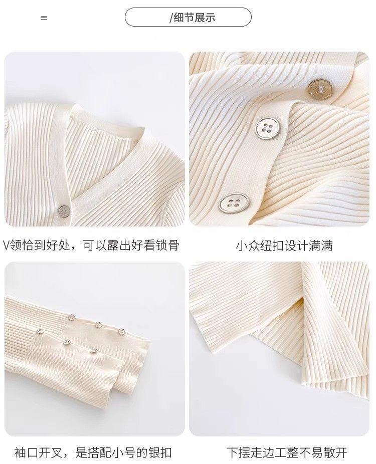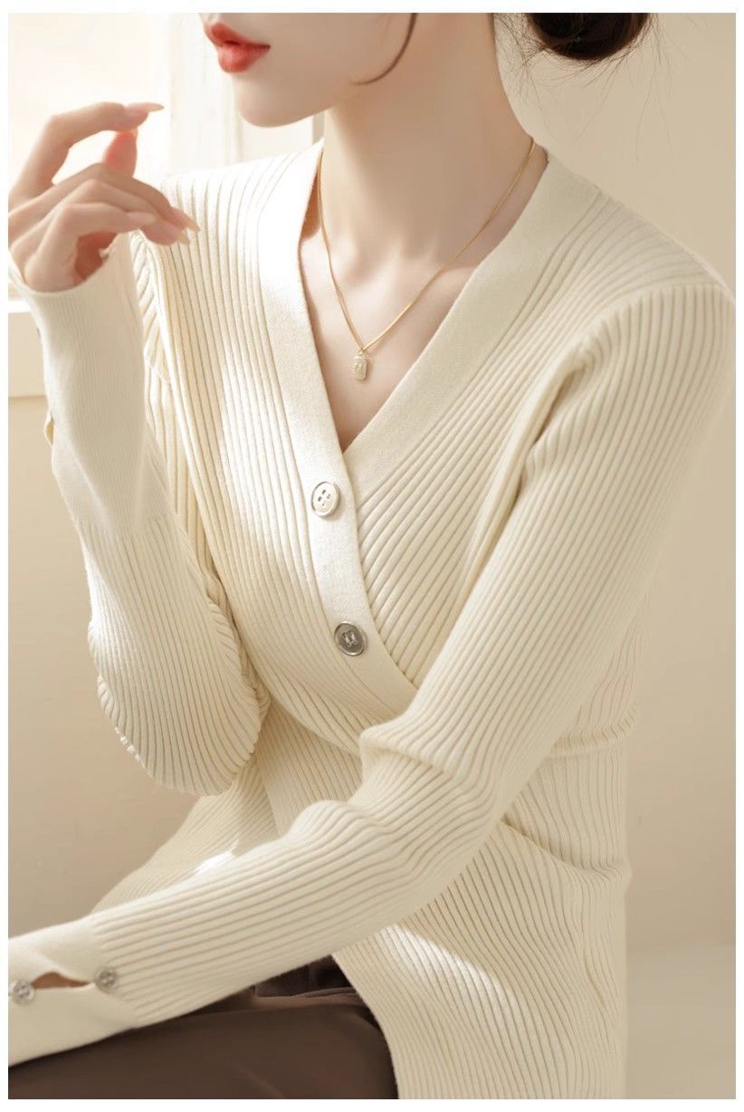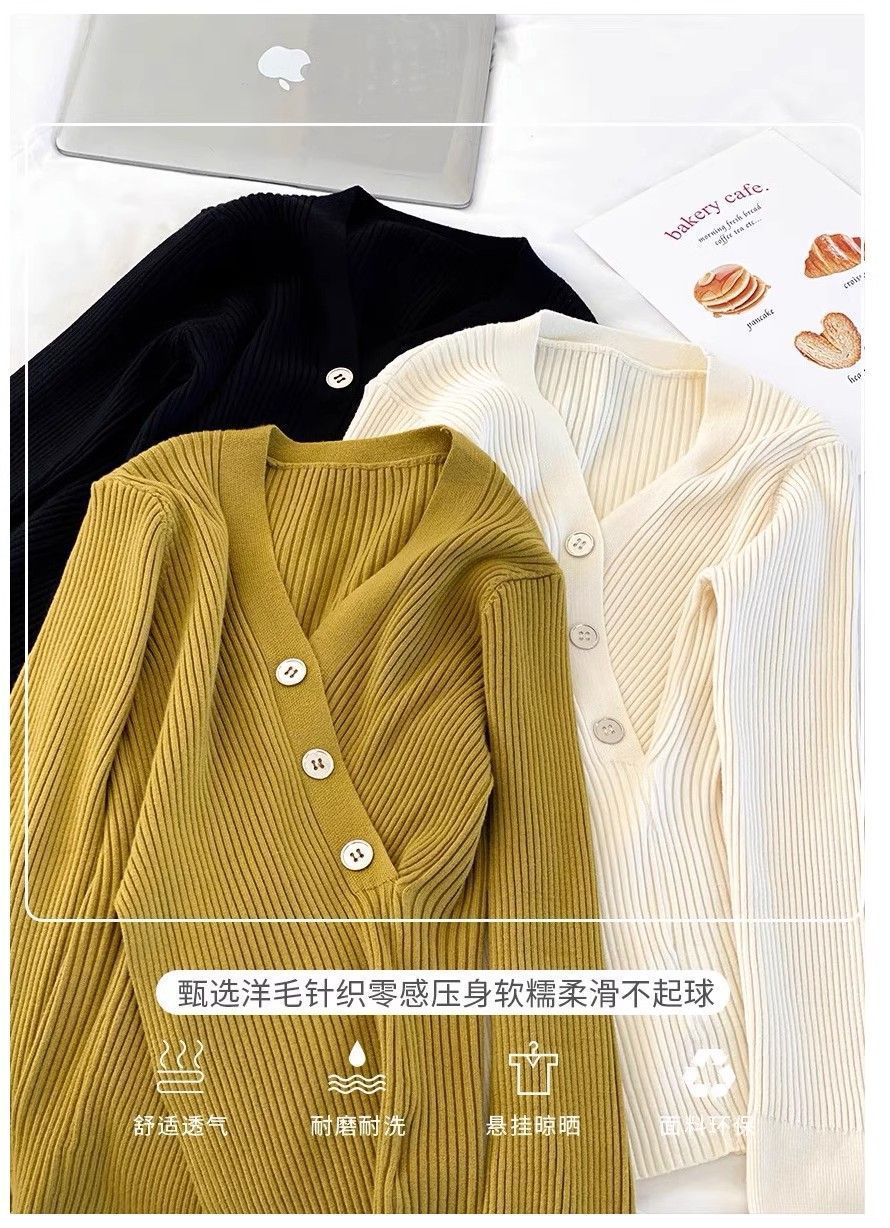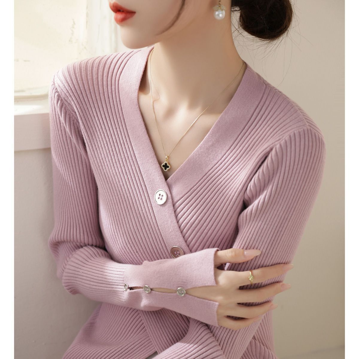 한국 V-넥 크로스 버튼 스플릿 디자인 느낌 바닥 2023 가을 새로운 긴팔 스웨터 탑 여성스토어 가기
